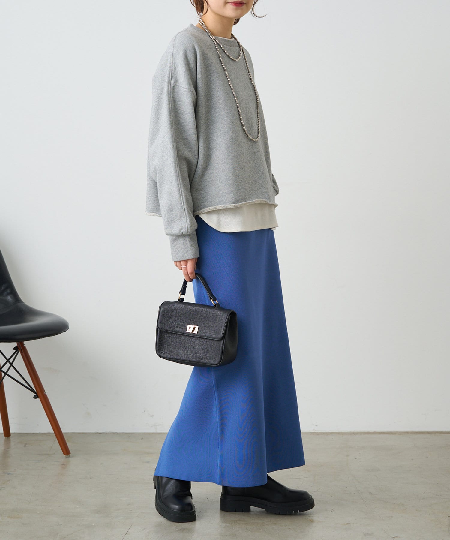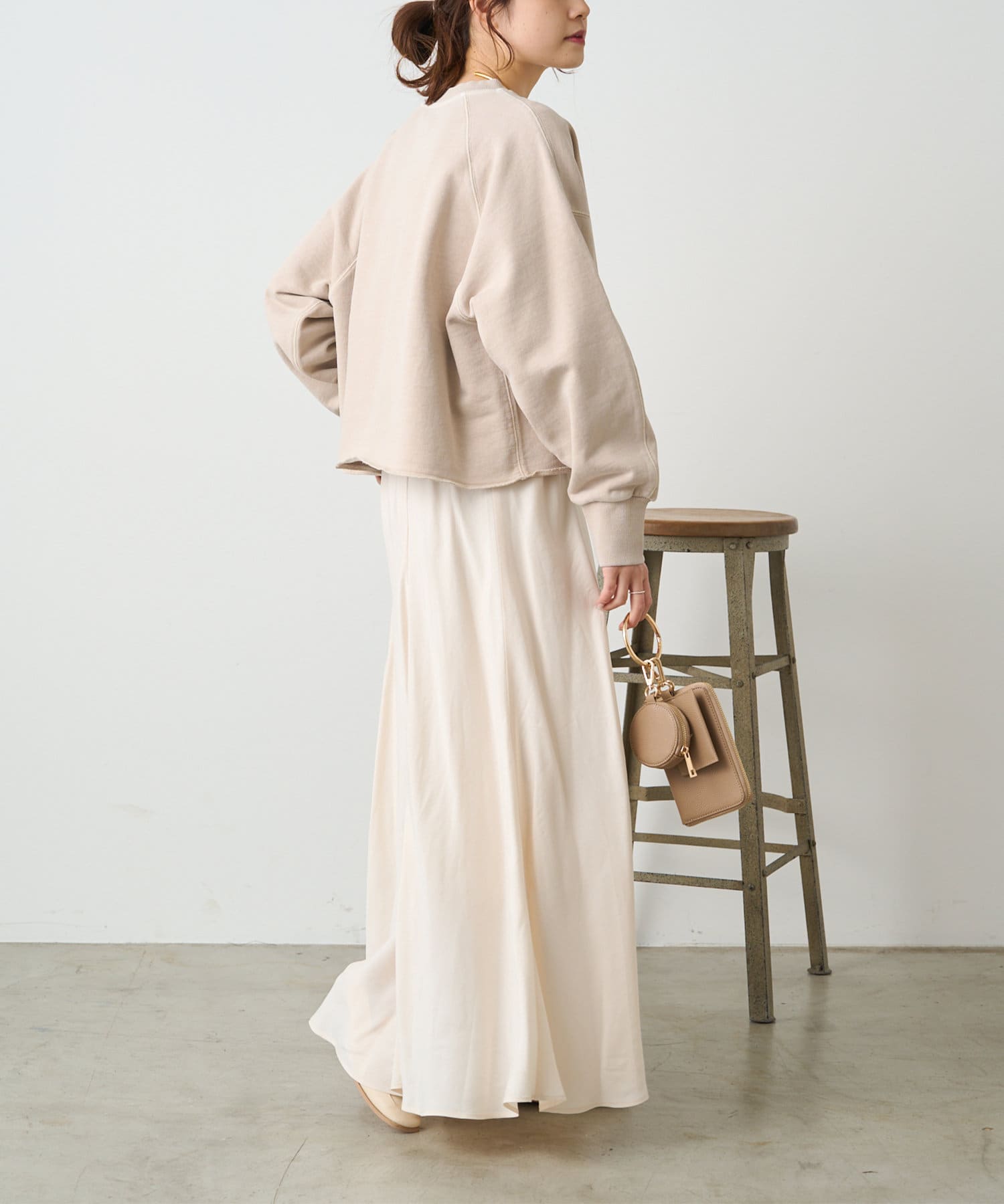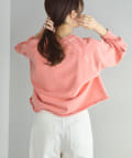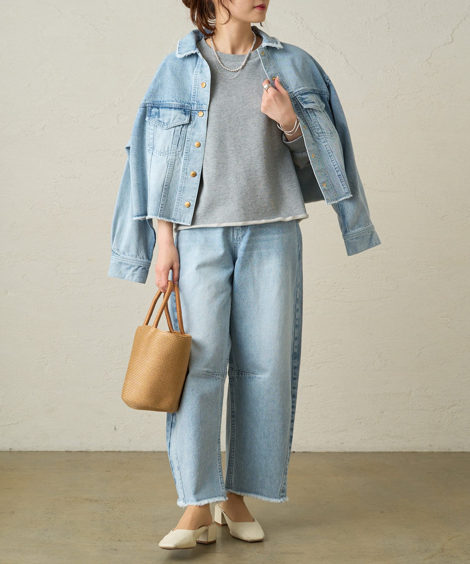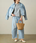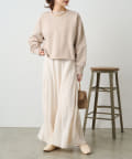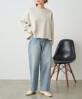 ショート丈なのでハイウエストのボトムと相性抜群。スラックスやスカートなどカジュアル過ぎないボトムを合わせると一層こなれ感のあるスタイルに。