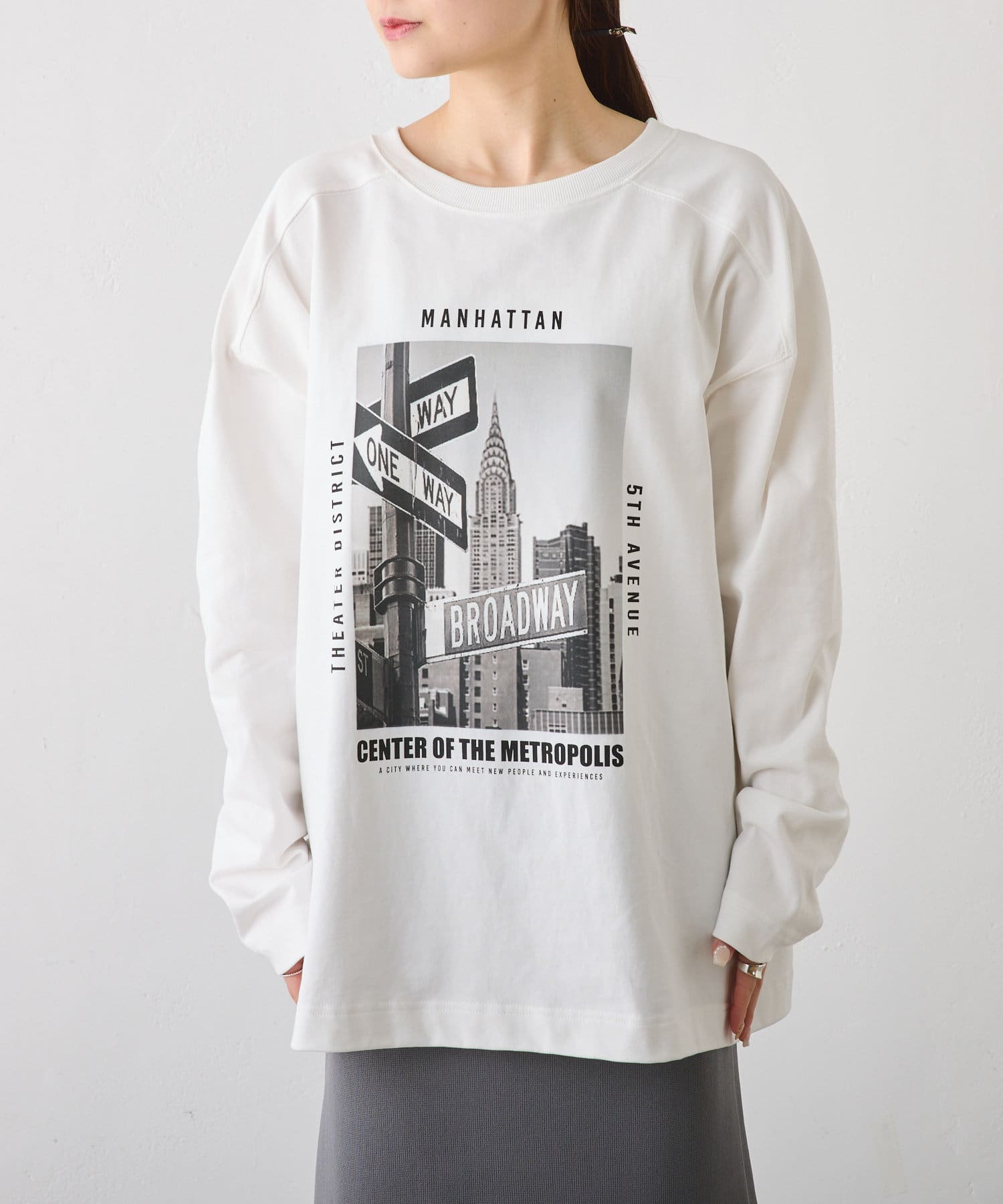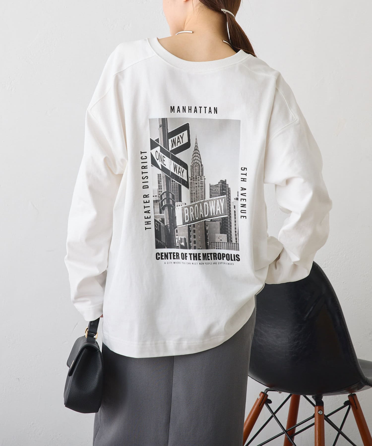 インナー使いでも映えるフォトプリントと、シンプルなロゴプリントは前後で着用できるので、