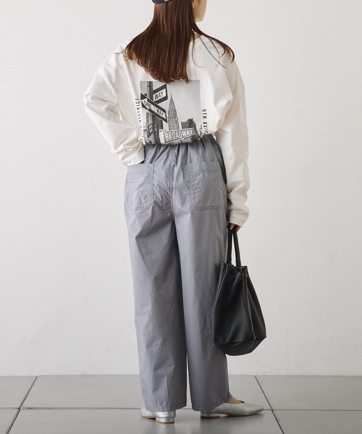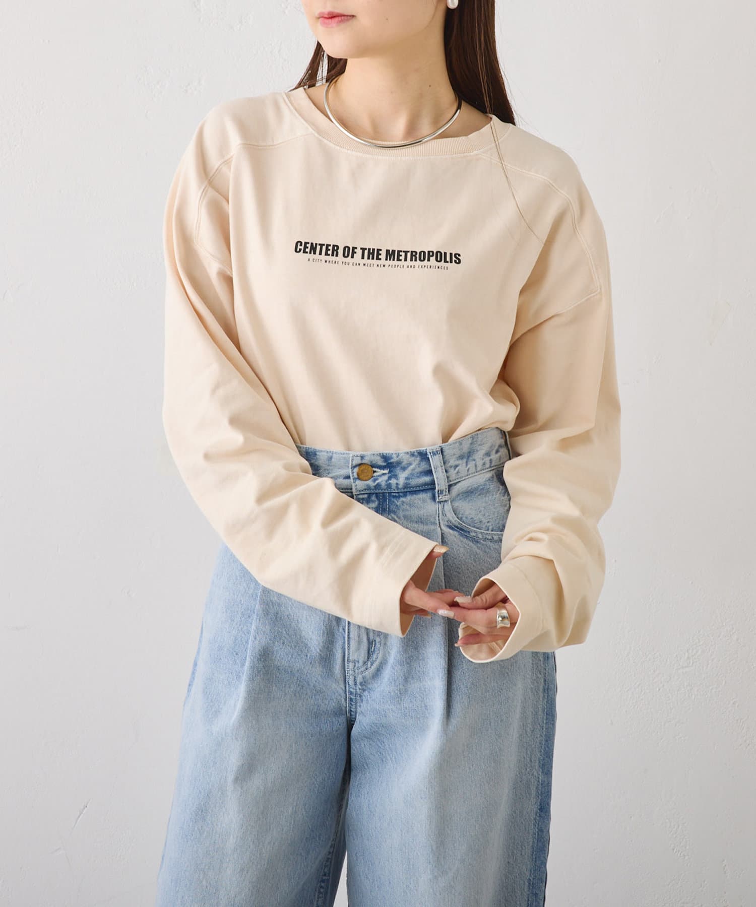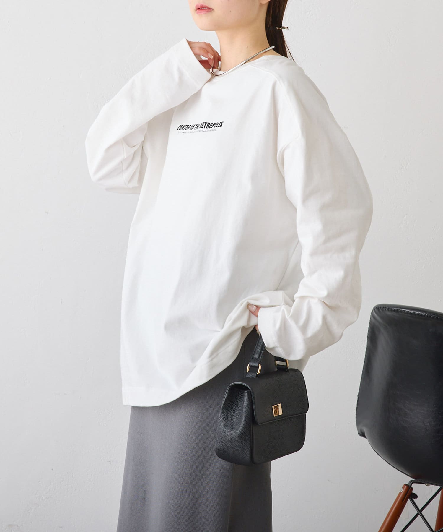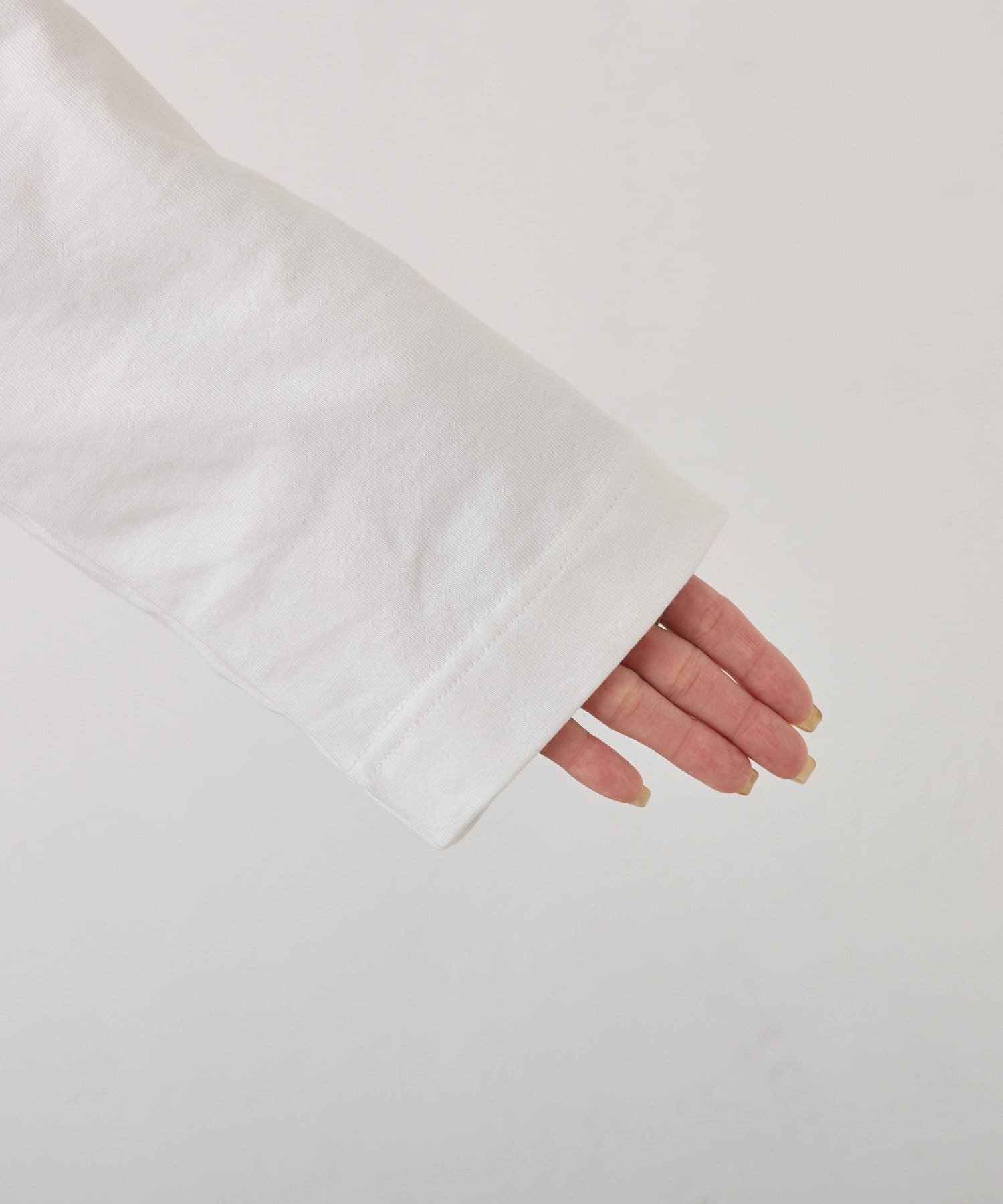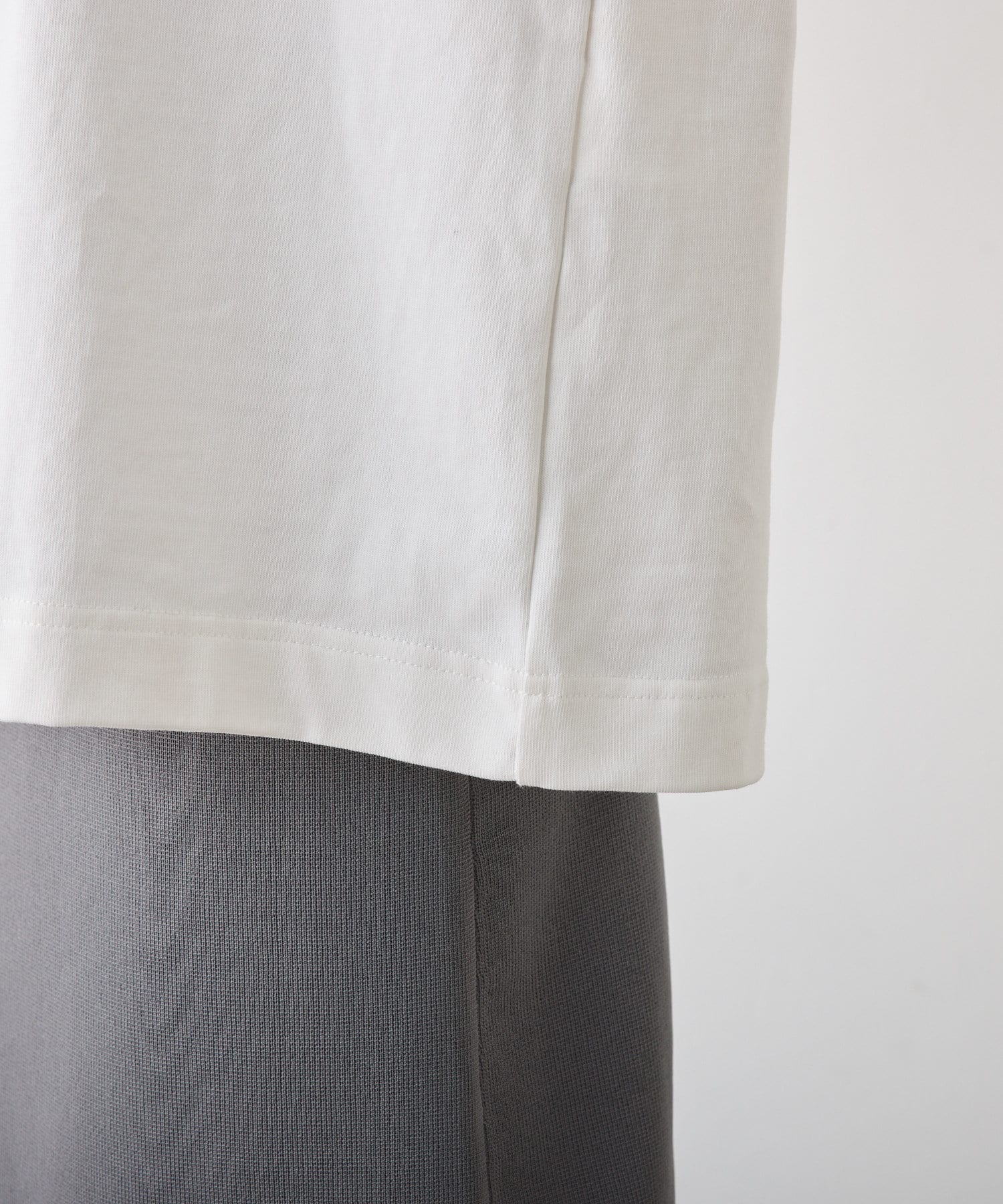 着用感:ヒップが隠れるロング丈でインもアウトも様になります。柔らかな肌当たりにゆとりのあるオーバーシルエットでリラックス感のある着心地です。