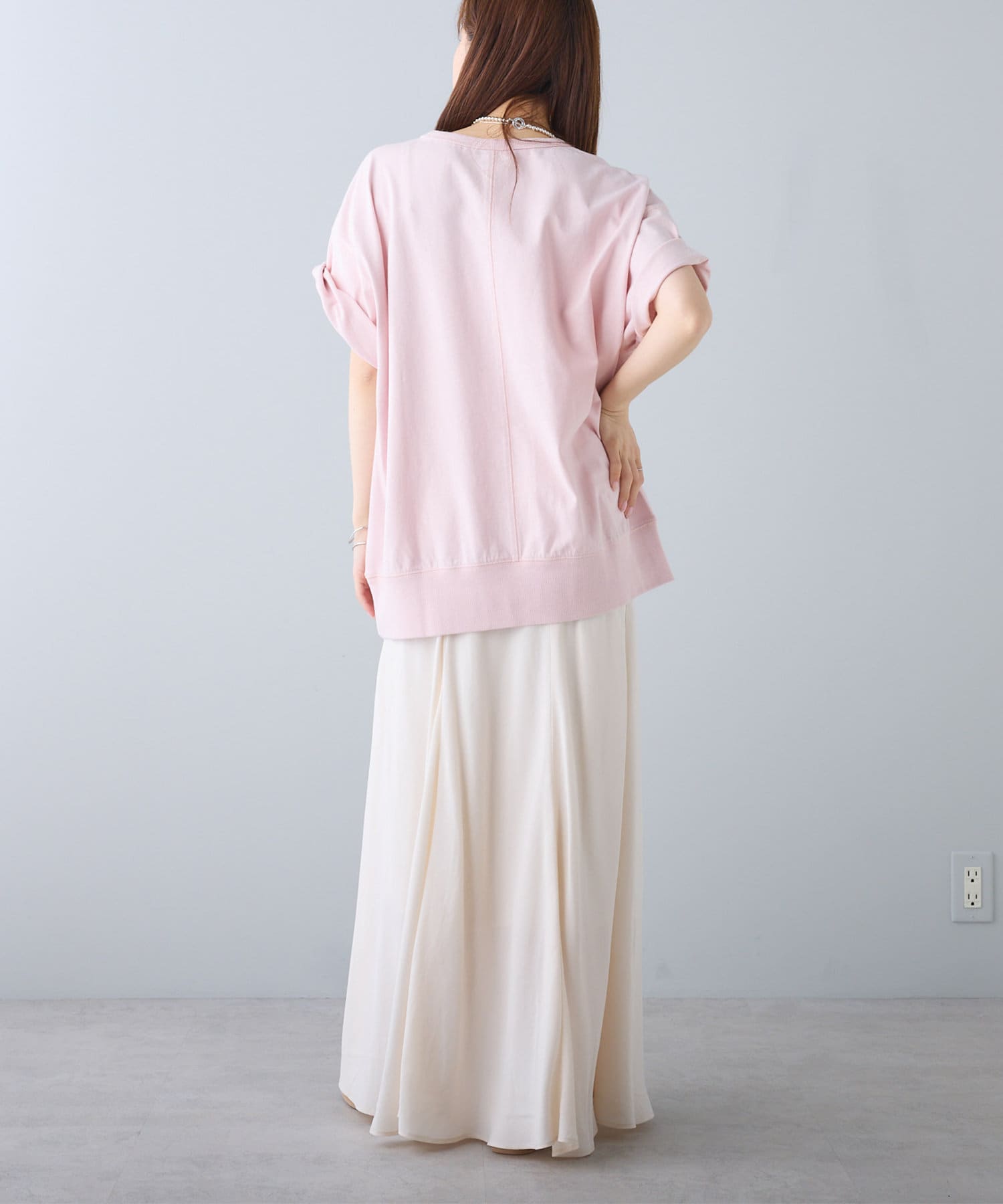 着用感:身幅・肩回りなど全体的に余裕を感じました。着丈も腰周りをカバーしてくれるのでとれもリラクシーな着心地です。