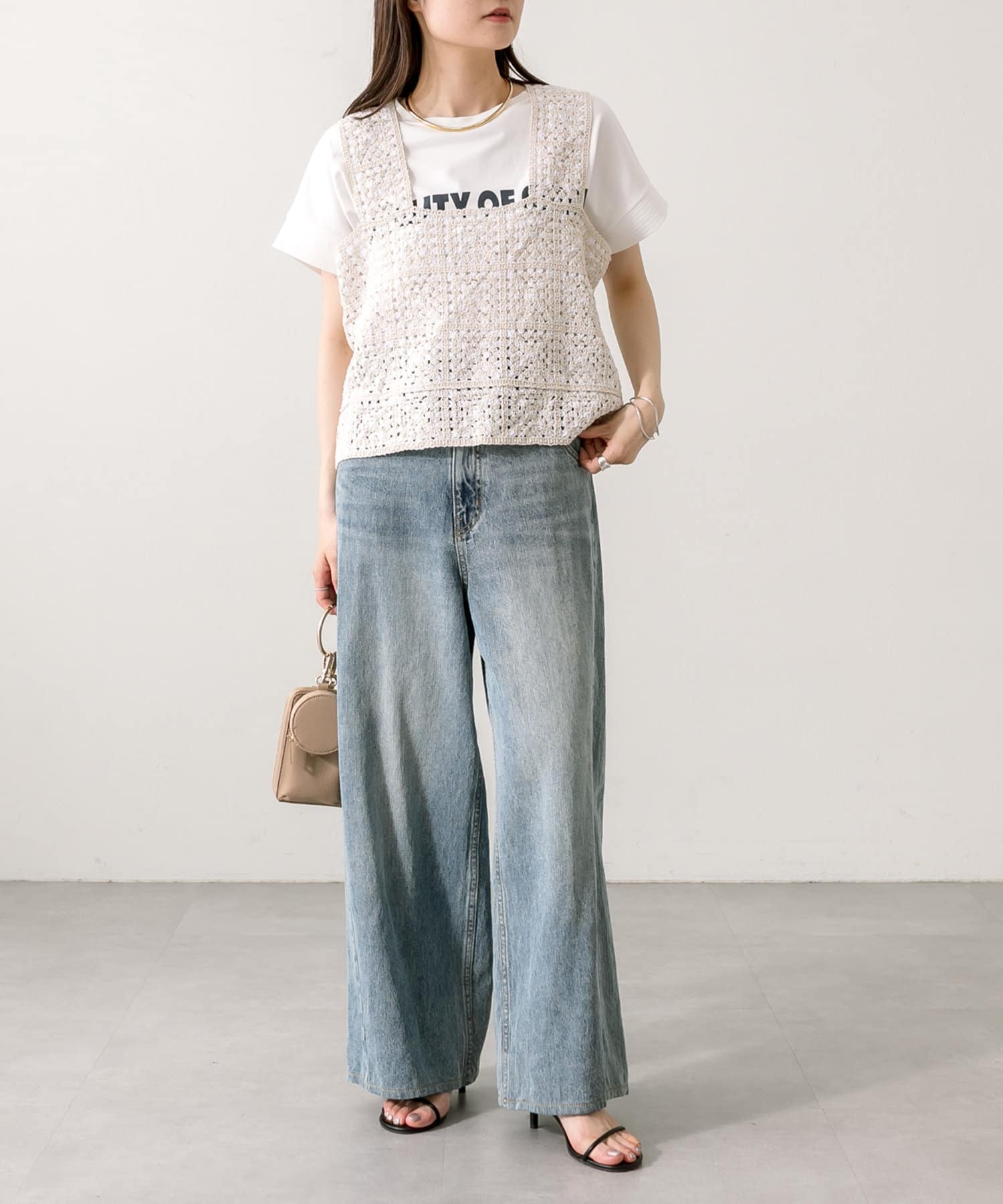 フェミニンなアイテムを程よくカジュアルダウンしてくれるので