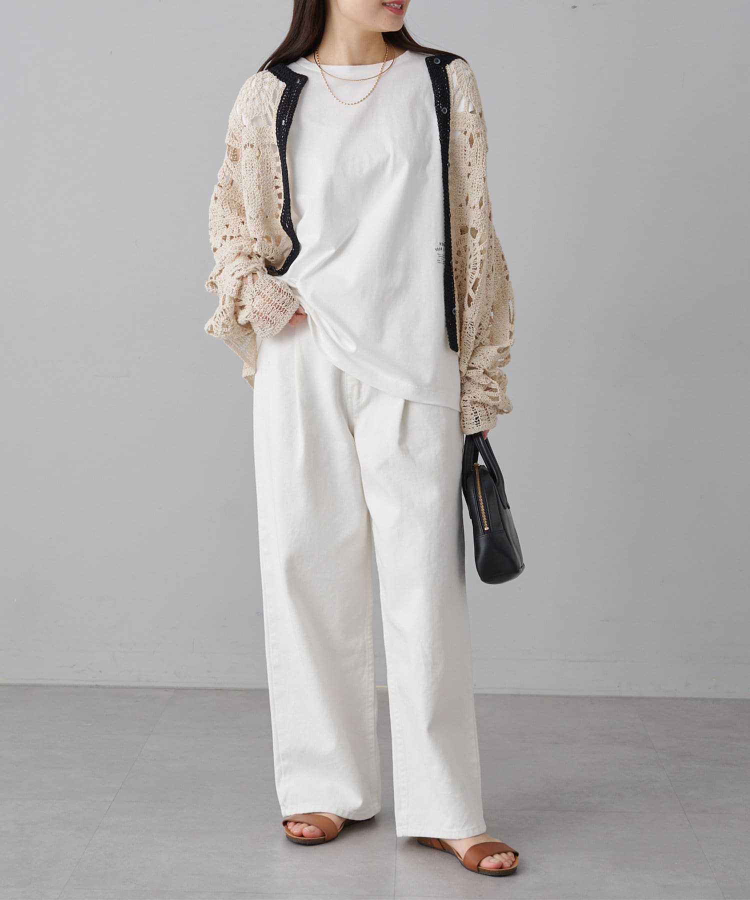 カジュアルにデニムやアクセントになるカラーパンツを合わせたシンプルなスタイリングもおすすめです。