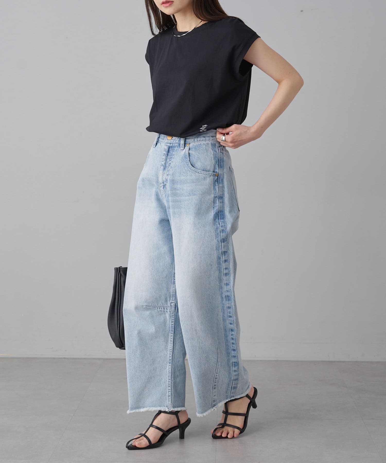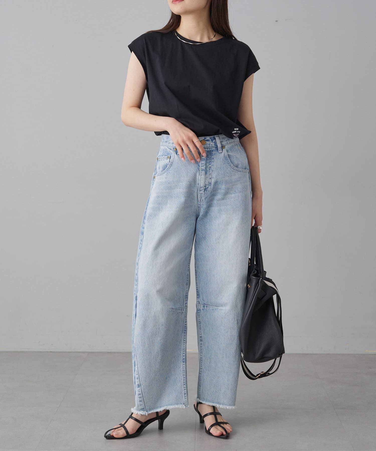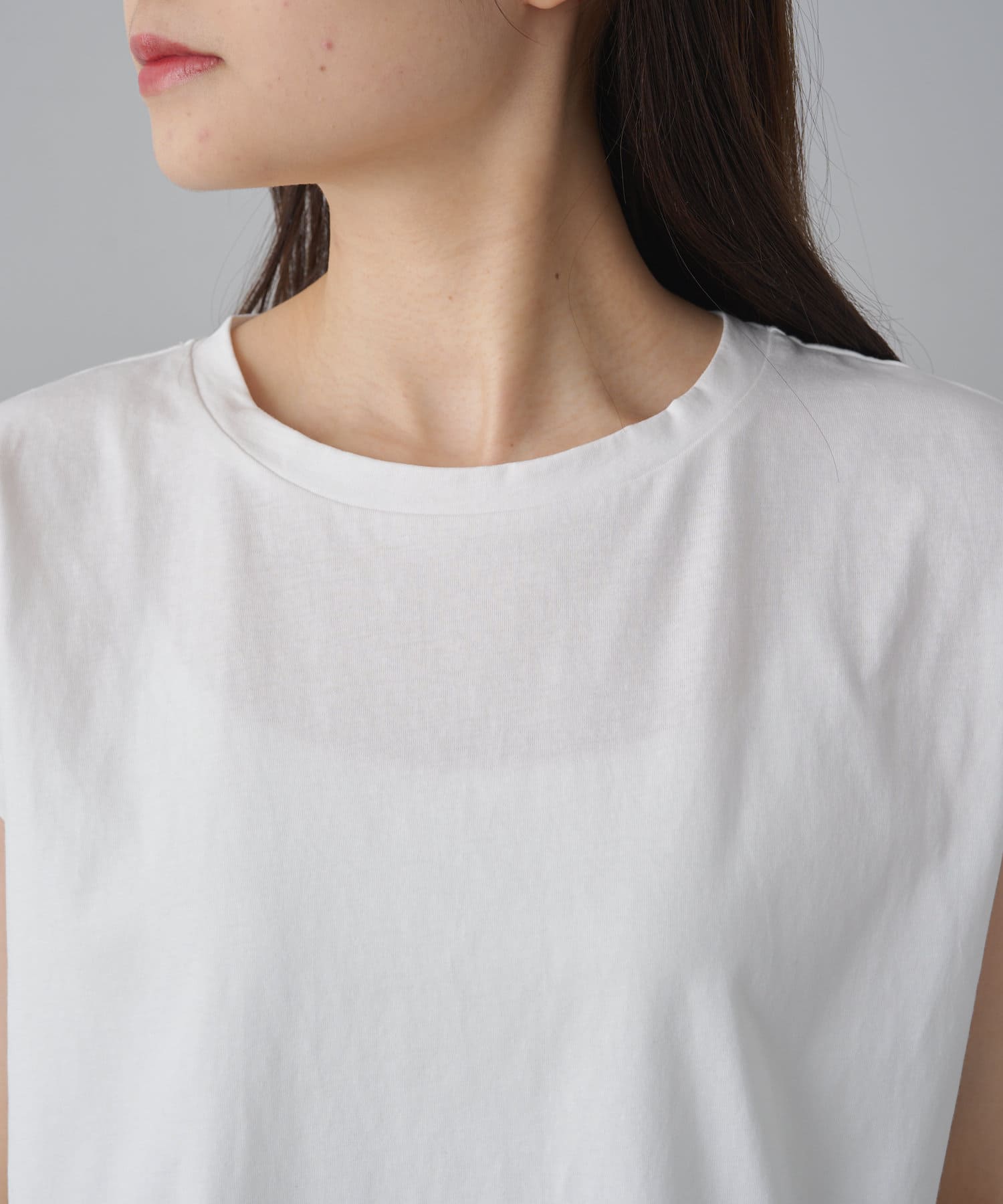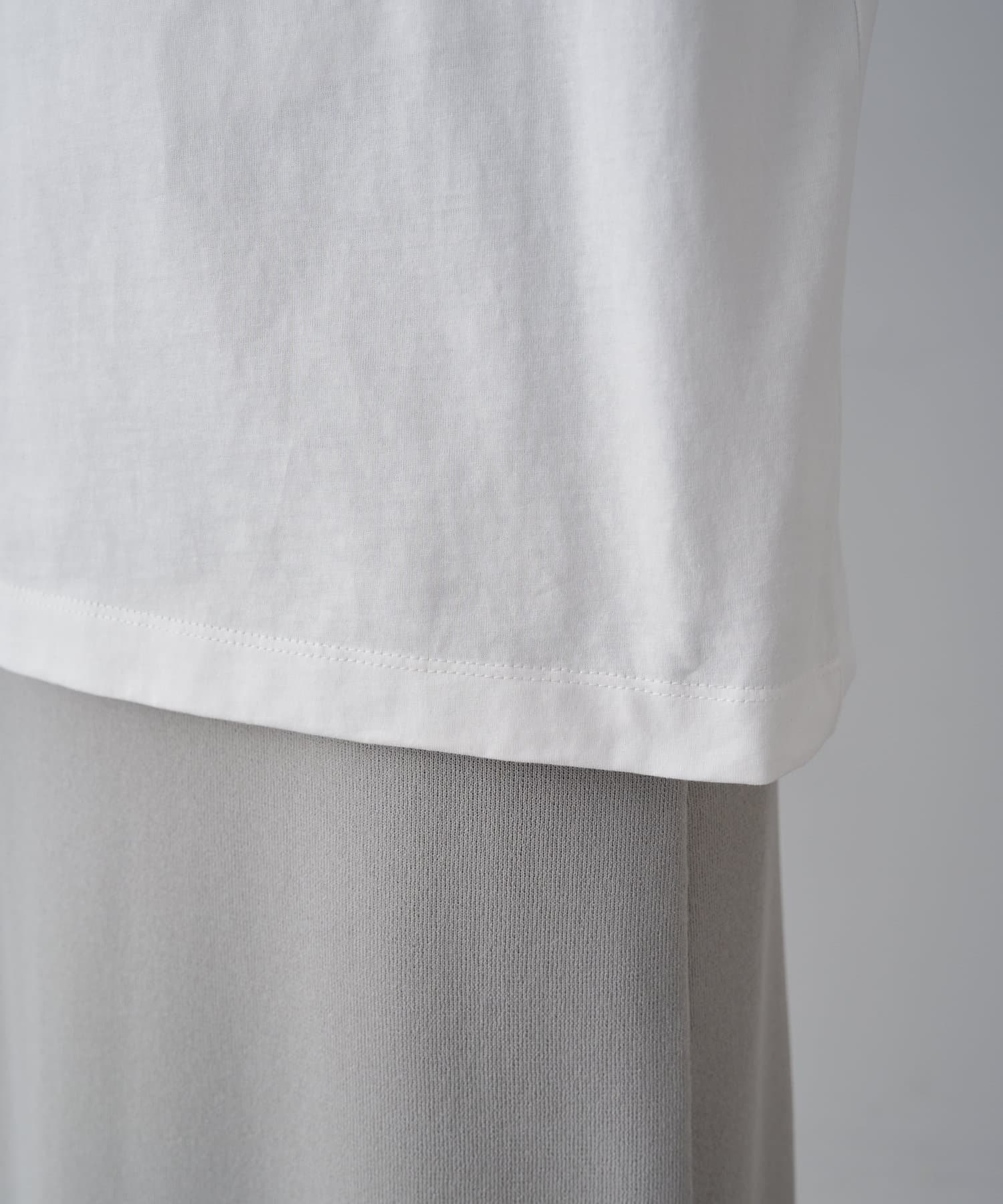 オーバーすぎない程よいゆとりを持たせたシルエットなので1枚着はもちろん、サロペットやカーディガンのインナーなど着回しに活躍する万能アイテムです。