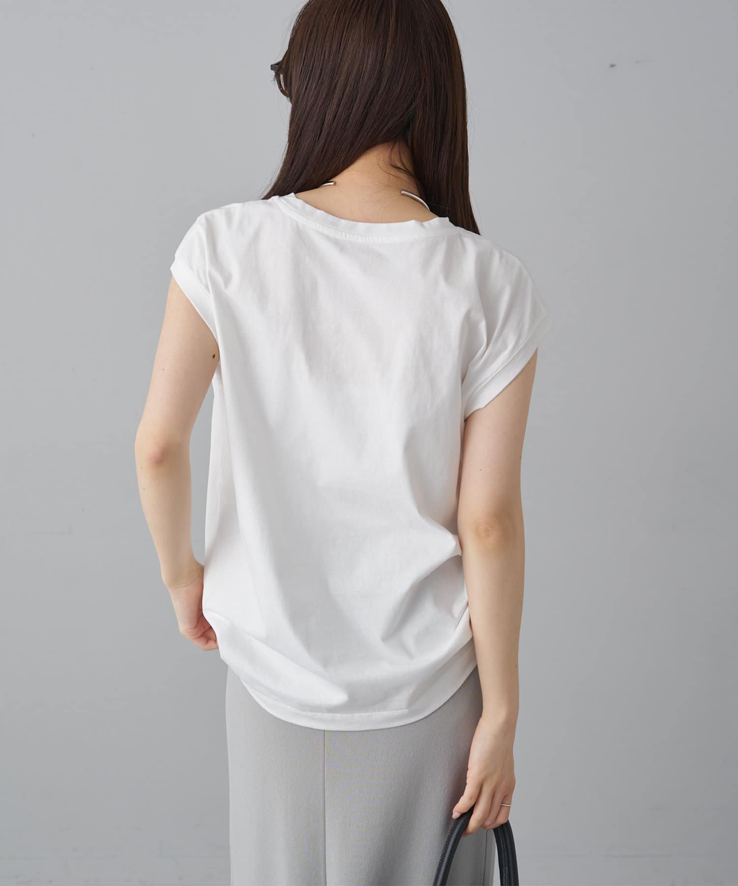 肩回りをカバーし、二の腕をきれいに見せてくれるフレンチスリーブ。