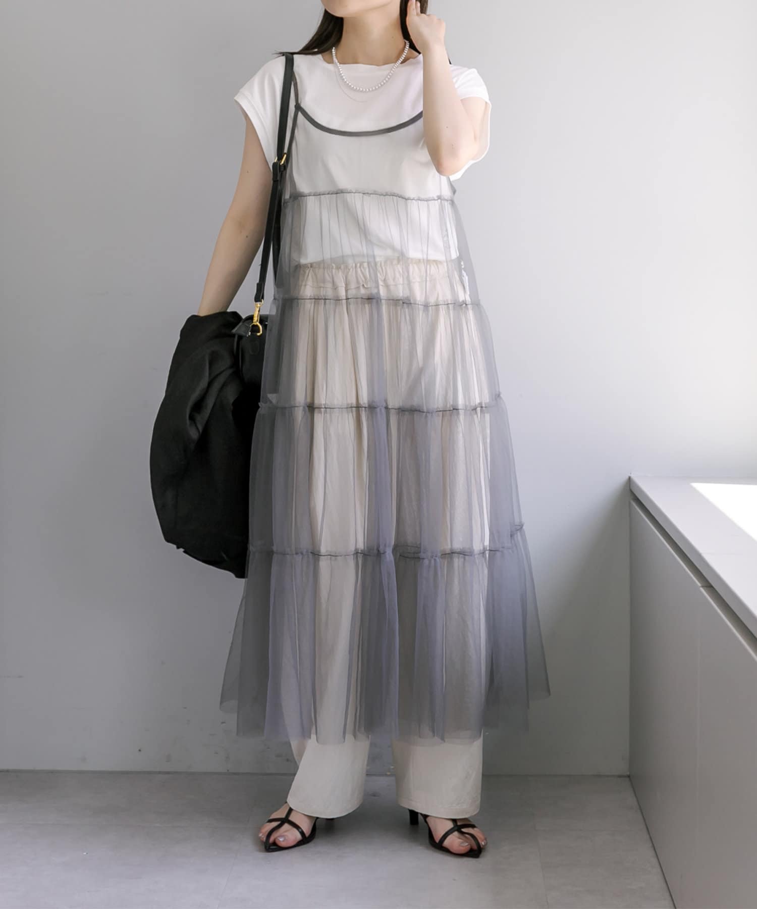 サロペットやカーディガン、シャツブラウスのインナーに最適。