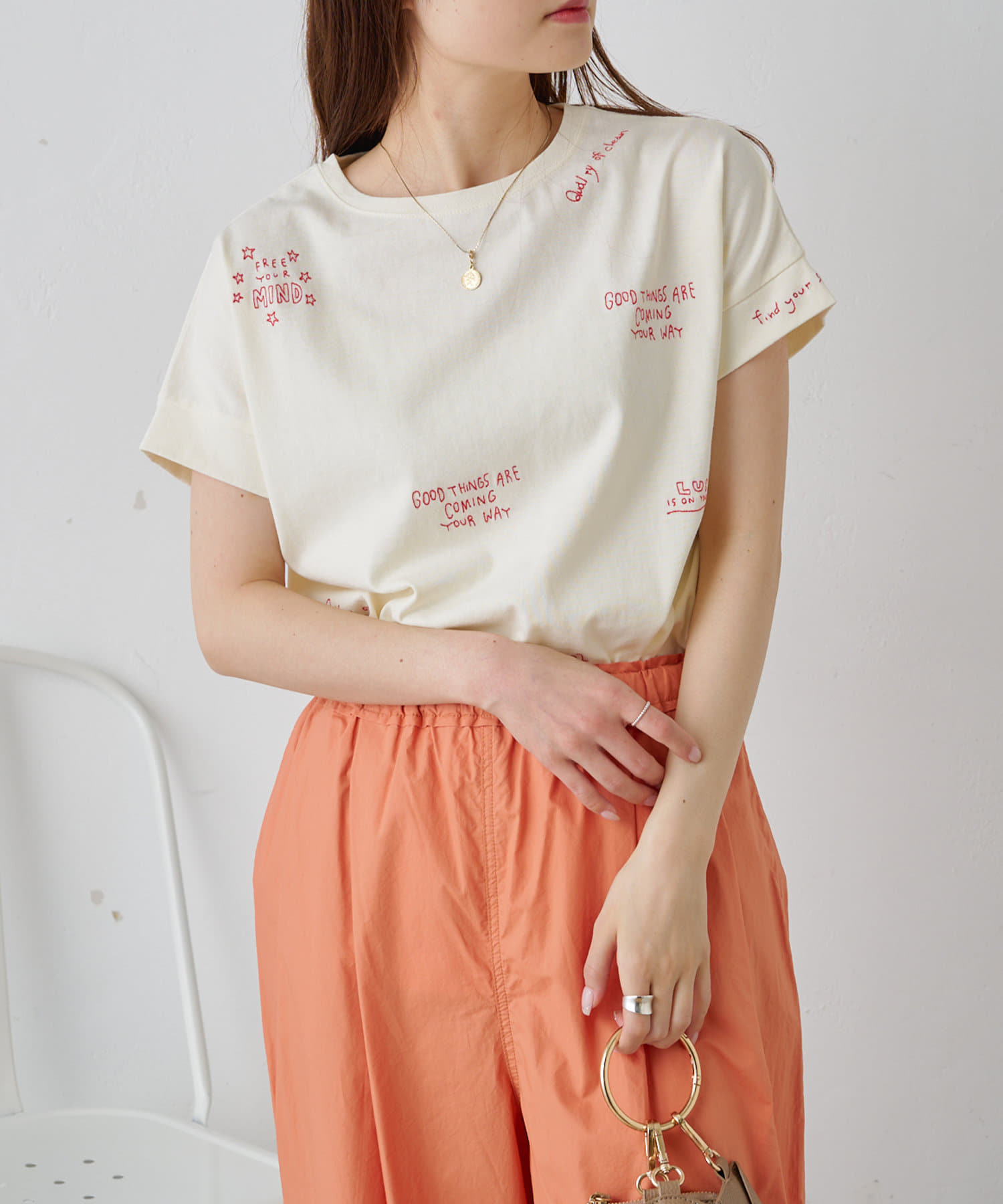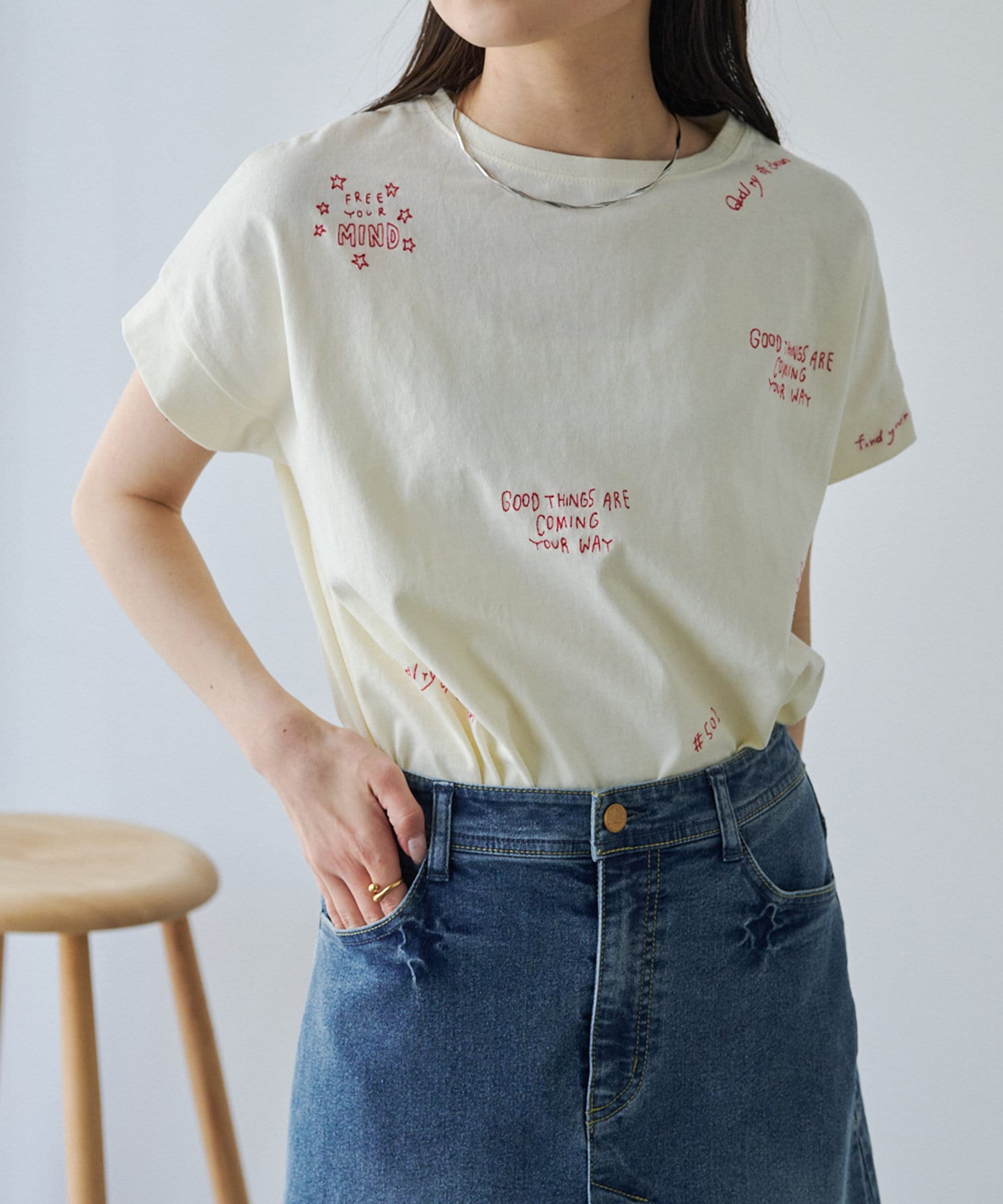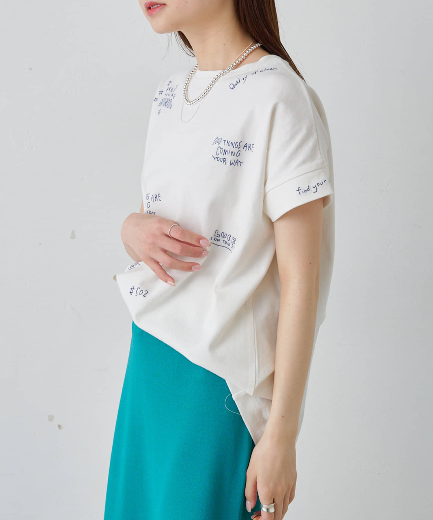 ◇この夏注目なハンド刺繍風 メッセージロゴTシャツ◇