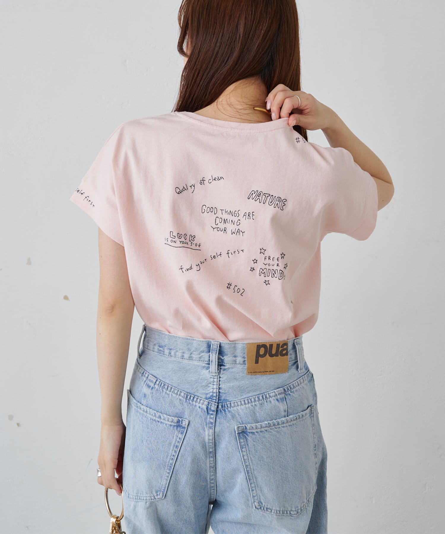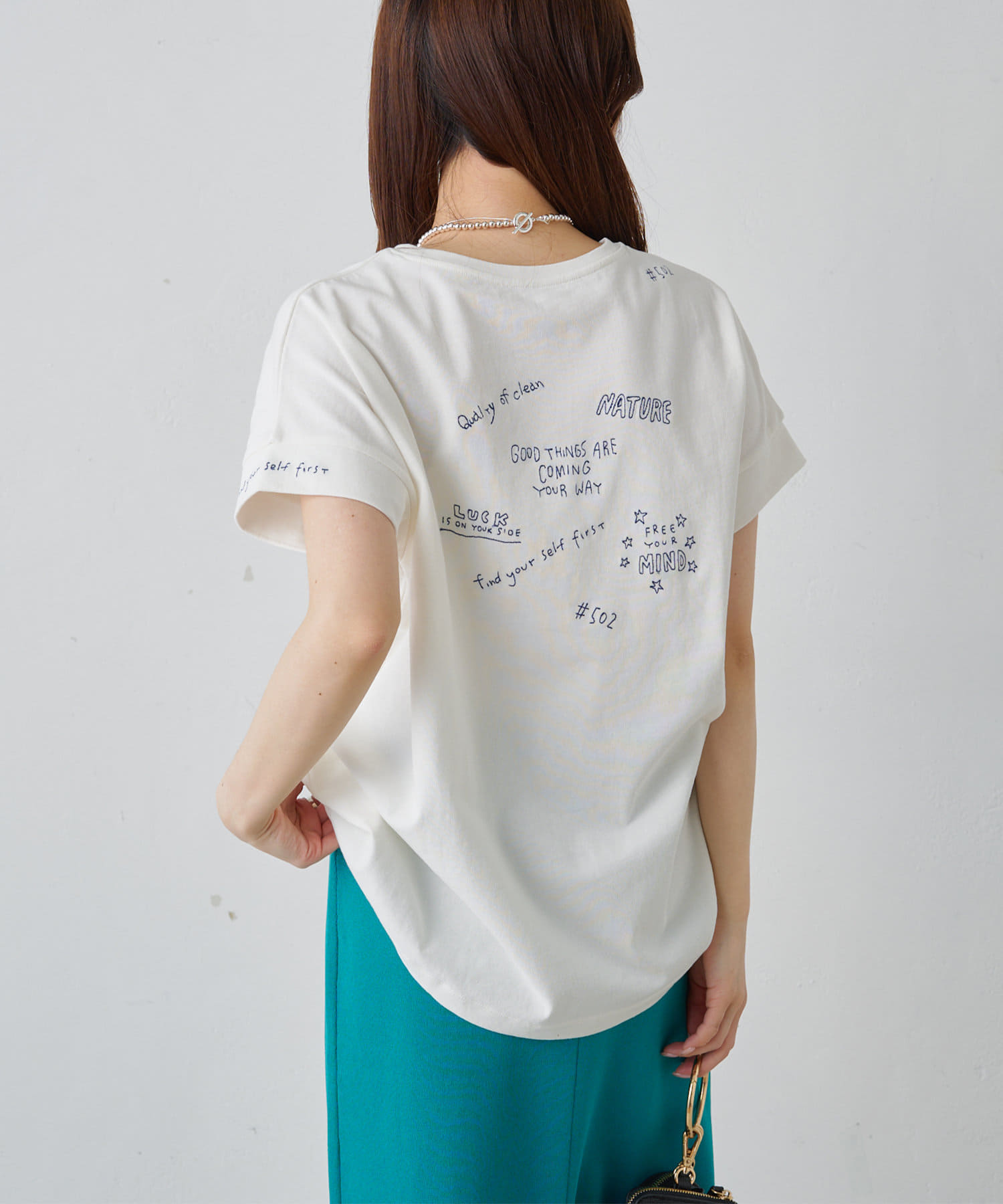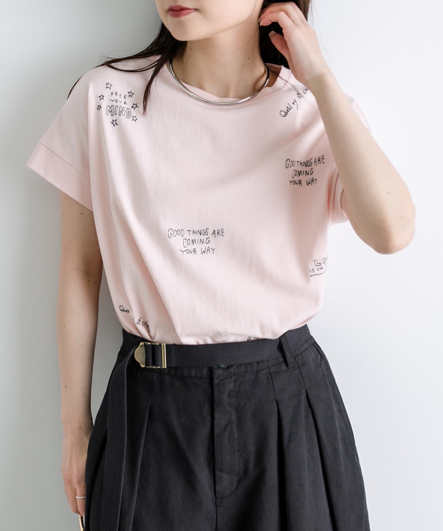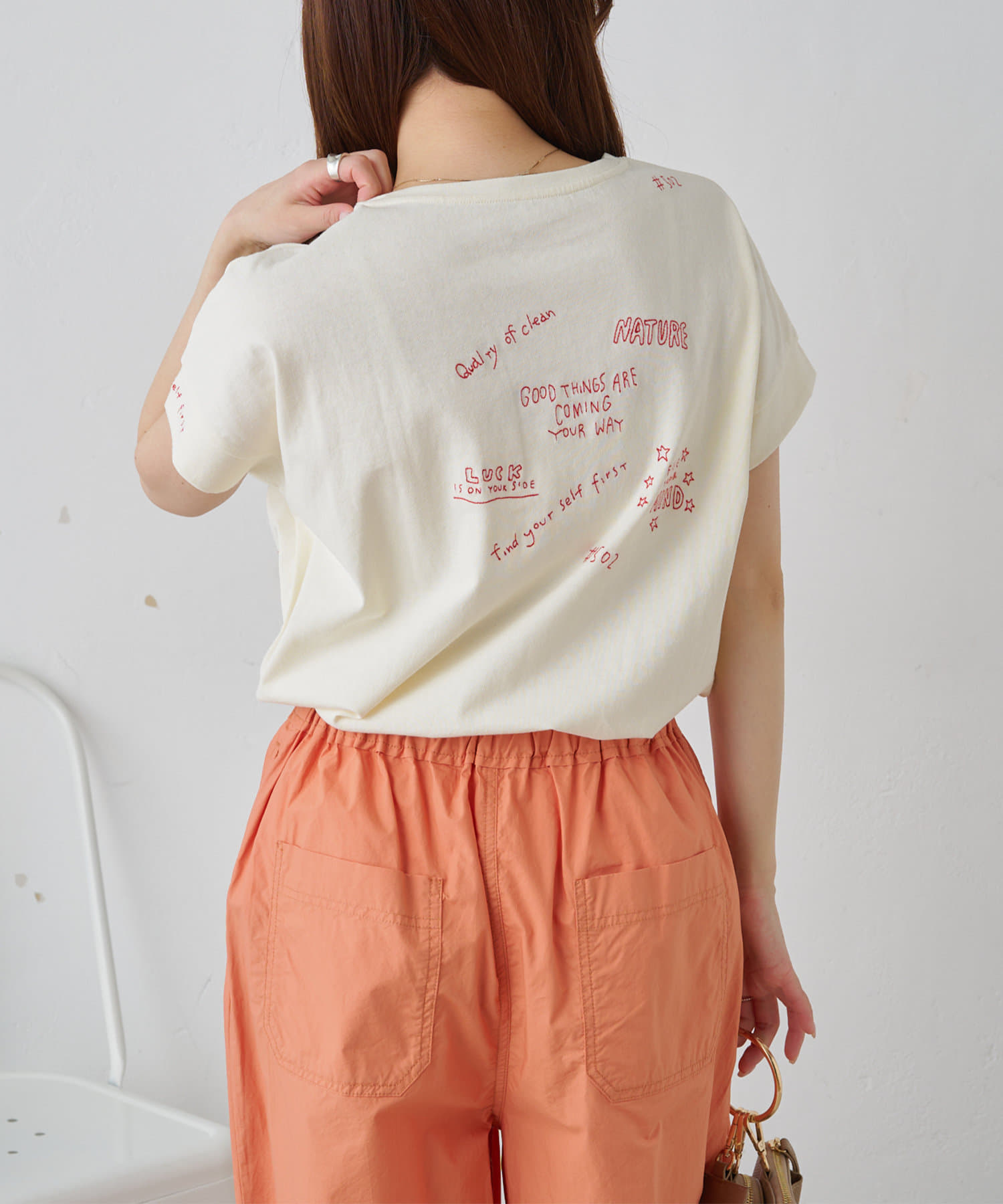 ◇この夏注目なハンド刺繍風 メッセージロゴTシャツ◇