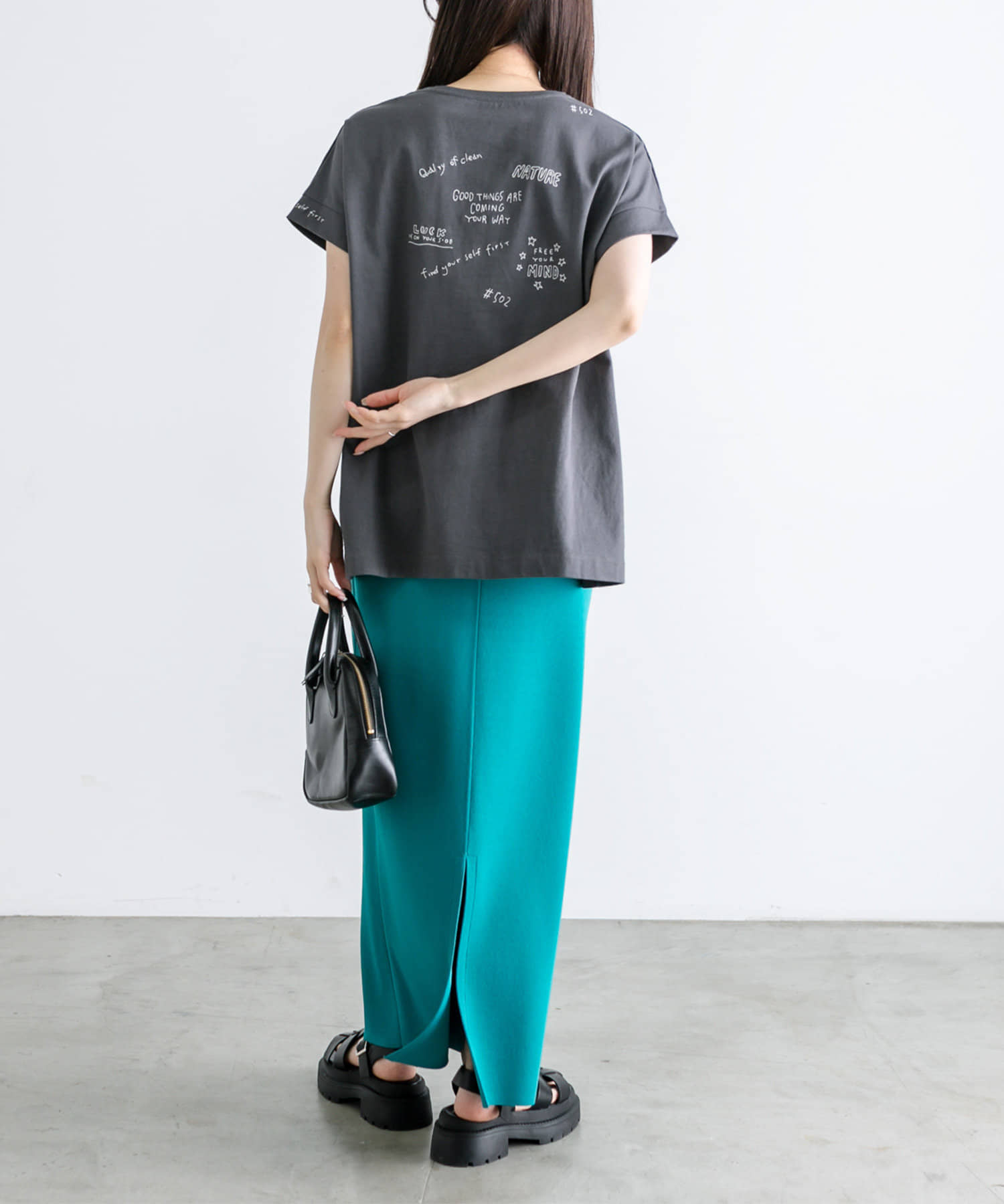 OUTスタイルの時はナロースカートやスキニーパンツとの組み合わせがおすすめ。
