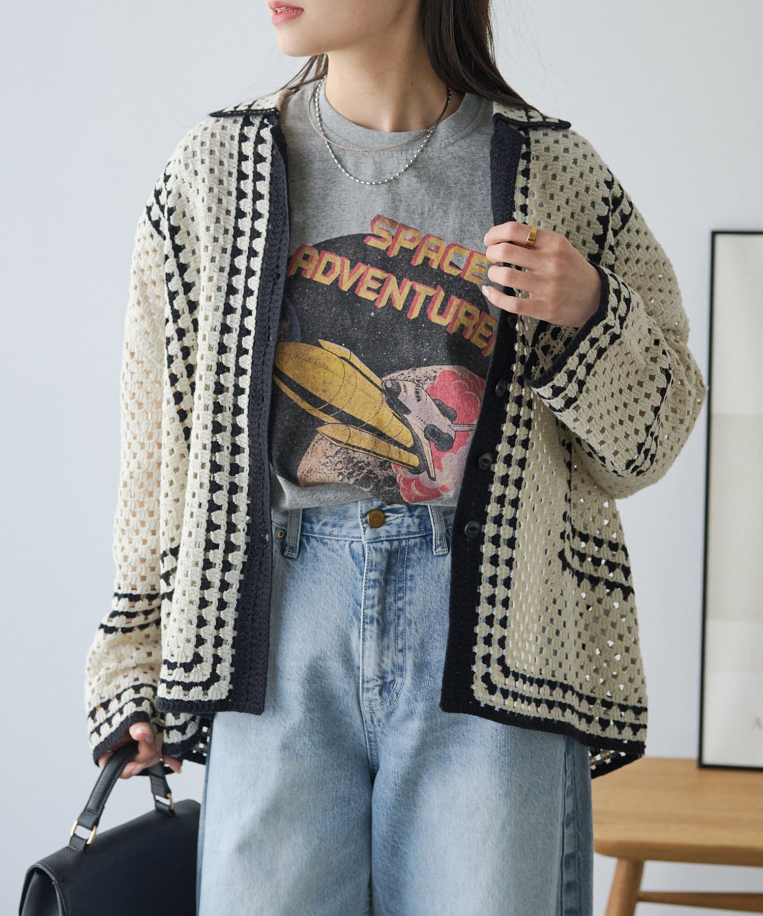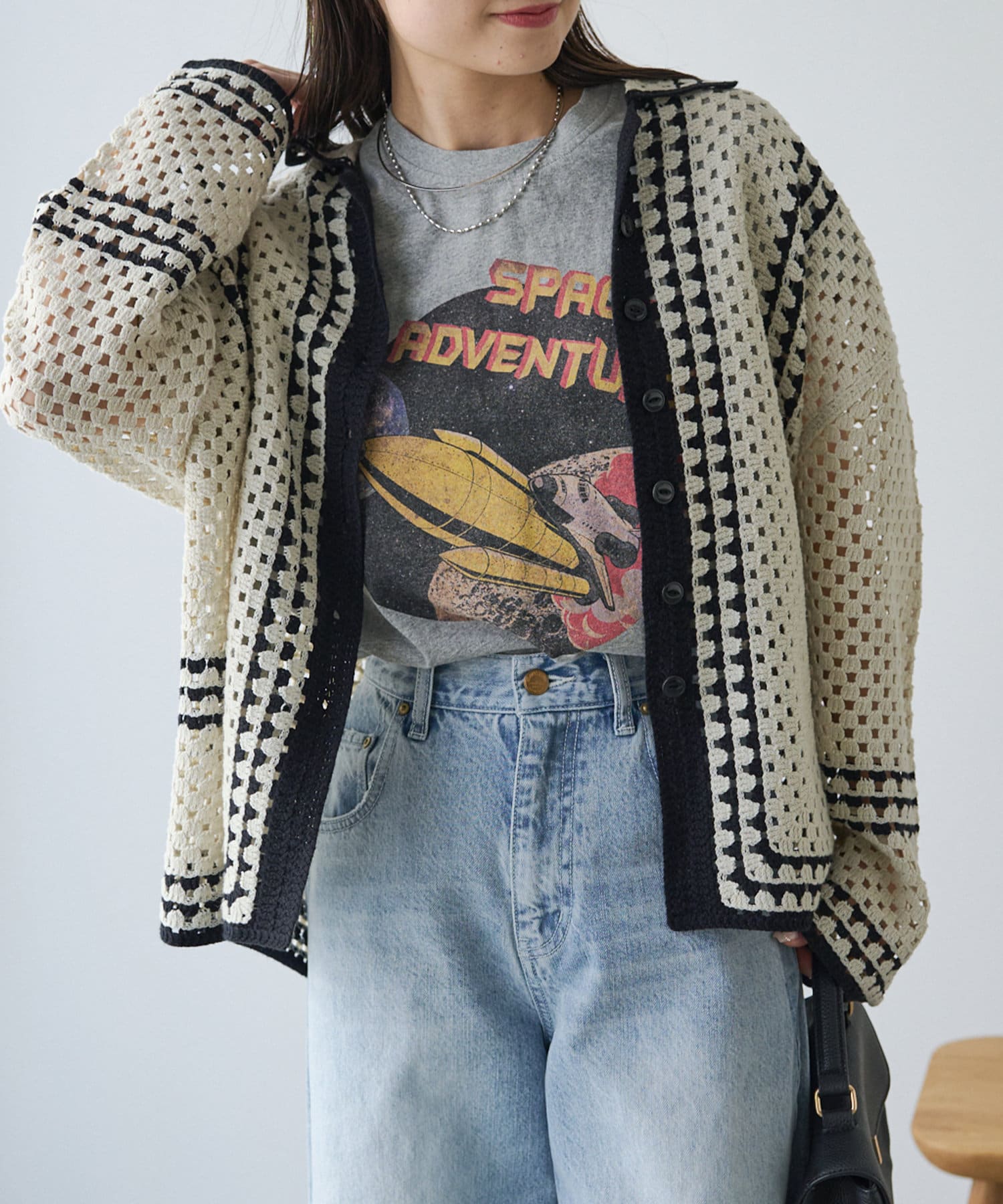 90年代の古着のようなフロントプリントデザインが目を惹くTシャツ。
