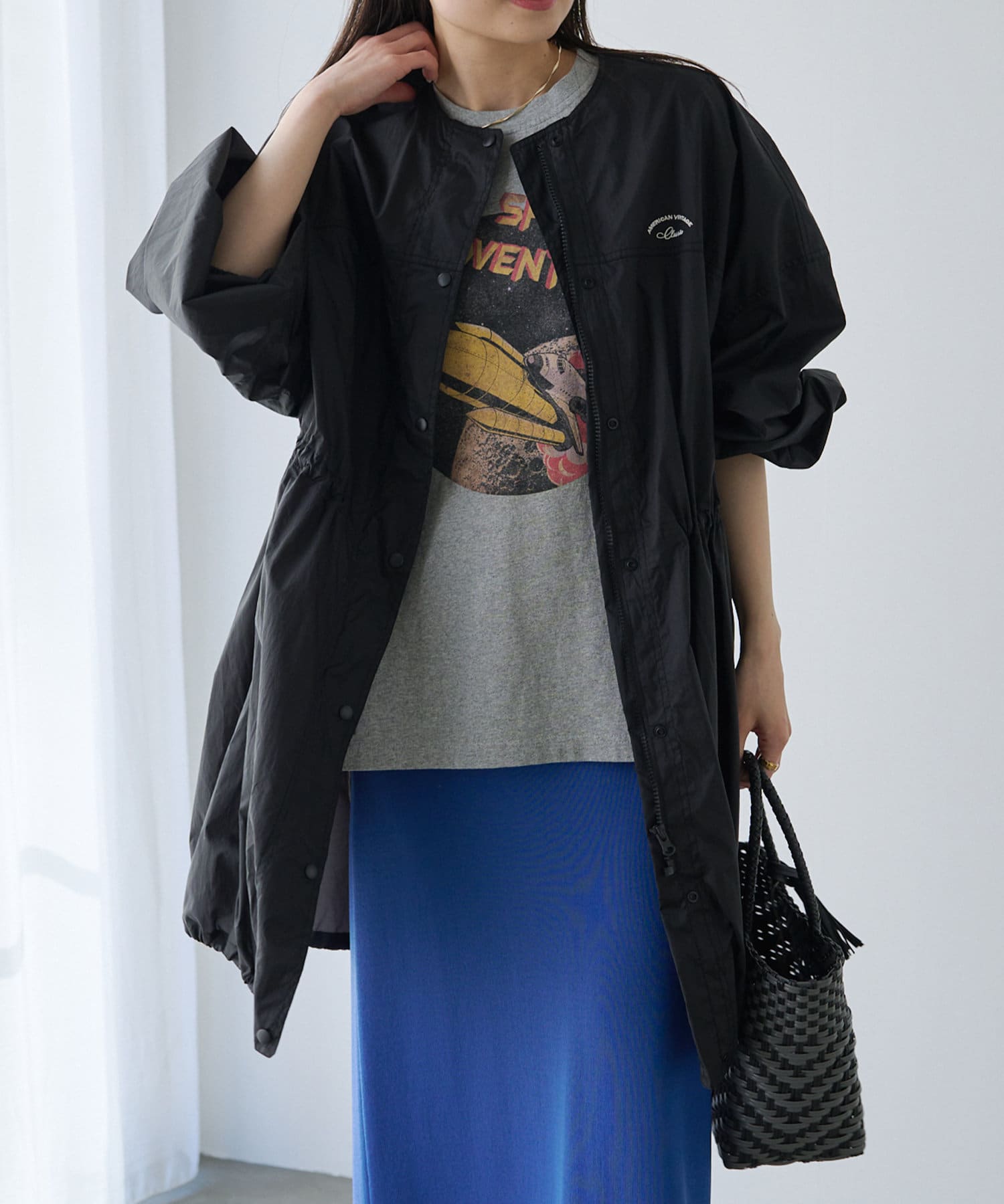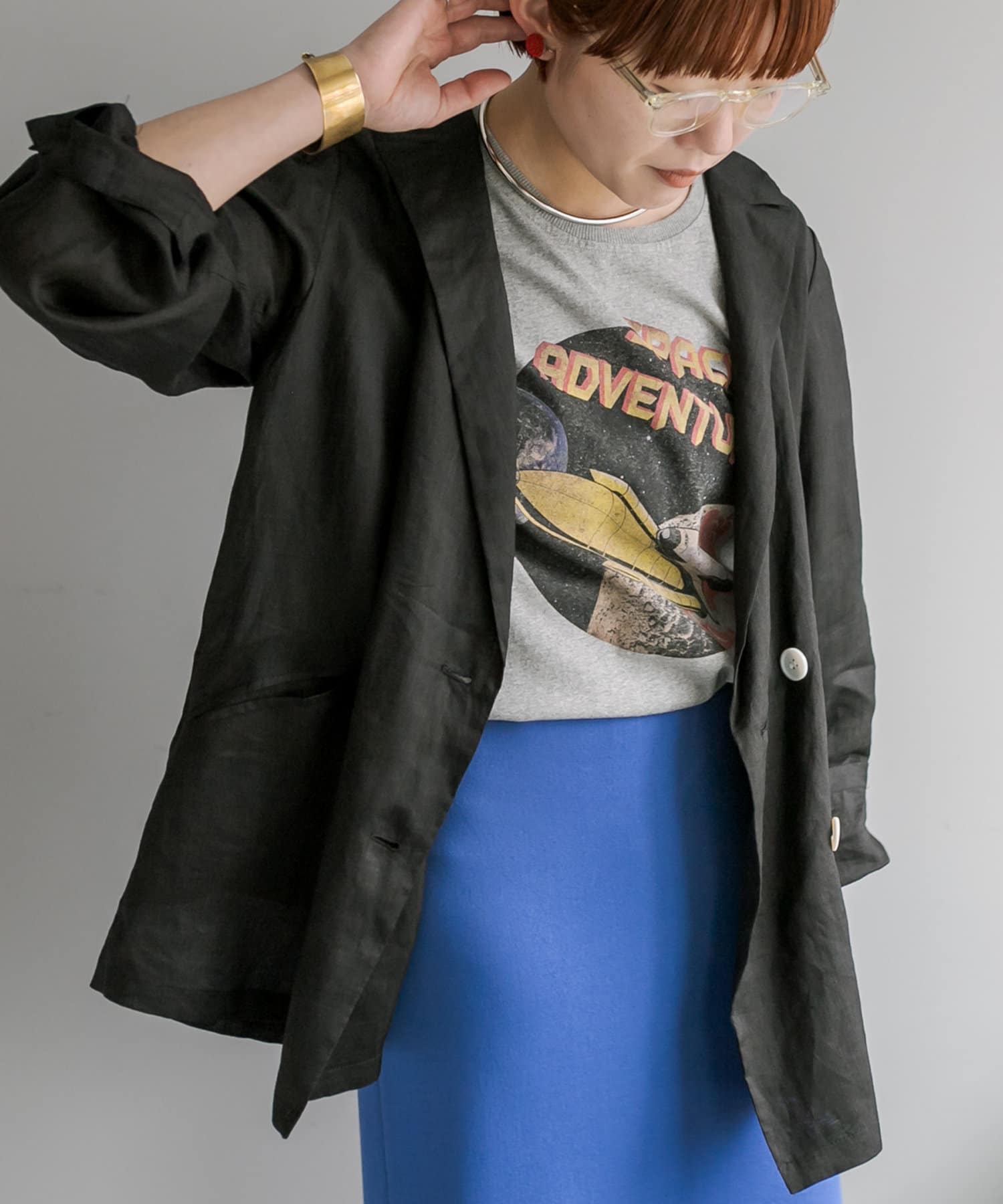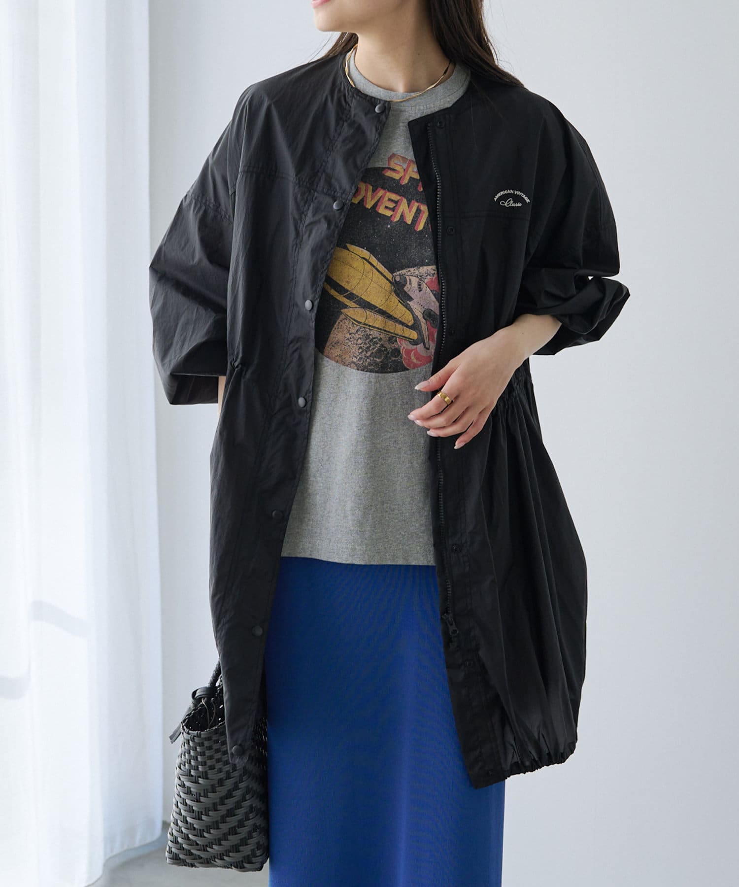 サイズ感:身幅にゆとりがあり、ボトムスに合わせてタックイン・アウトしやすい丈感です。