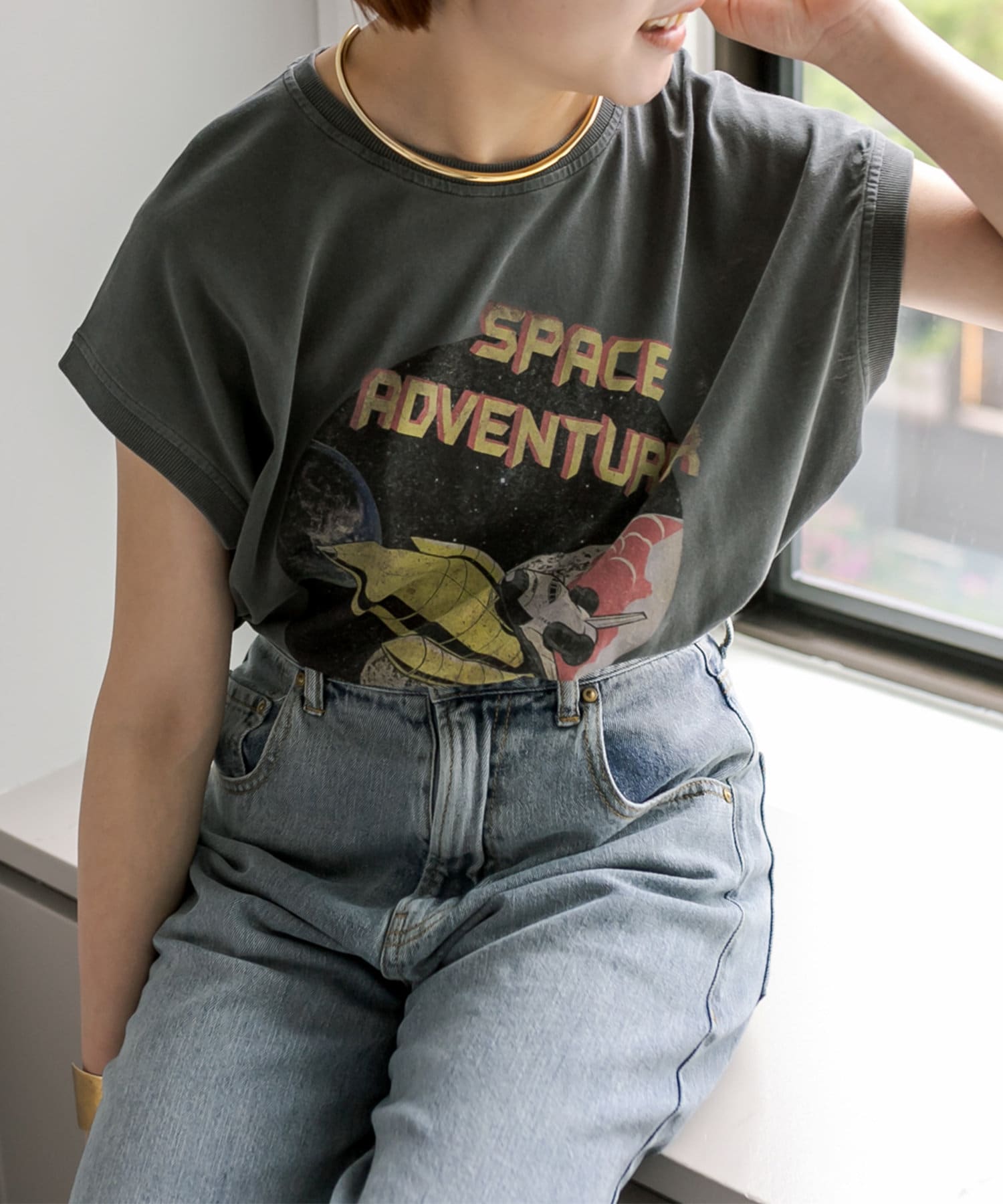 ヴィンテージライクSpace AdventureフレンチスリーブT