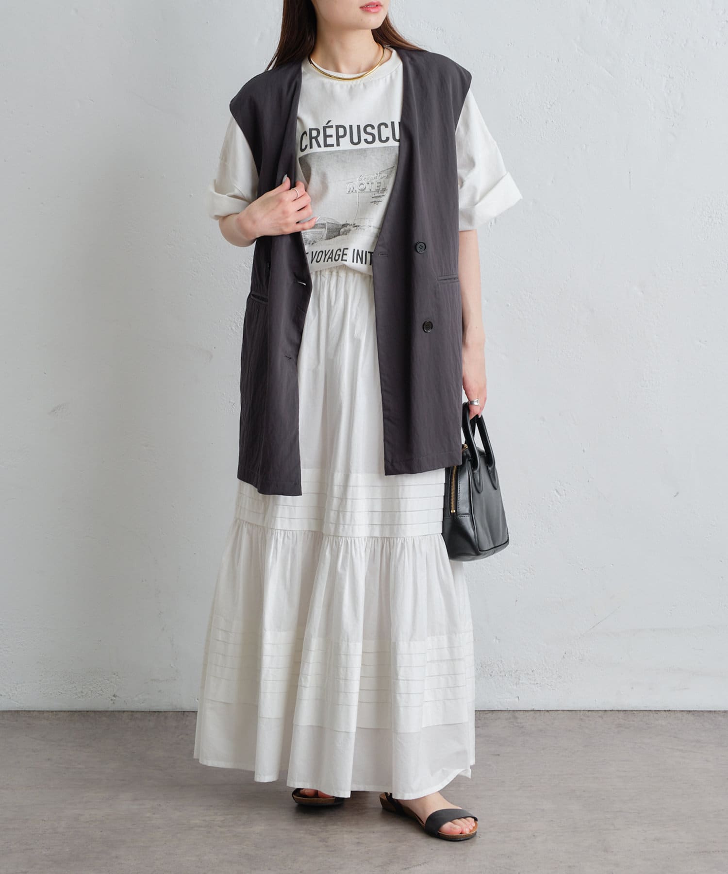 程よく着丈があるのでOUTスタイルの時はナロースカートや