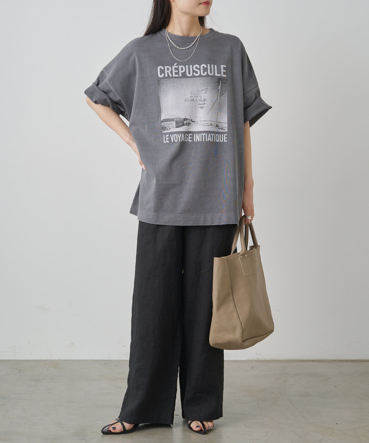 シンプルながらも、シルエットやピグメント加工で存在感のある1着です。