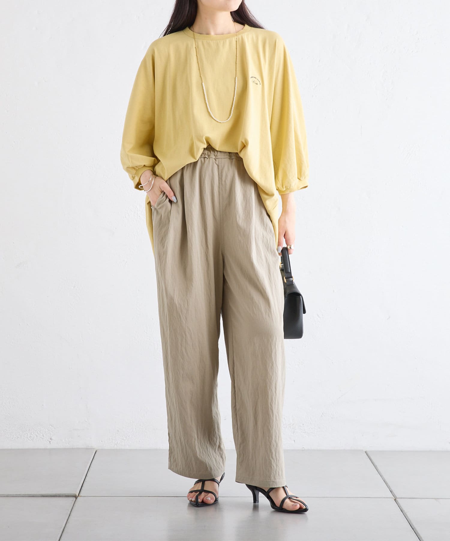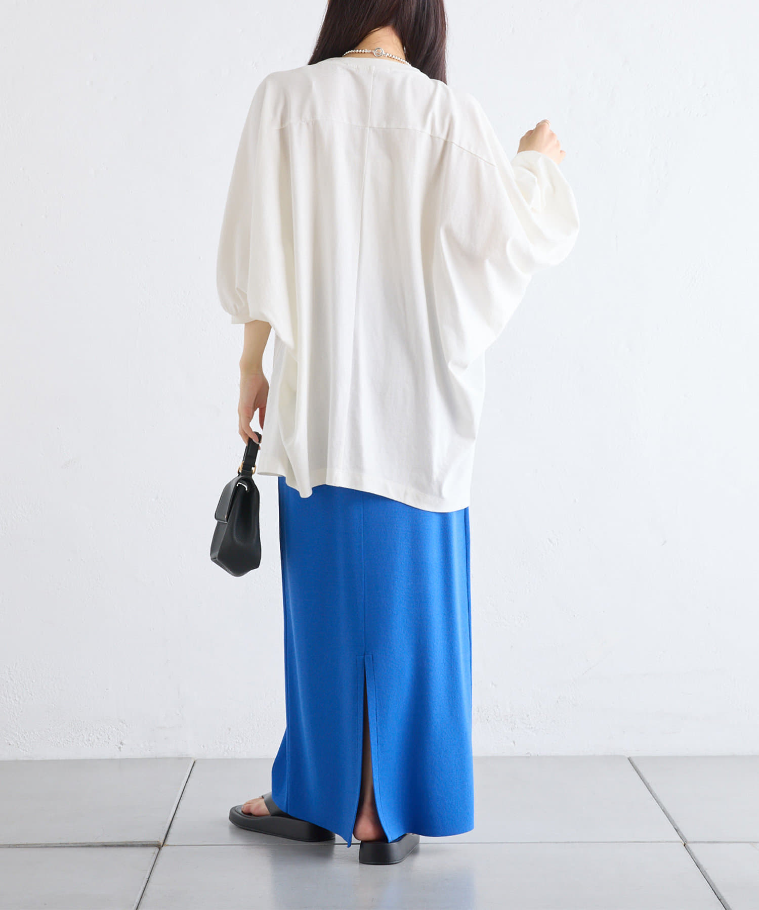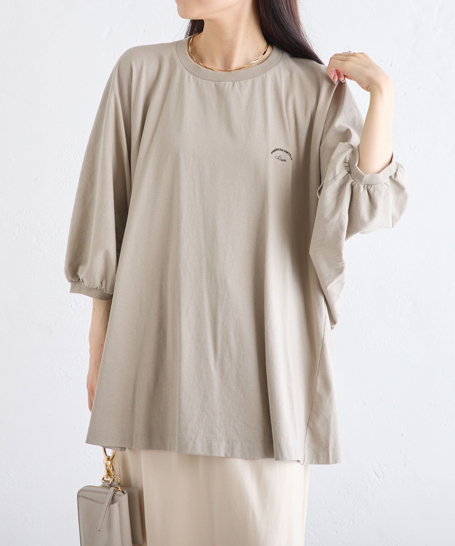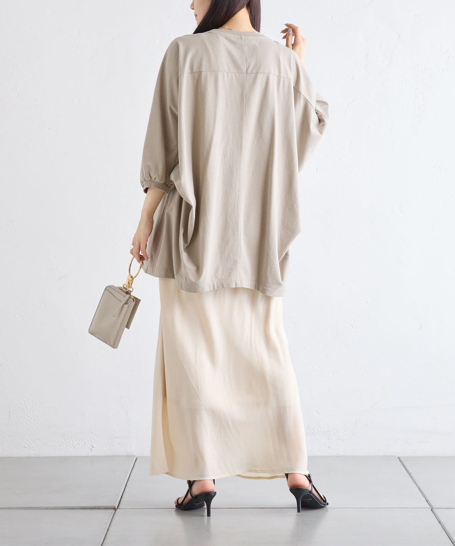 こなれ感のあるオーバーサイズ感に仕上げ、体型カバーもしてくれるドルマンスリーブは、女性らしいシルエットでトレンドに左右されずに着れる定番シルエットのチュニックTシャツ。