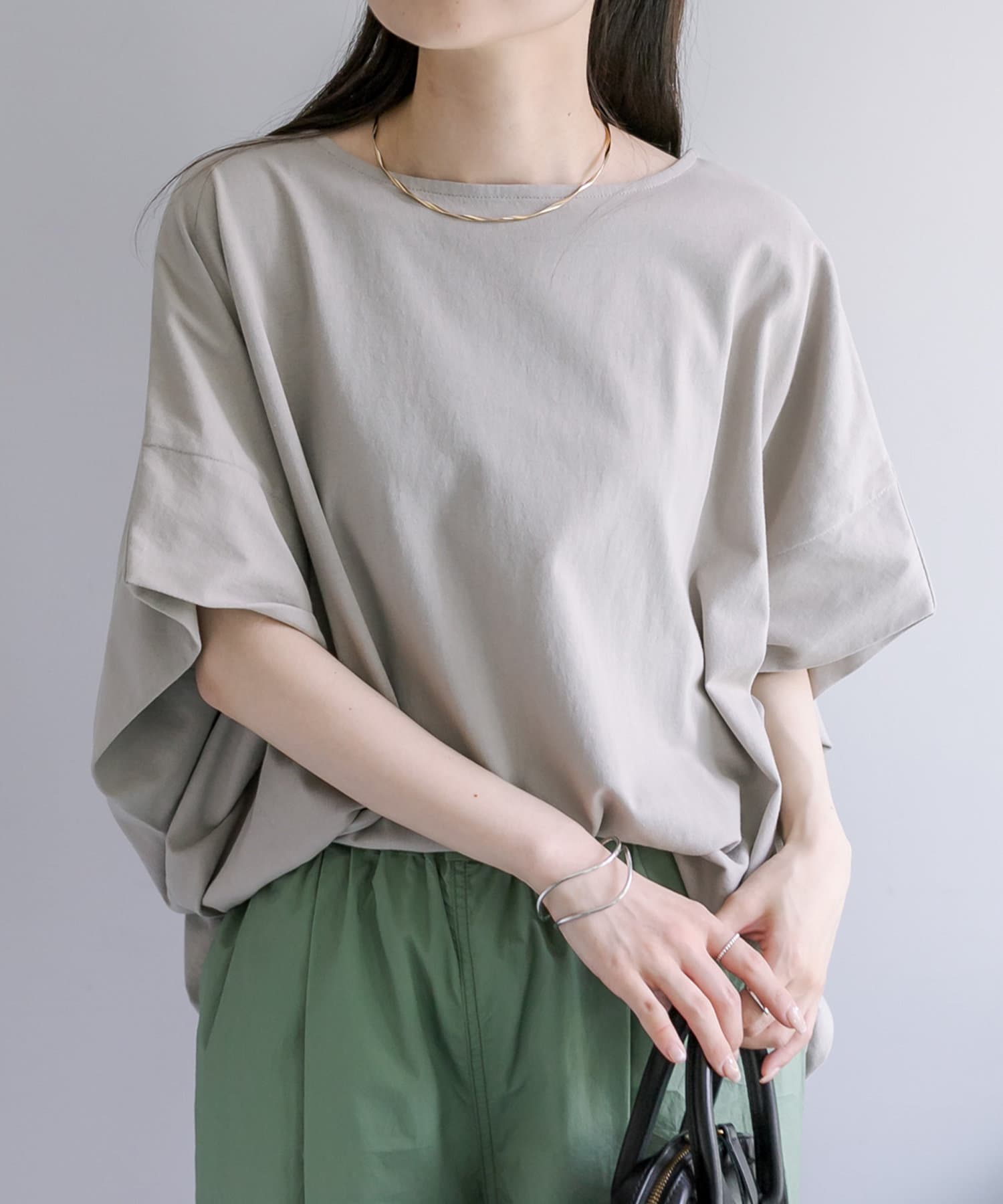 こなれ感のあるオーバーサイズ感に仕上げ、二の腕をしっかりカバーし華奢見えを叶えてくれます。