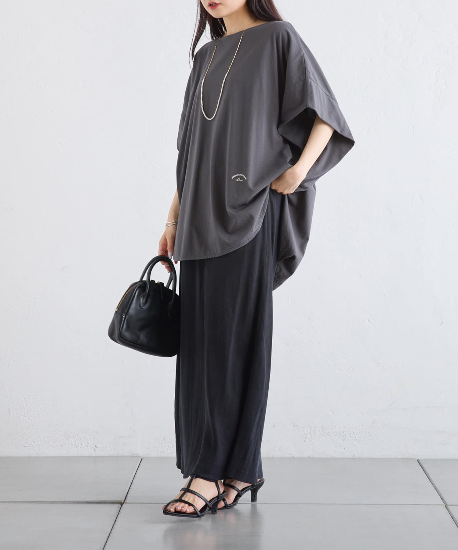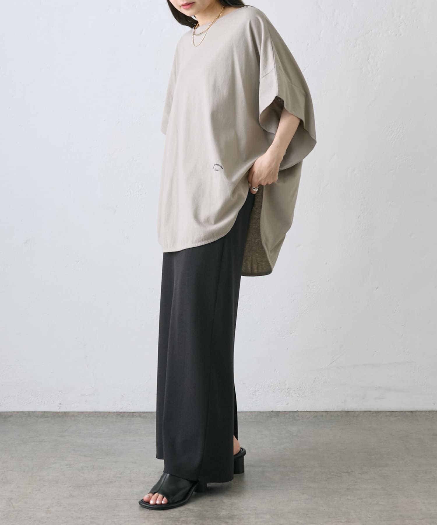 着用感:二の腕やお尻までカバーするオーバーサイズ。柔らかいカットソー素材なので着膨れすることなく着用できました。