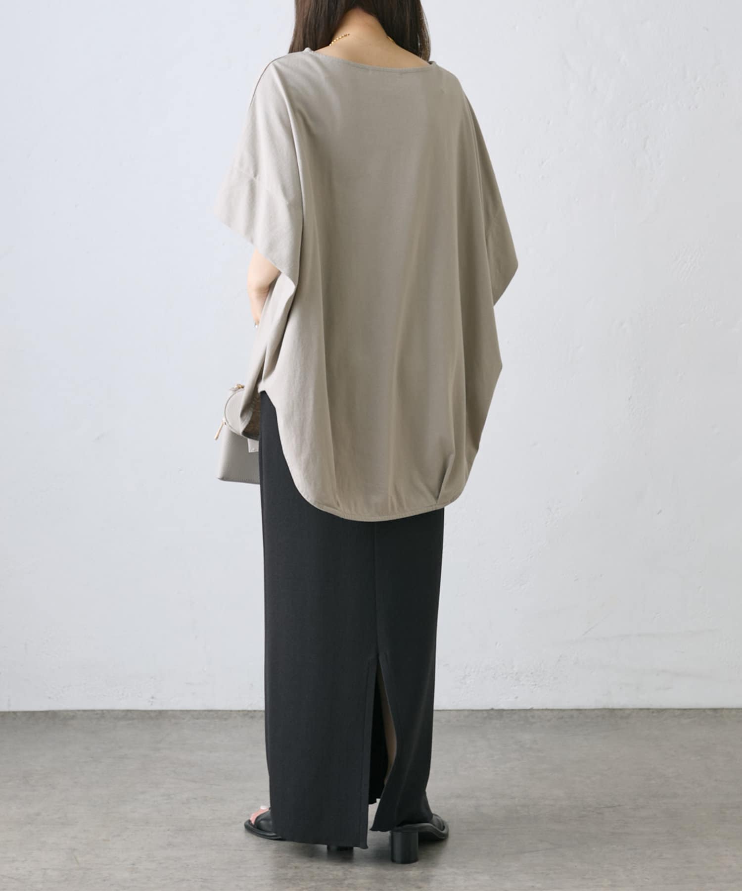 裾はラウンドヘムにすることで、パンツにもスカートにも合わせやすいデザインに仕上げました。