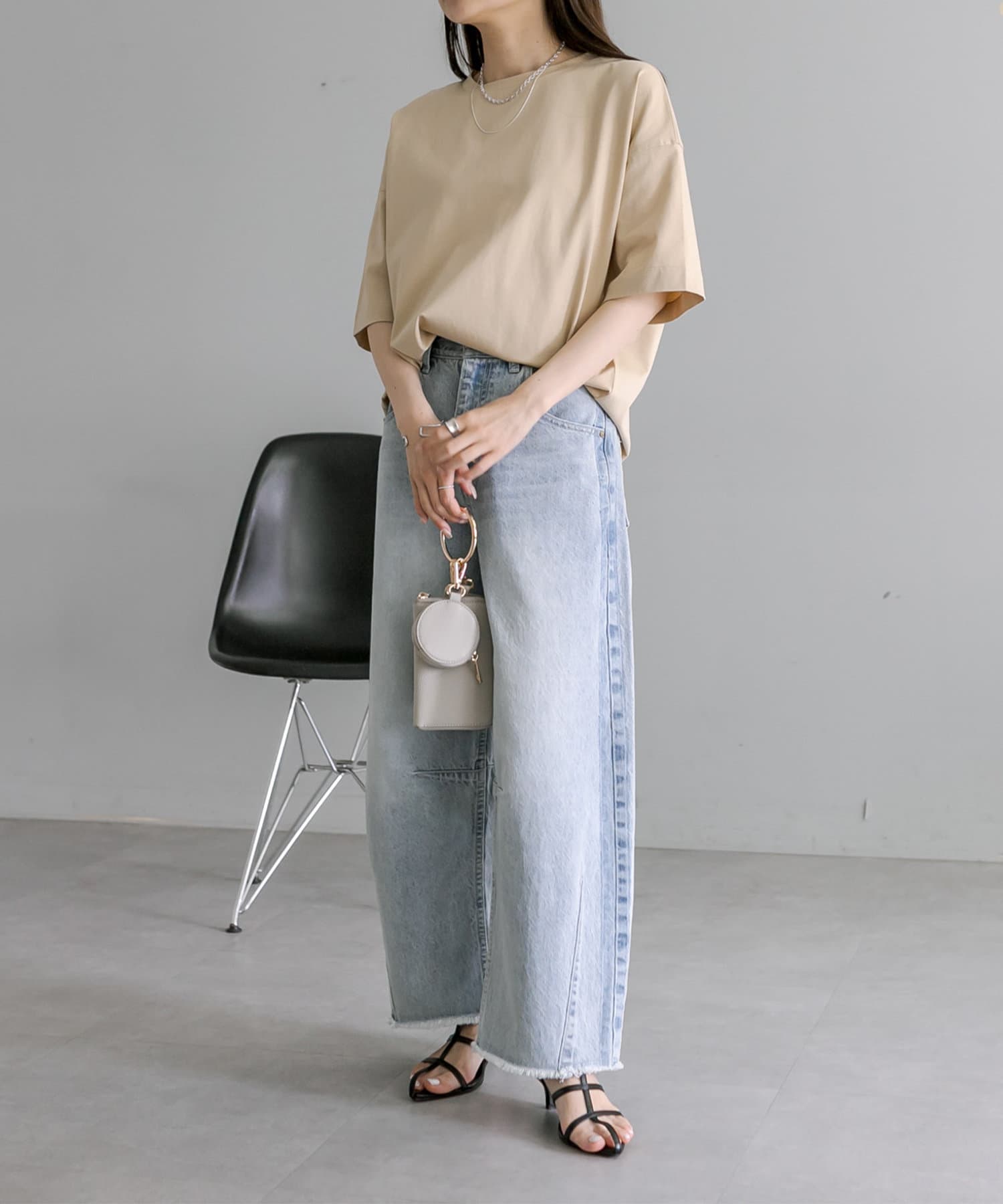 ややオーバーなシルエットとラウンドヘムラインが大人にスタイリングに最適な1枚。