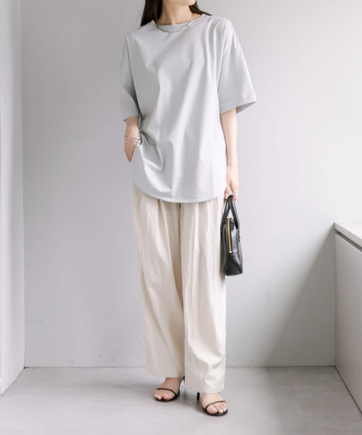着用感:155cmでヒップが隠れる丈でした。広めな身幅でラフに着れるのはもちろん、デイリーユースに最適な1枚です。