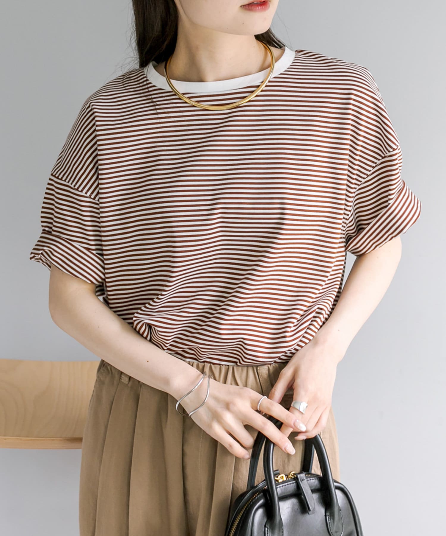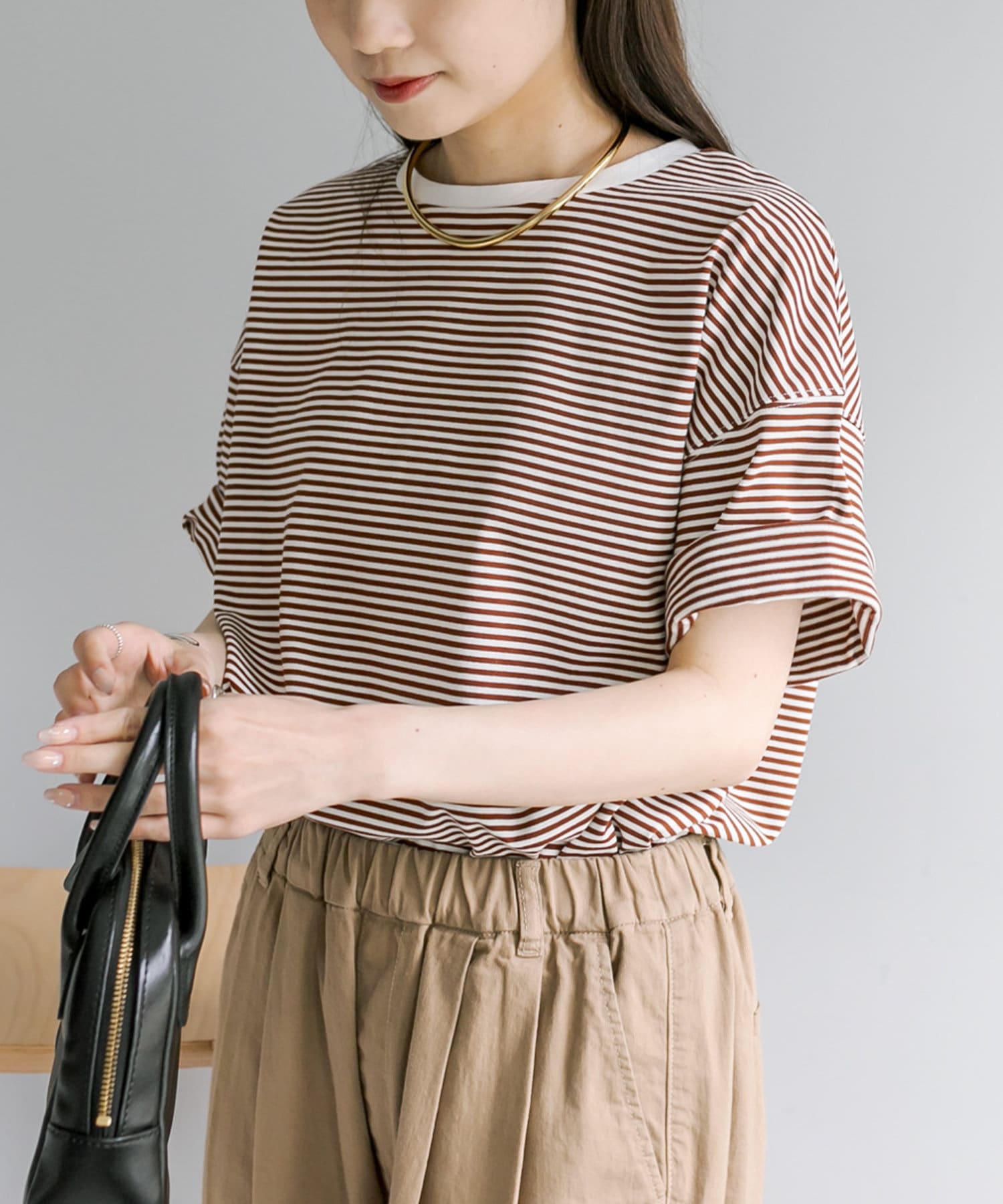 • ブラウン系その他 (アイボリー×ブラウンボーダー)モデル:157cm