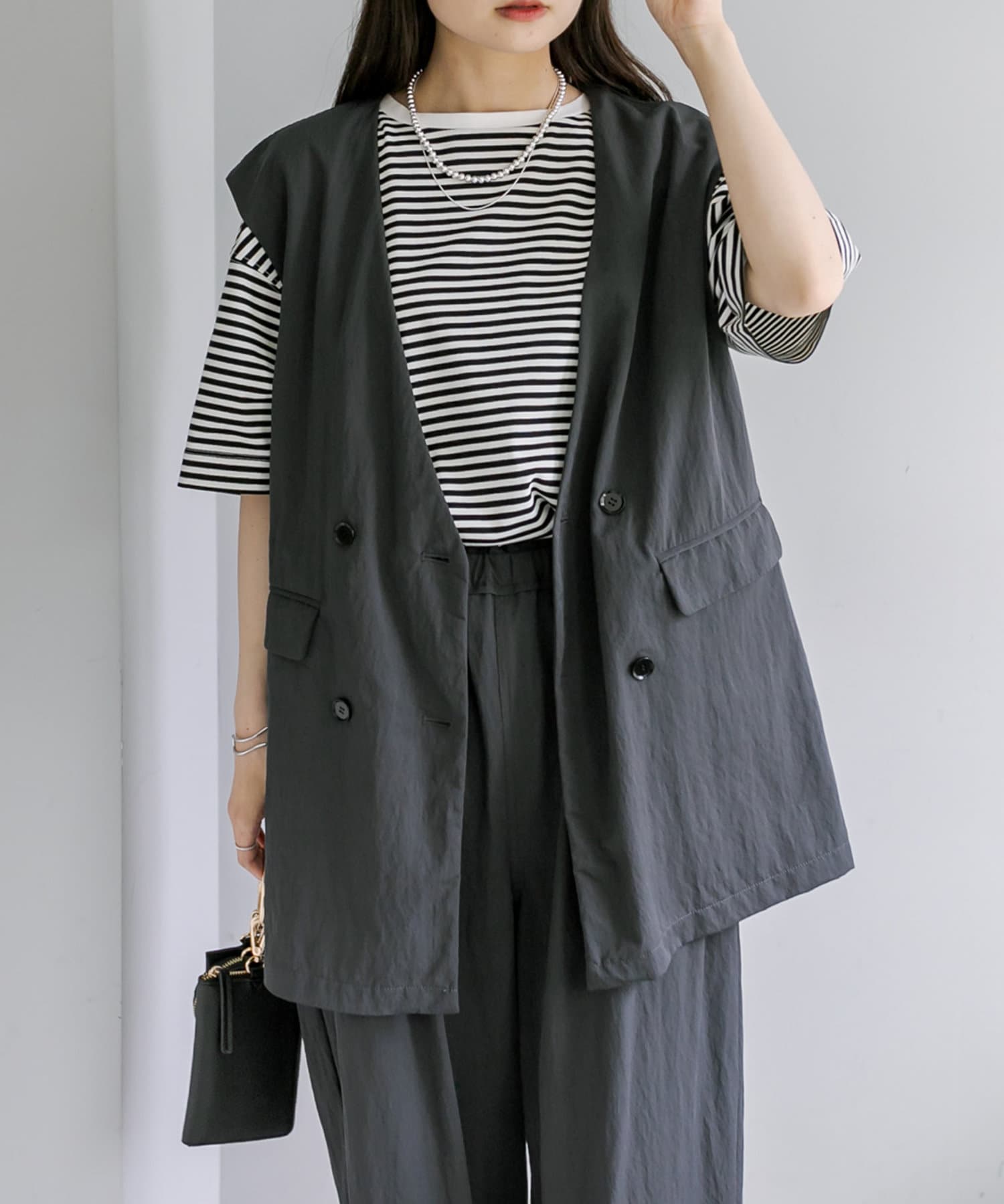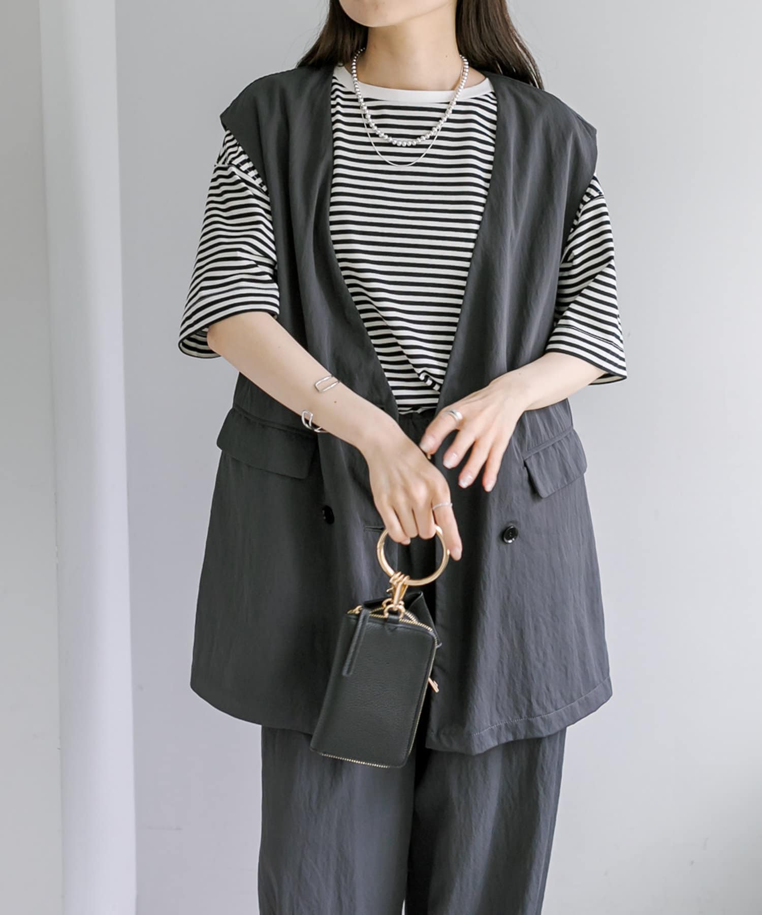 合わせるアイテム次第で多様なスタイリングが汎用性の高いアイテムです。