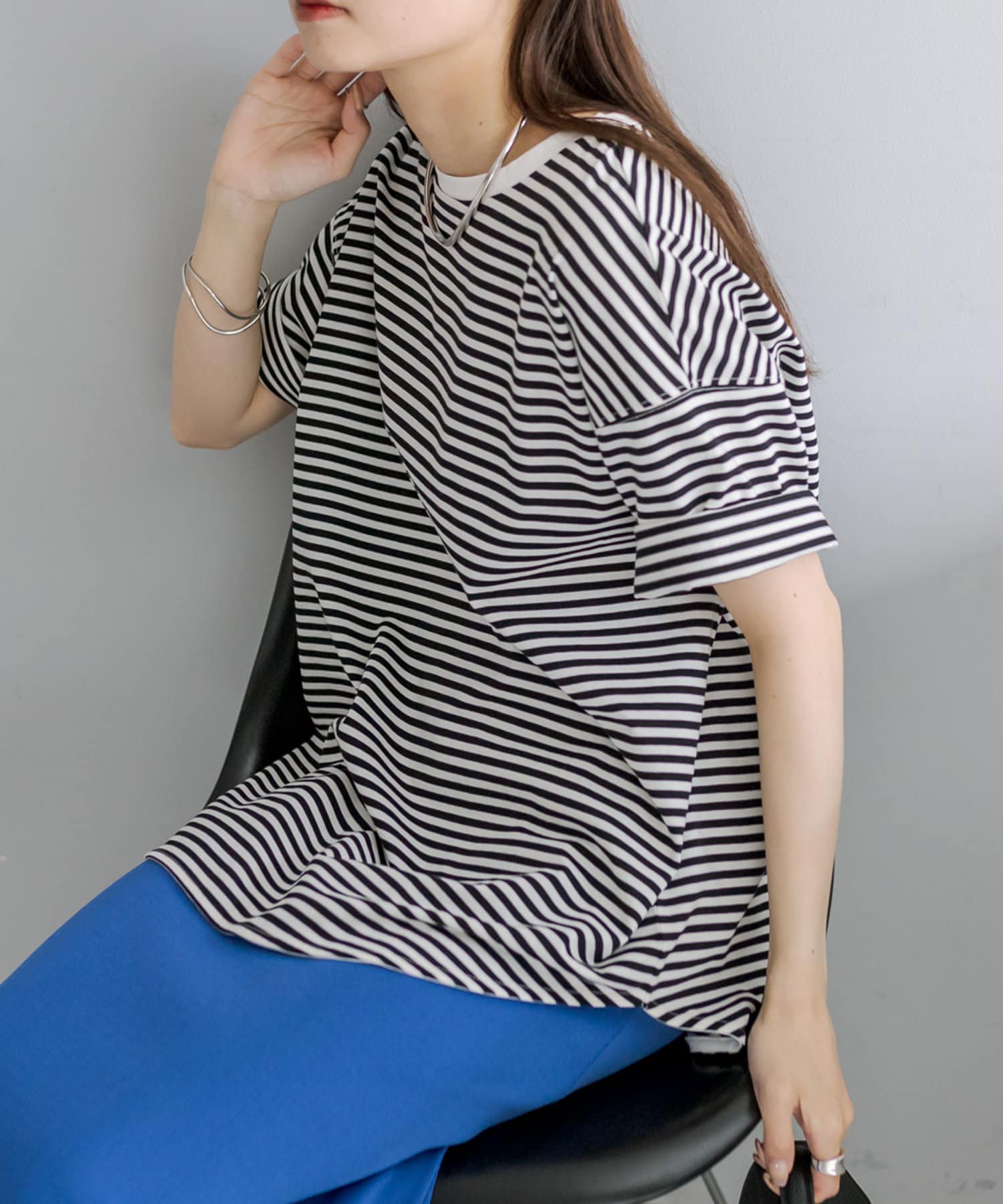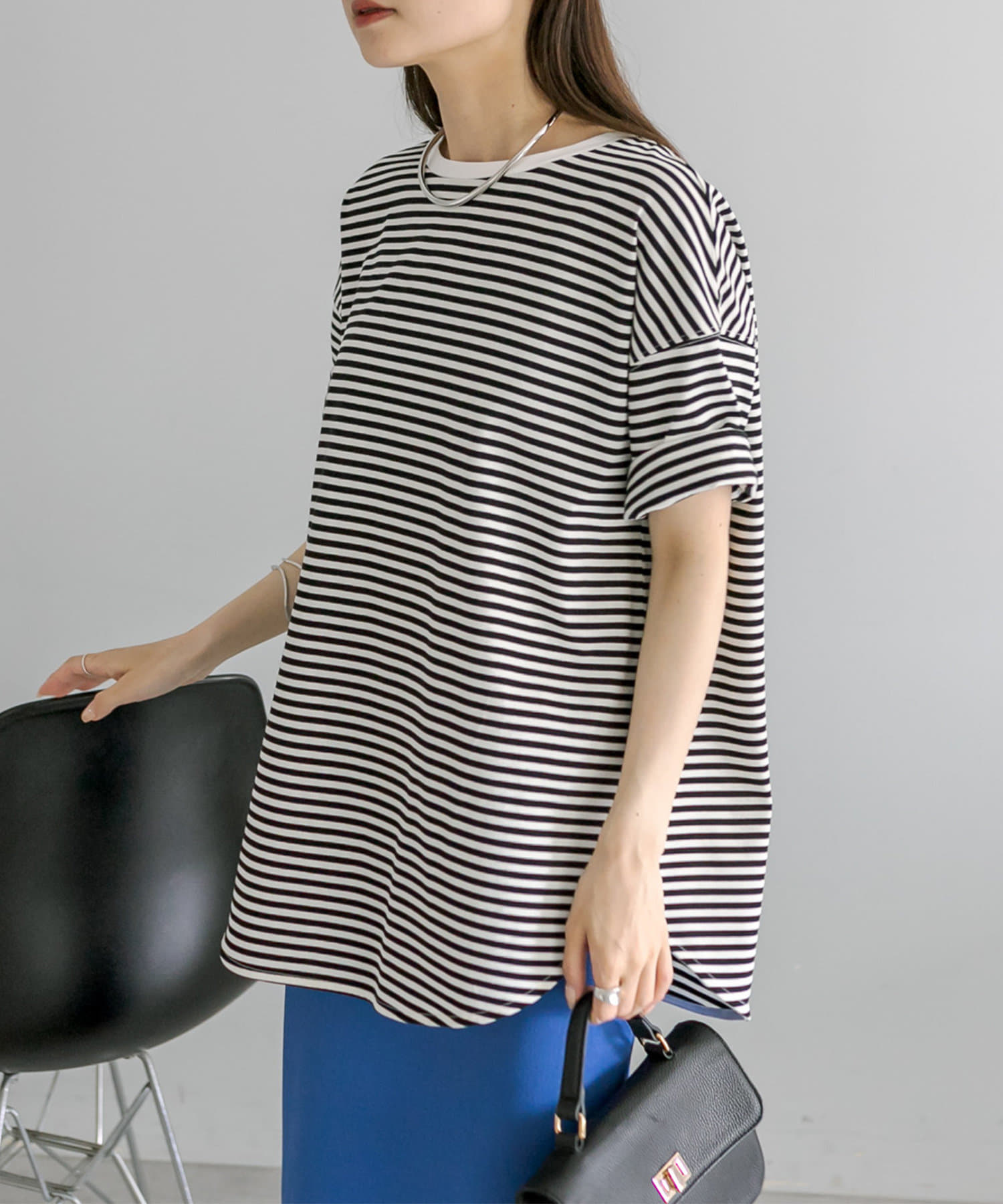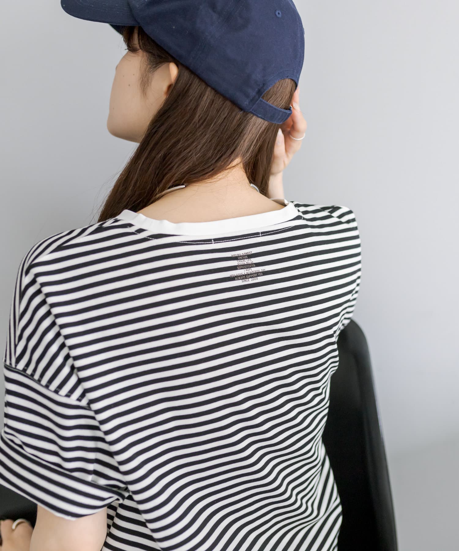 無地とボーダーで使用している糸の太さが異なる為、肌触りに差がございます。