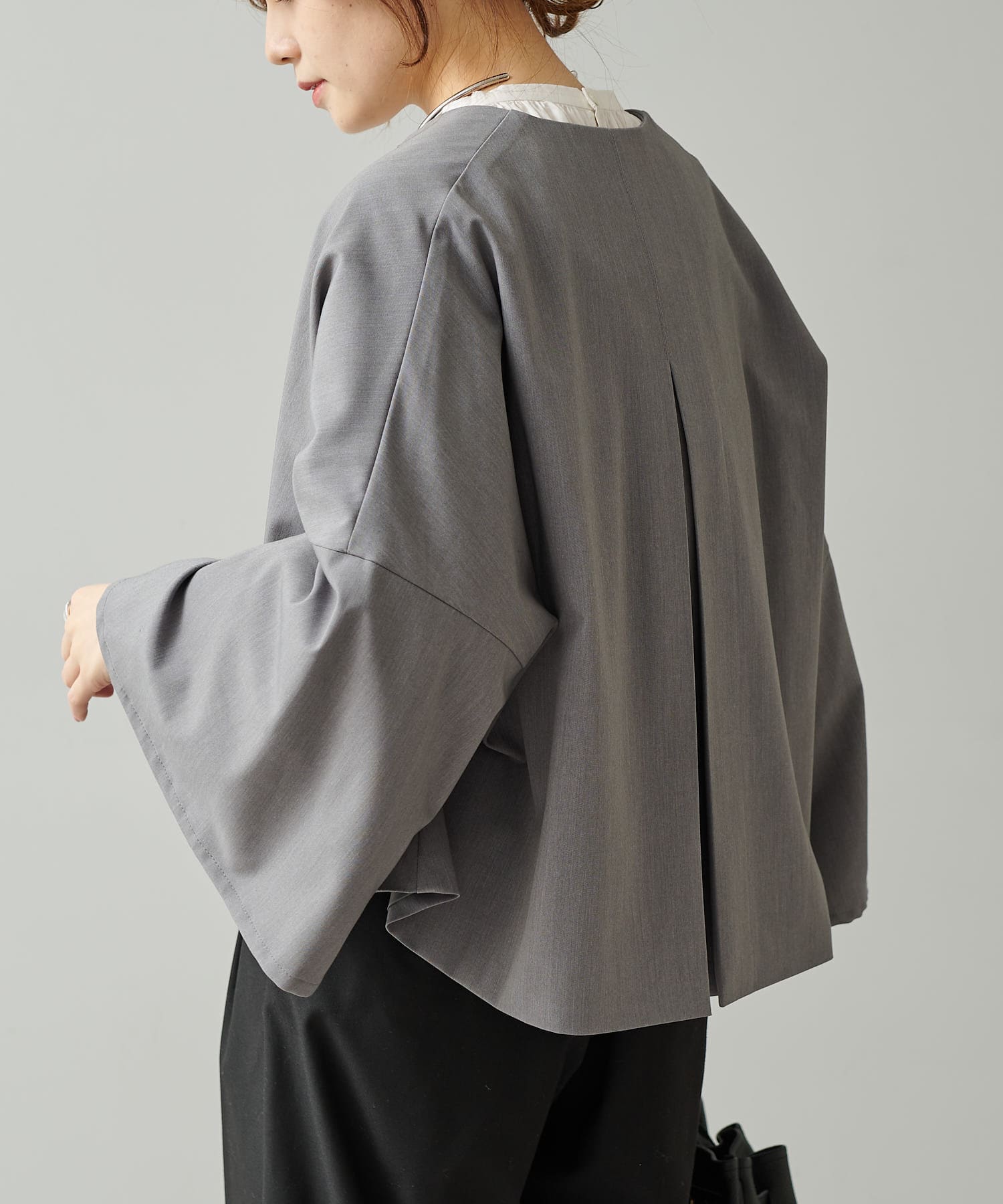 ふんわりと広がる華やかなシルエットのジャケットなので