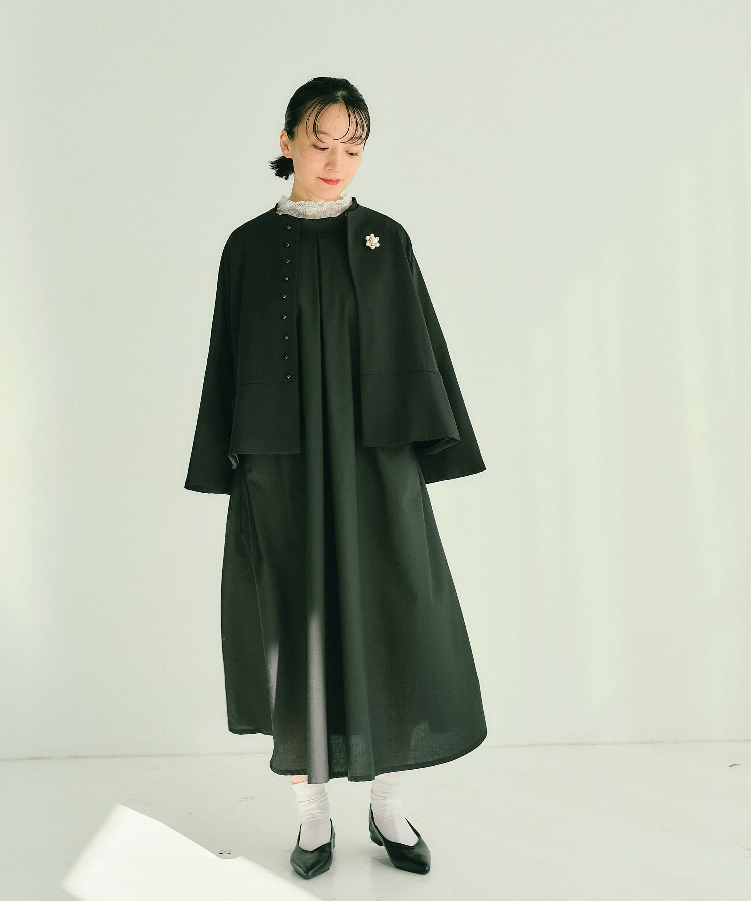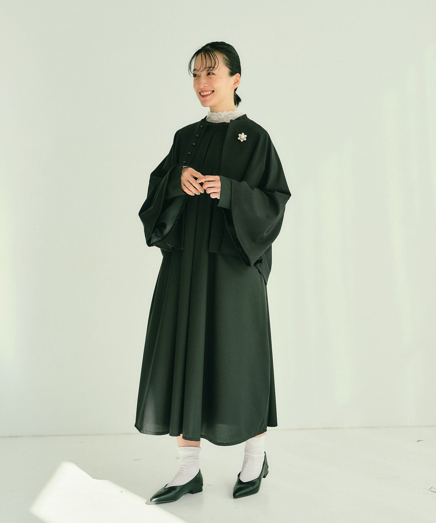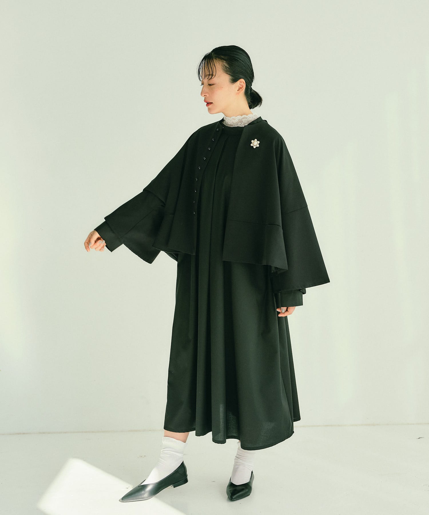 ケープのようなフレアデザインで