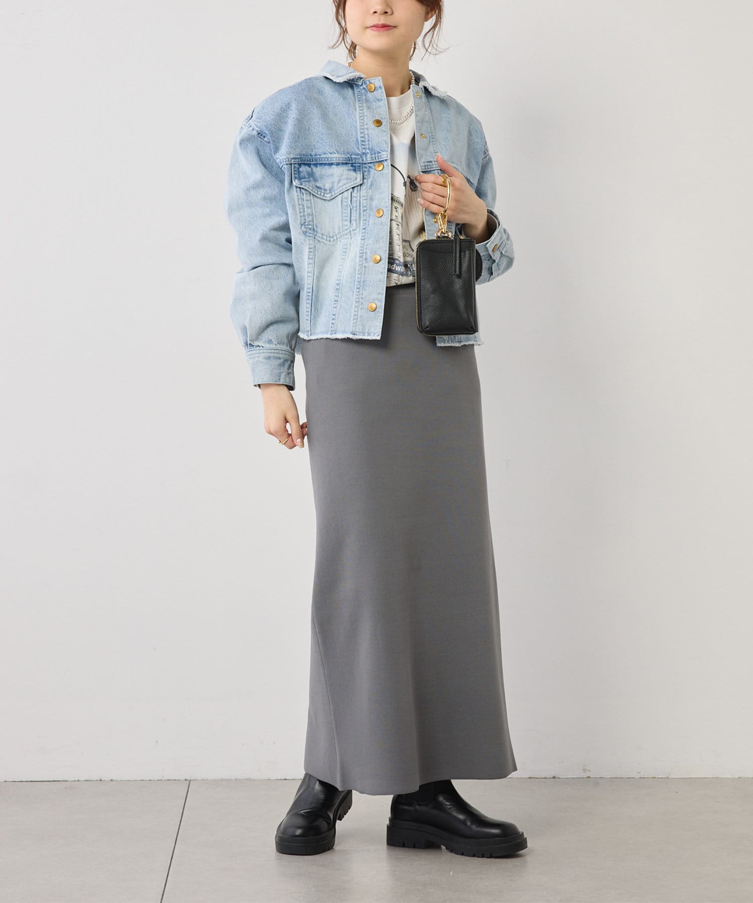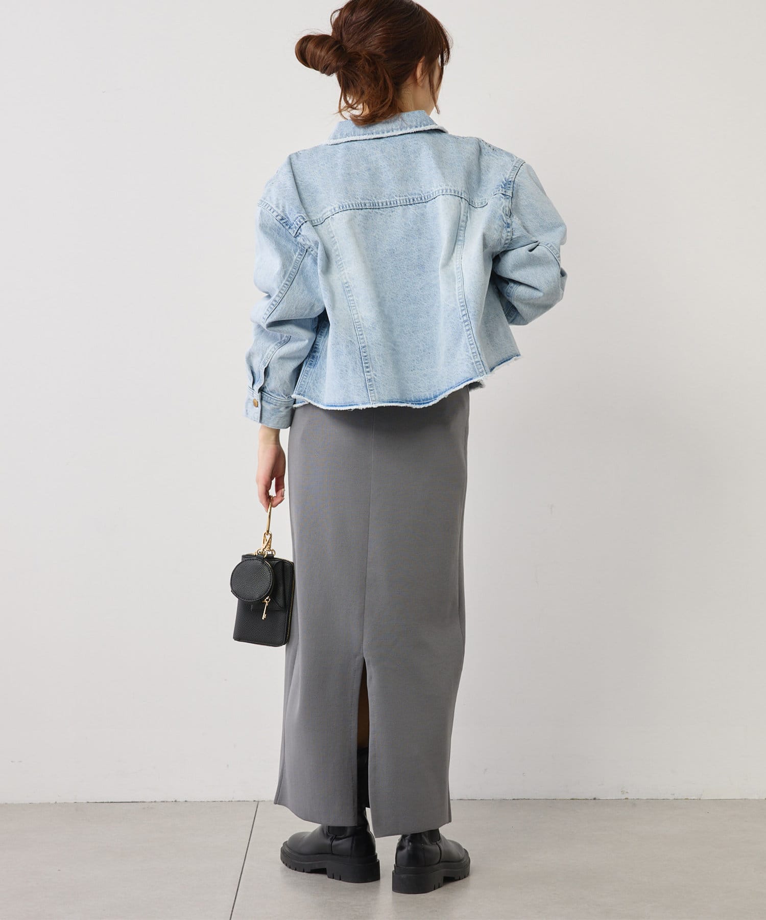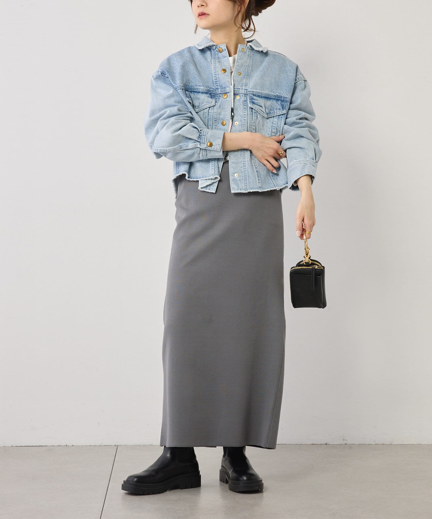 ワンピースやスラックスを合わせたきれいめアイテムとも相性抜群。同色のデニムパンツと合わせたセットアップ風な着こなしもおすすめです。