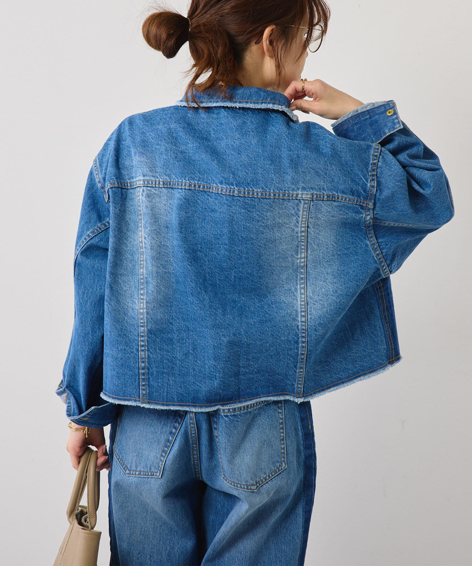 合わせるボトムを選ばない絶妙なショート丈感が魅力のデニムジャケット。