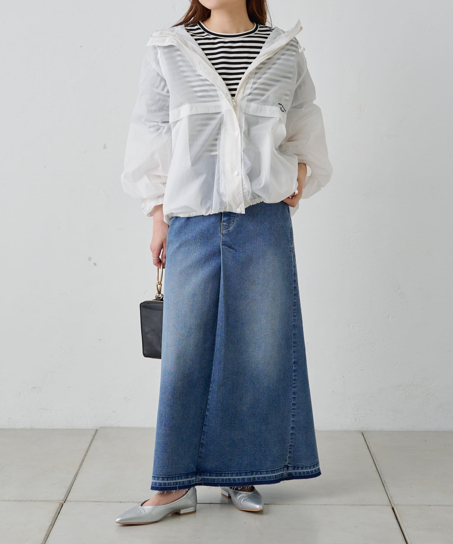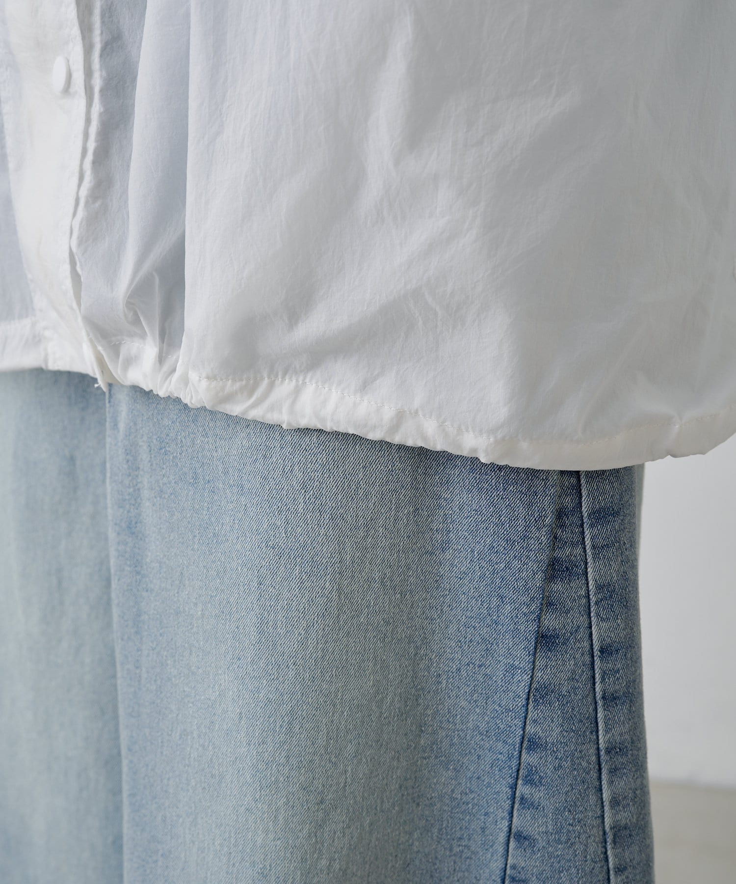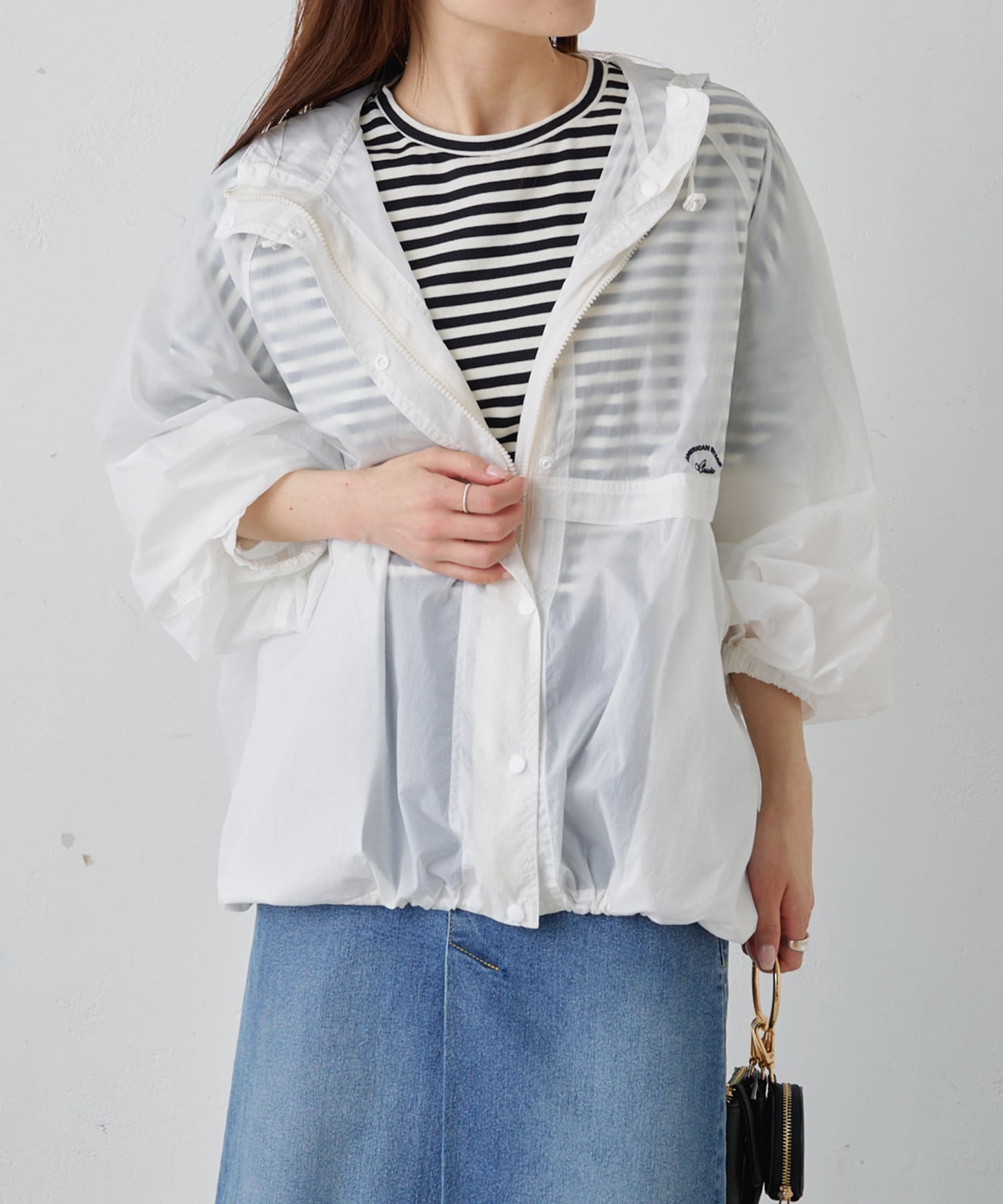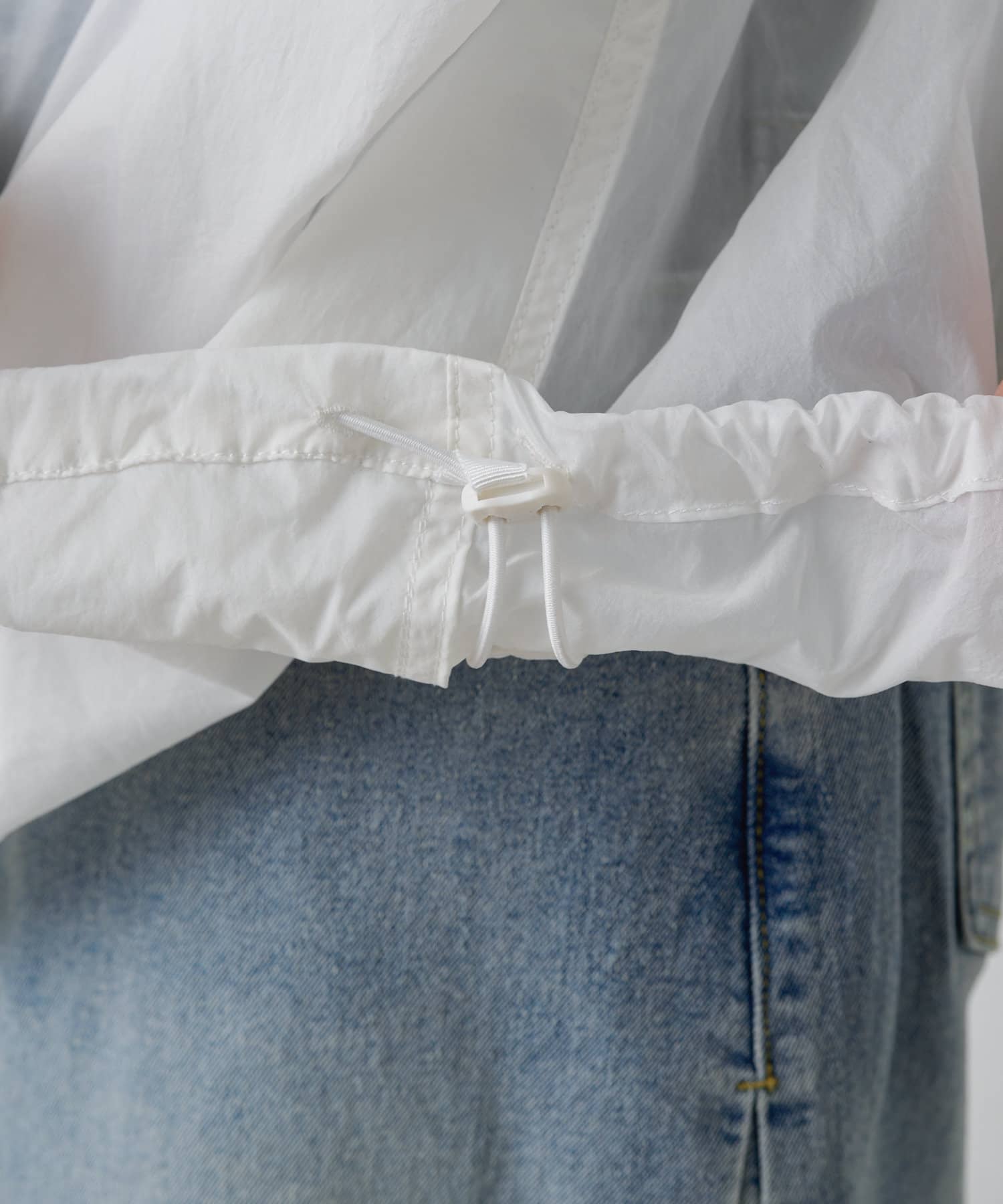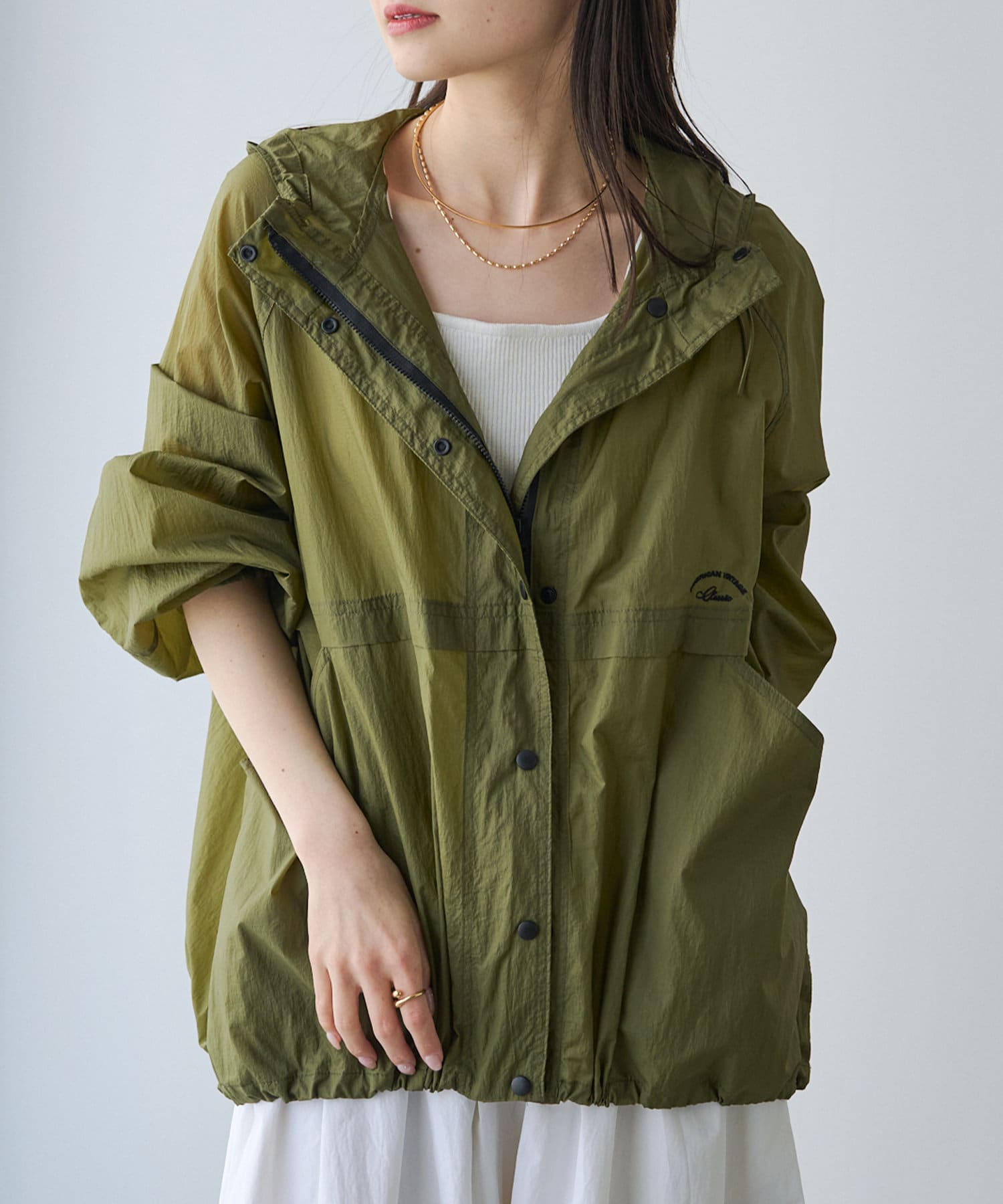 撥水機能付きの透け感のあるシアー素材。くたっとした柔らかな素材感で身体に程よく馴染みます。