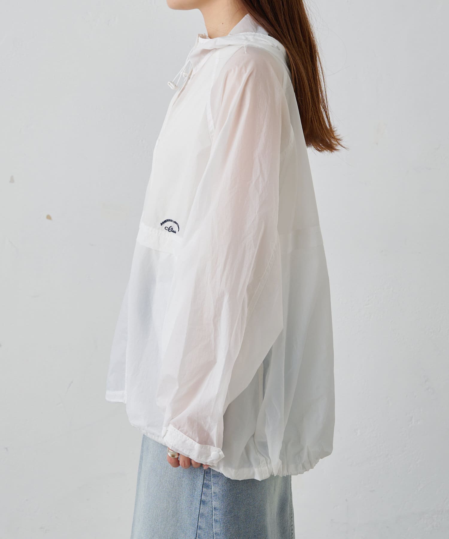撥水機能付きの透け感のあるシアー素材。くたっとした柔らかな素材感で身体に程よく馴染みます。