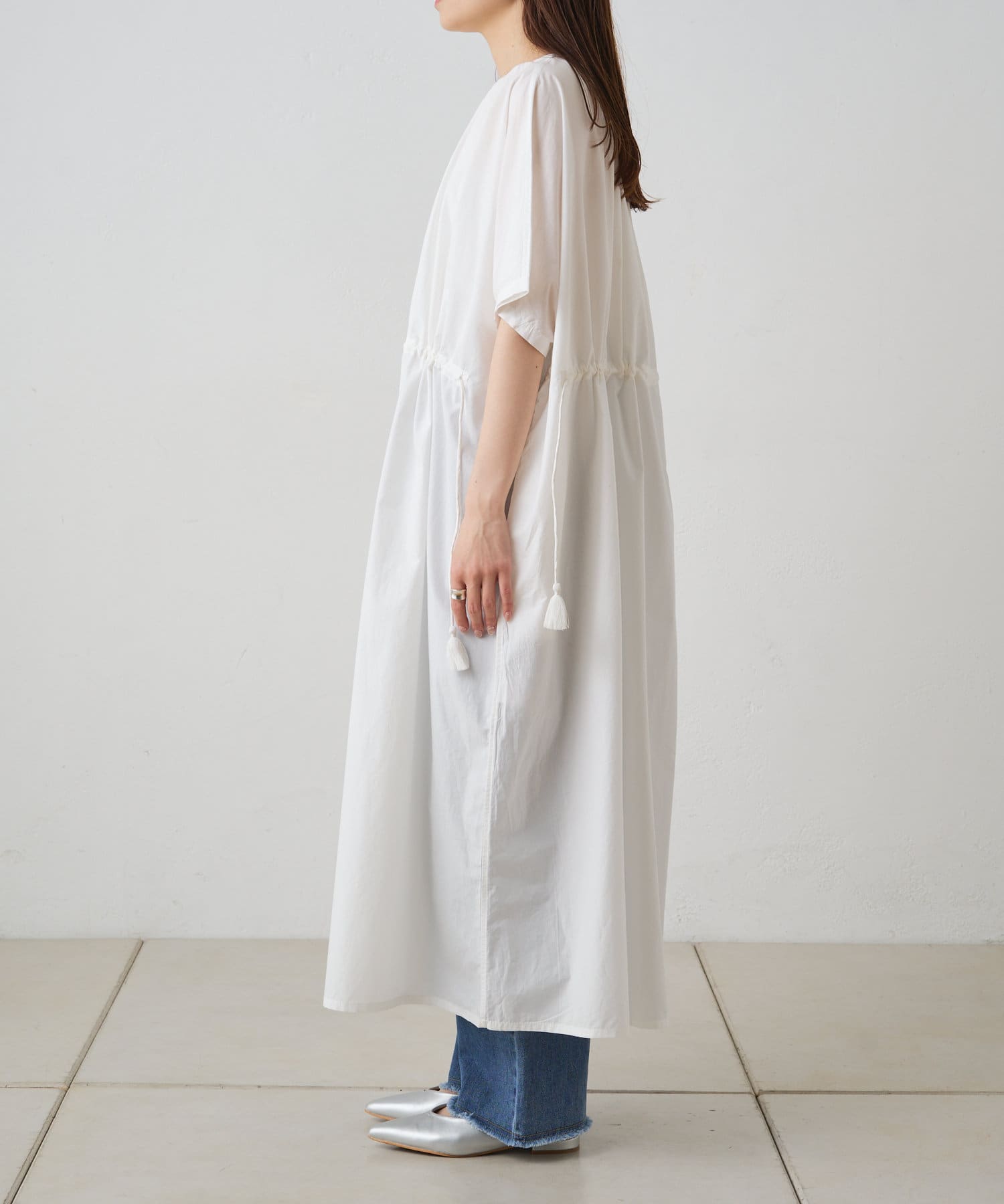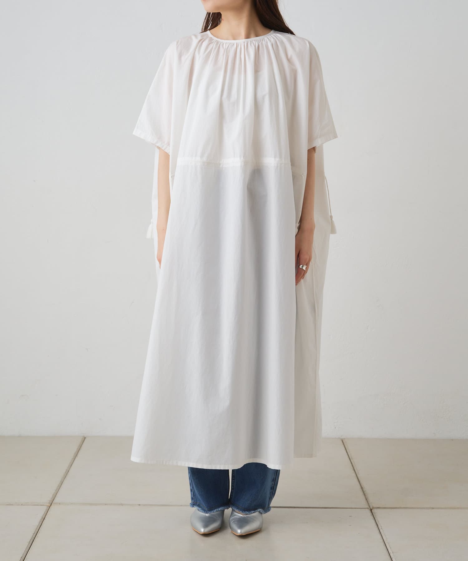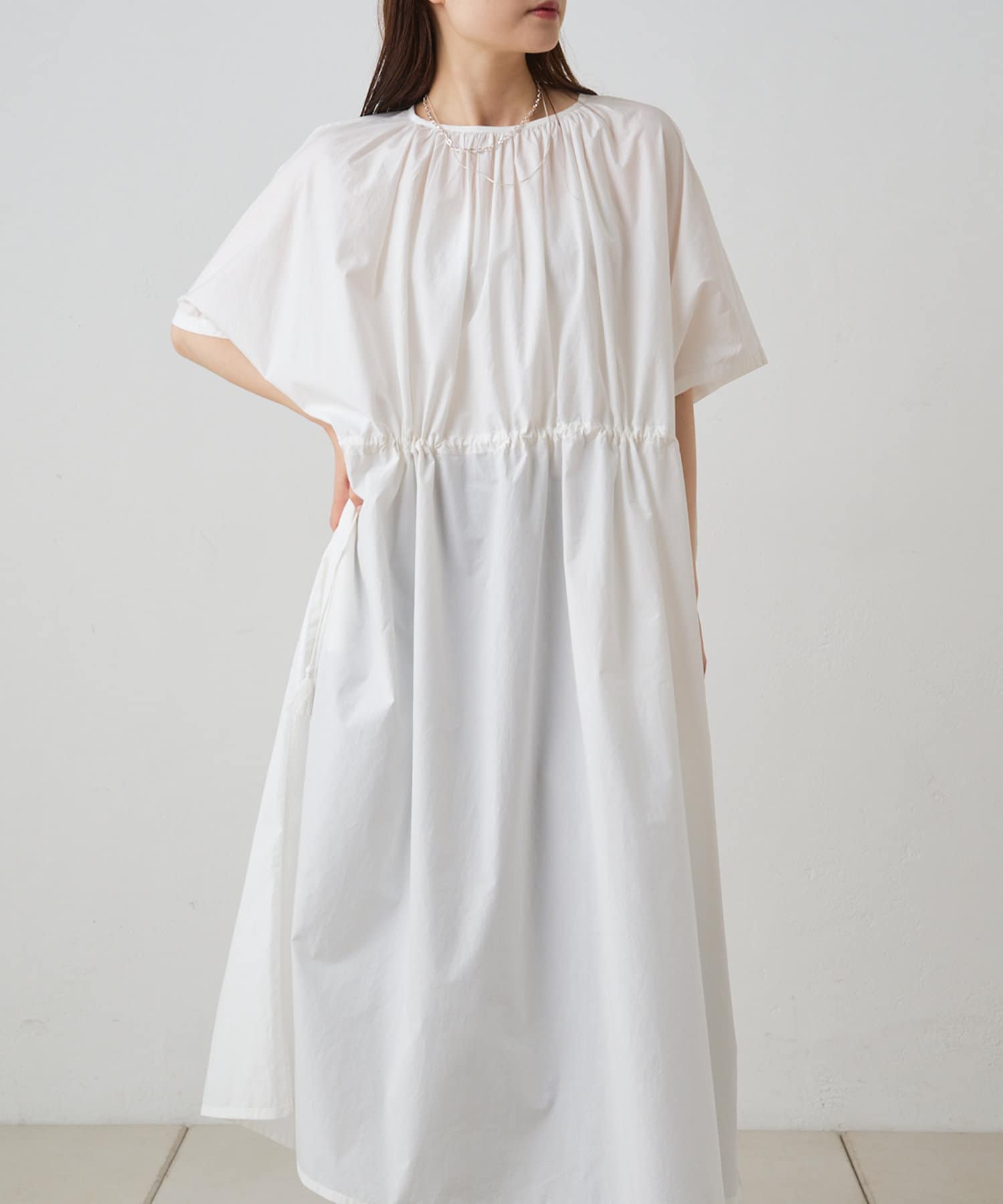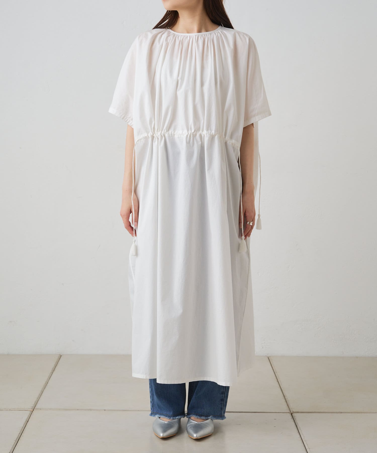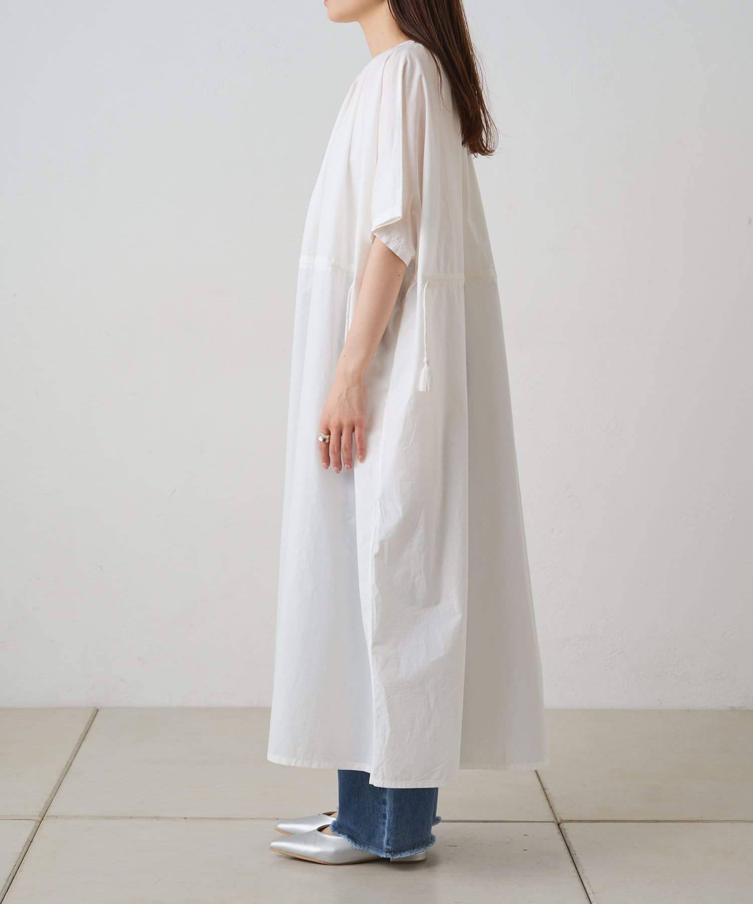 適度にハリのあるスーピマコットンを使用し、表情のあるドレープが楽しめるアジャストワンピース。