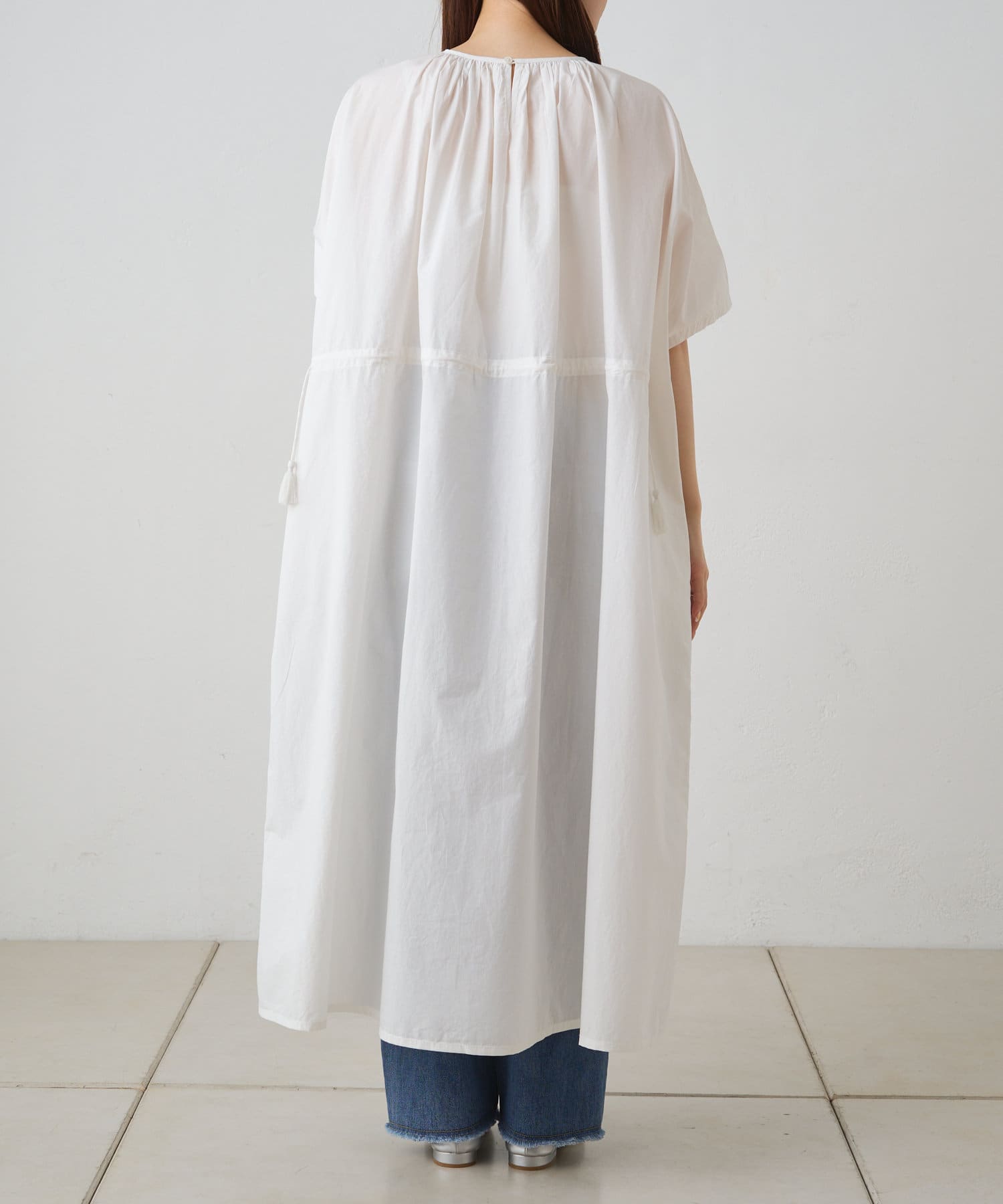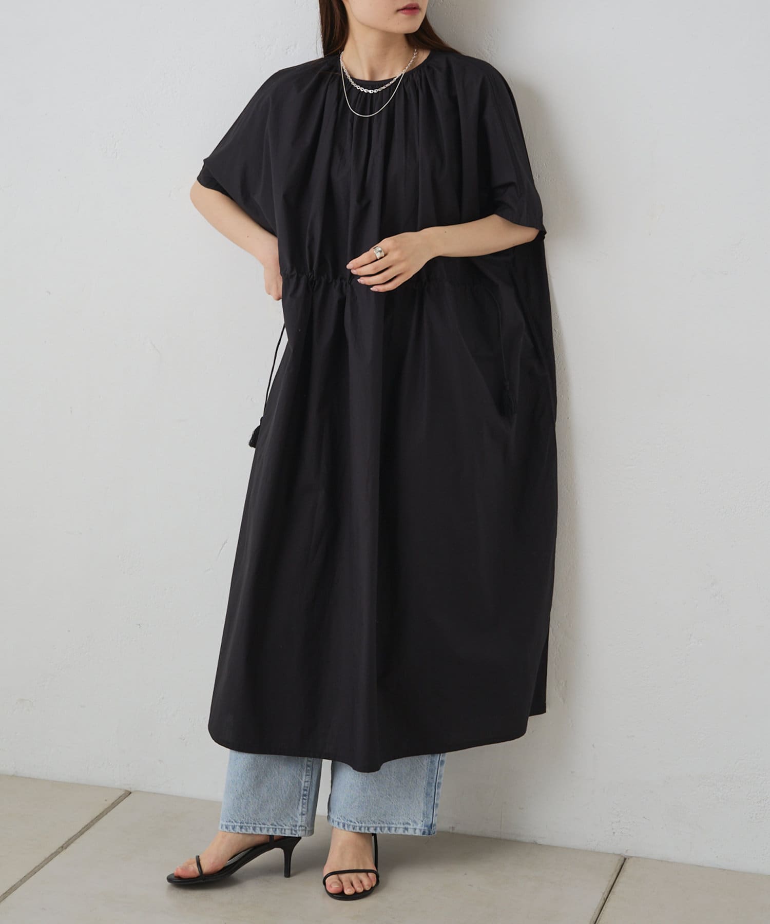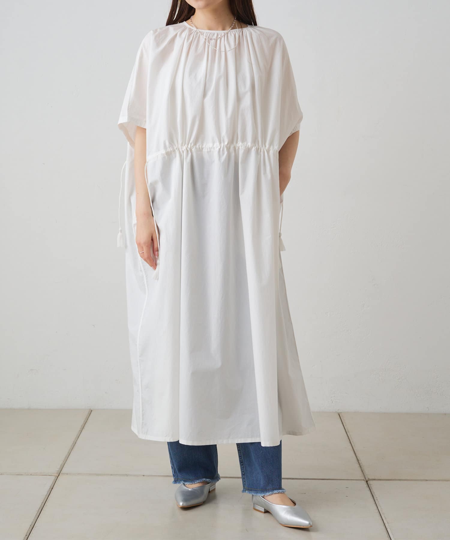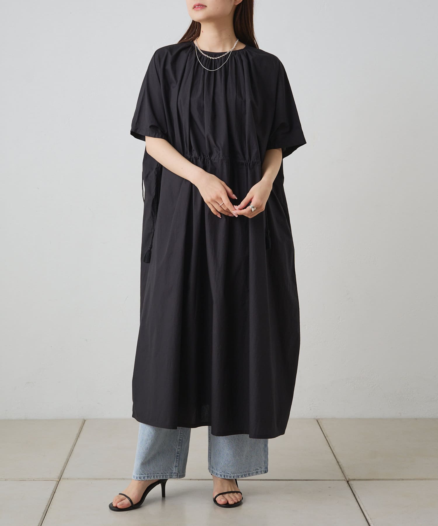 適度にハリのあるスーピマコットンを使用し、表情のあるドレープが楽しめるアジャストワンピース。