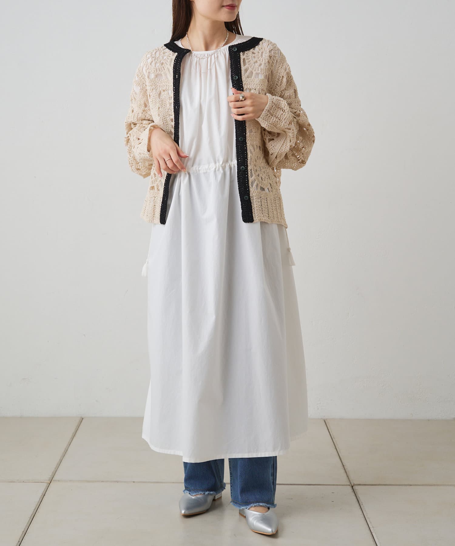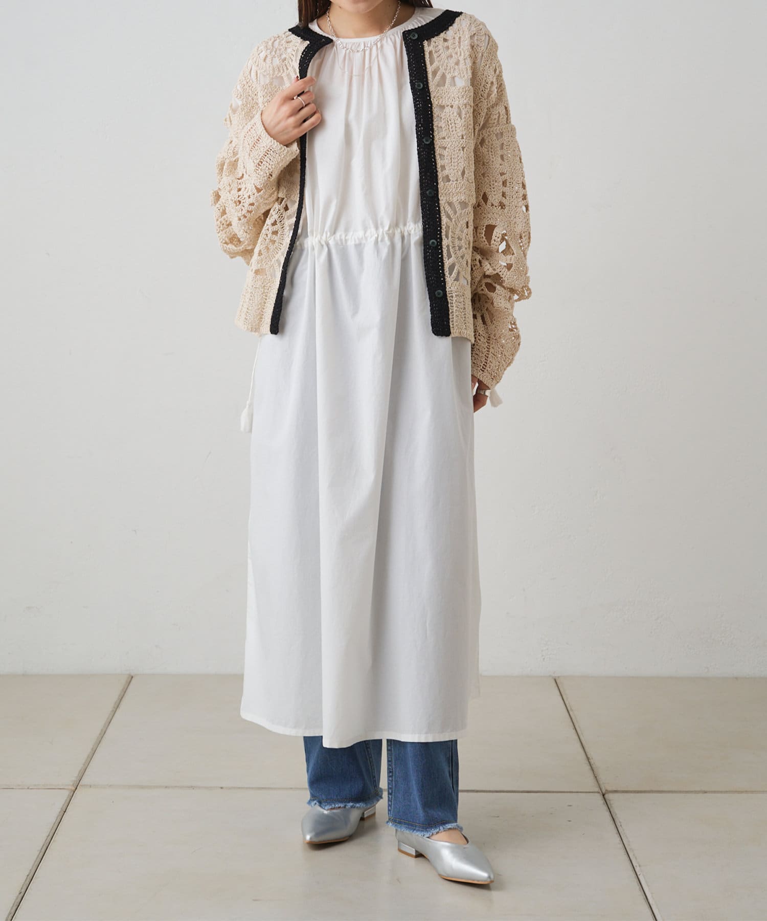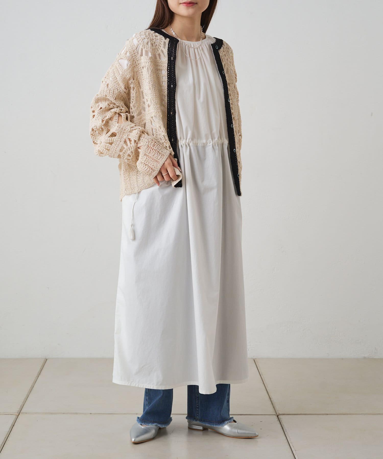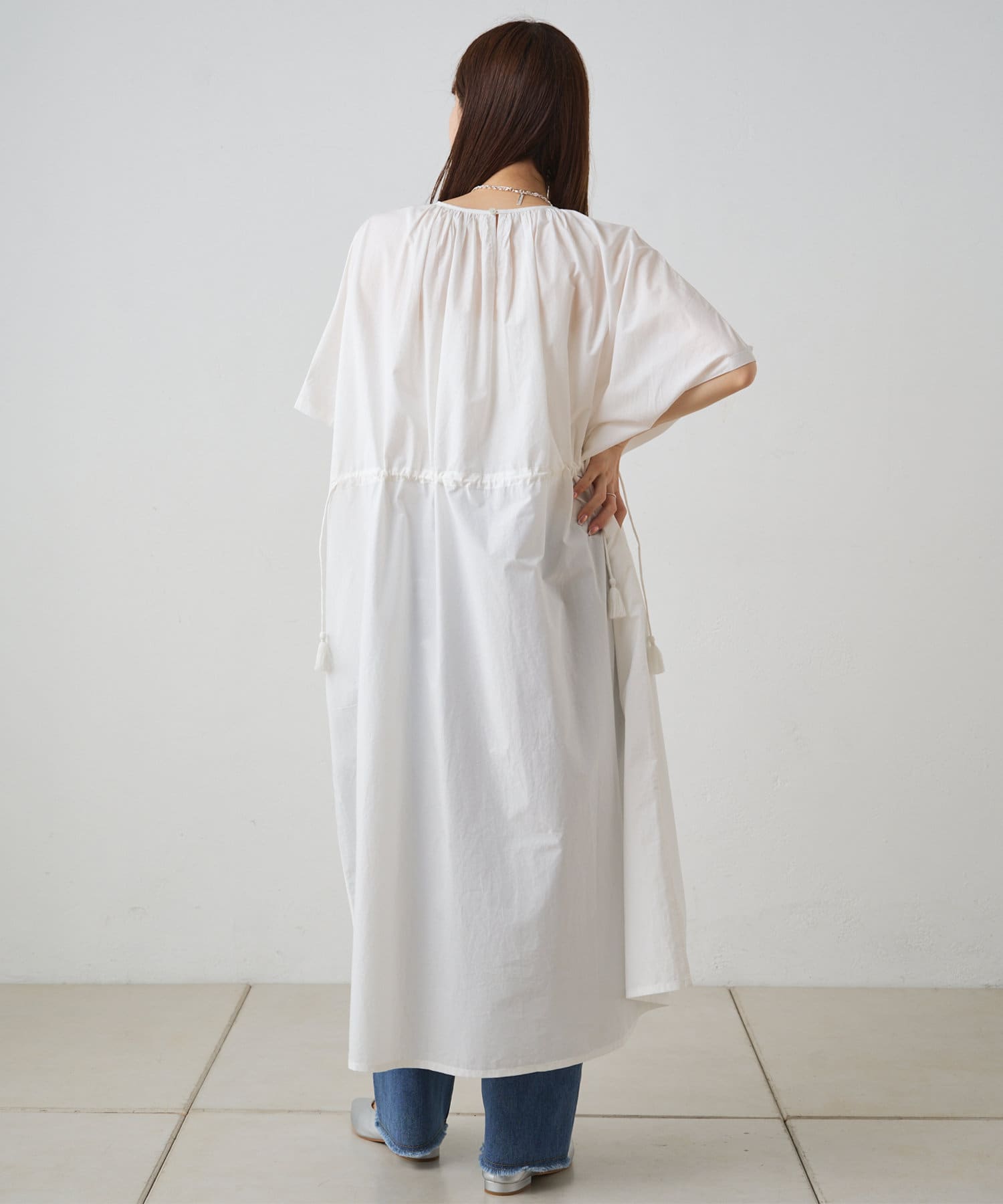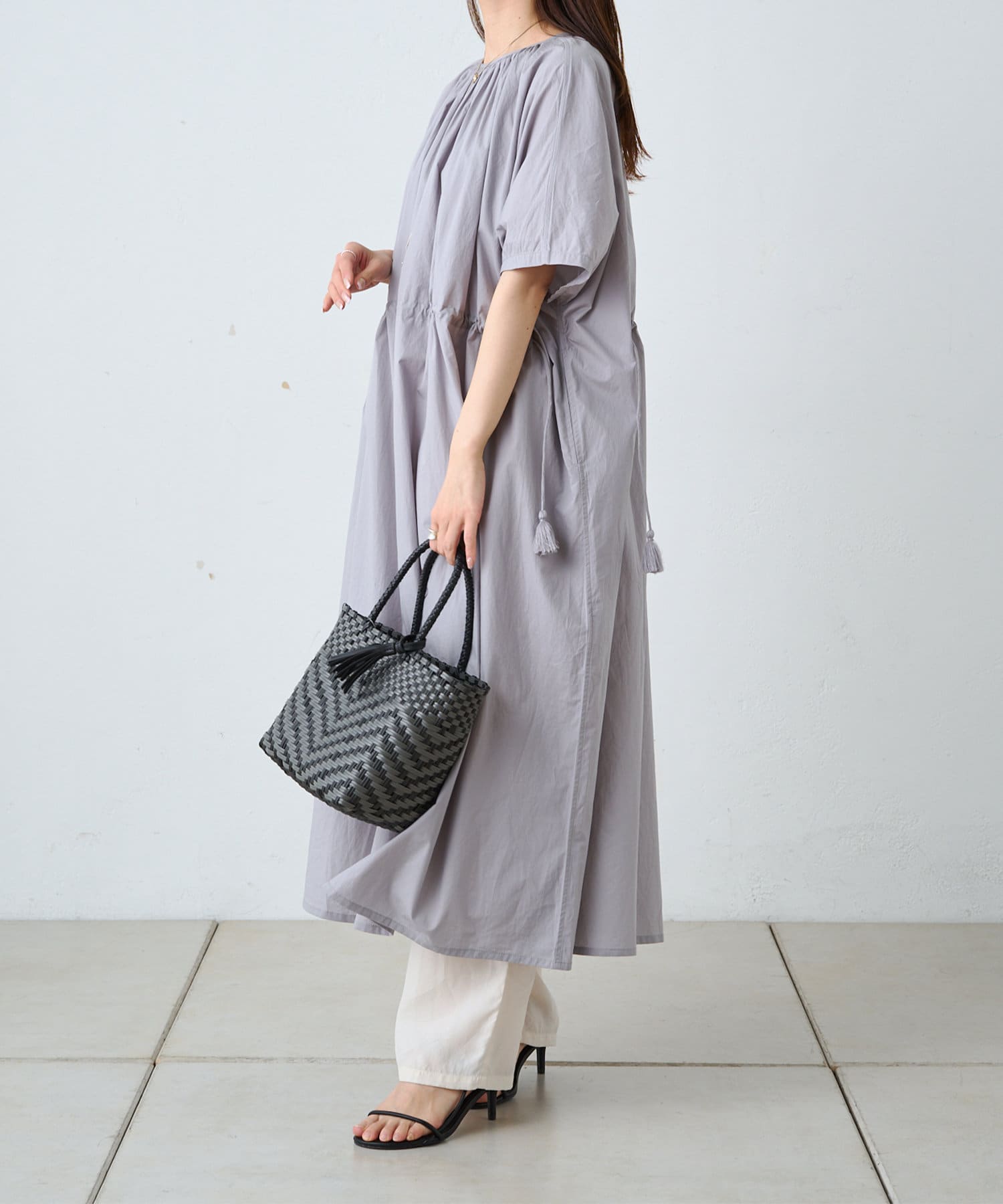 適度にハリのあるスーピマコットンを使用し、表情のあるドレープが楽しめるアジャストワンピース。