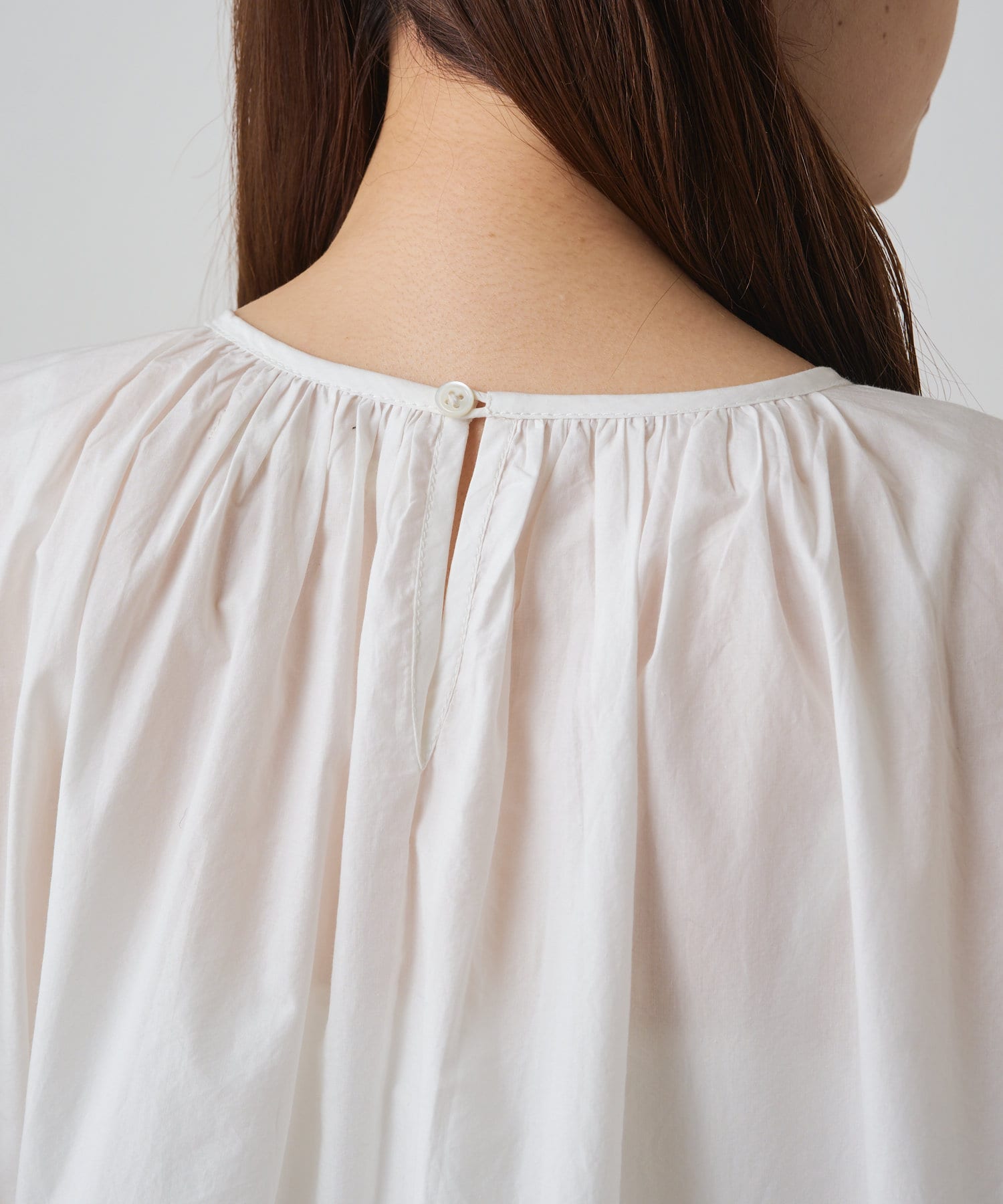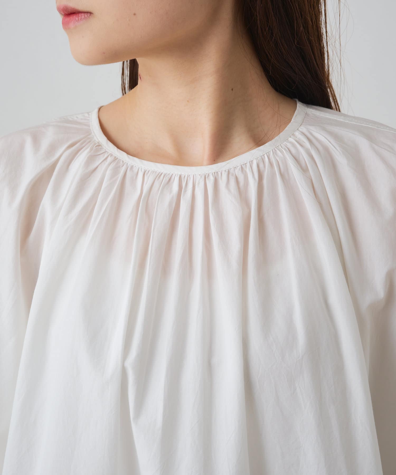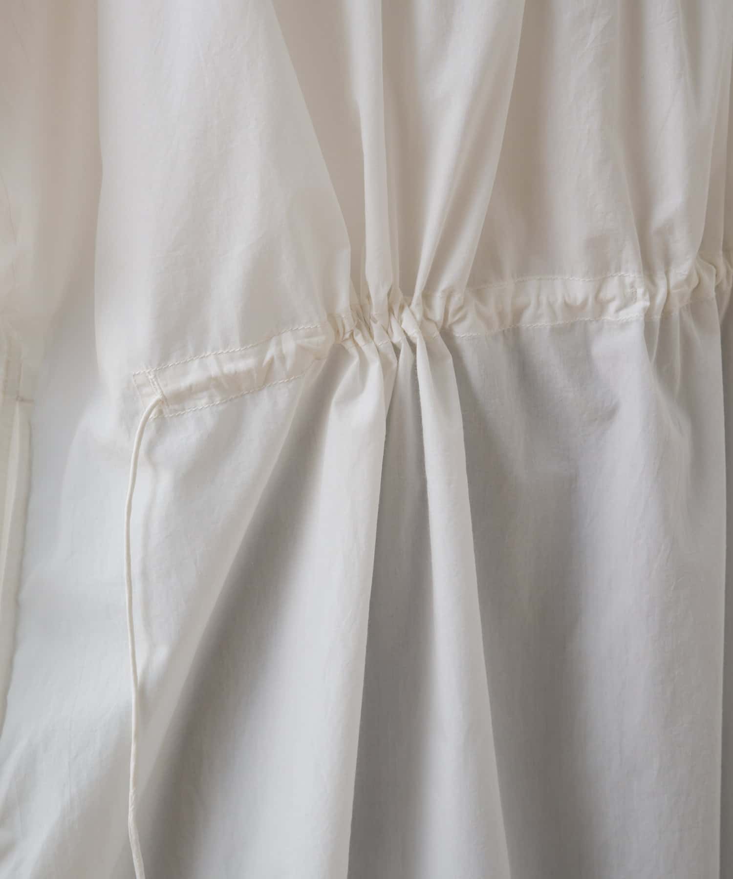 ウエストライン前後に紐を通し、お好みのギャザー分量に調整することでシルエット変化が楽しめます。