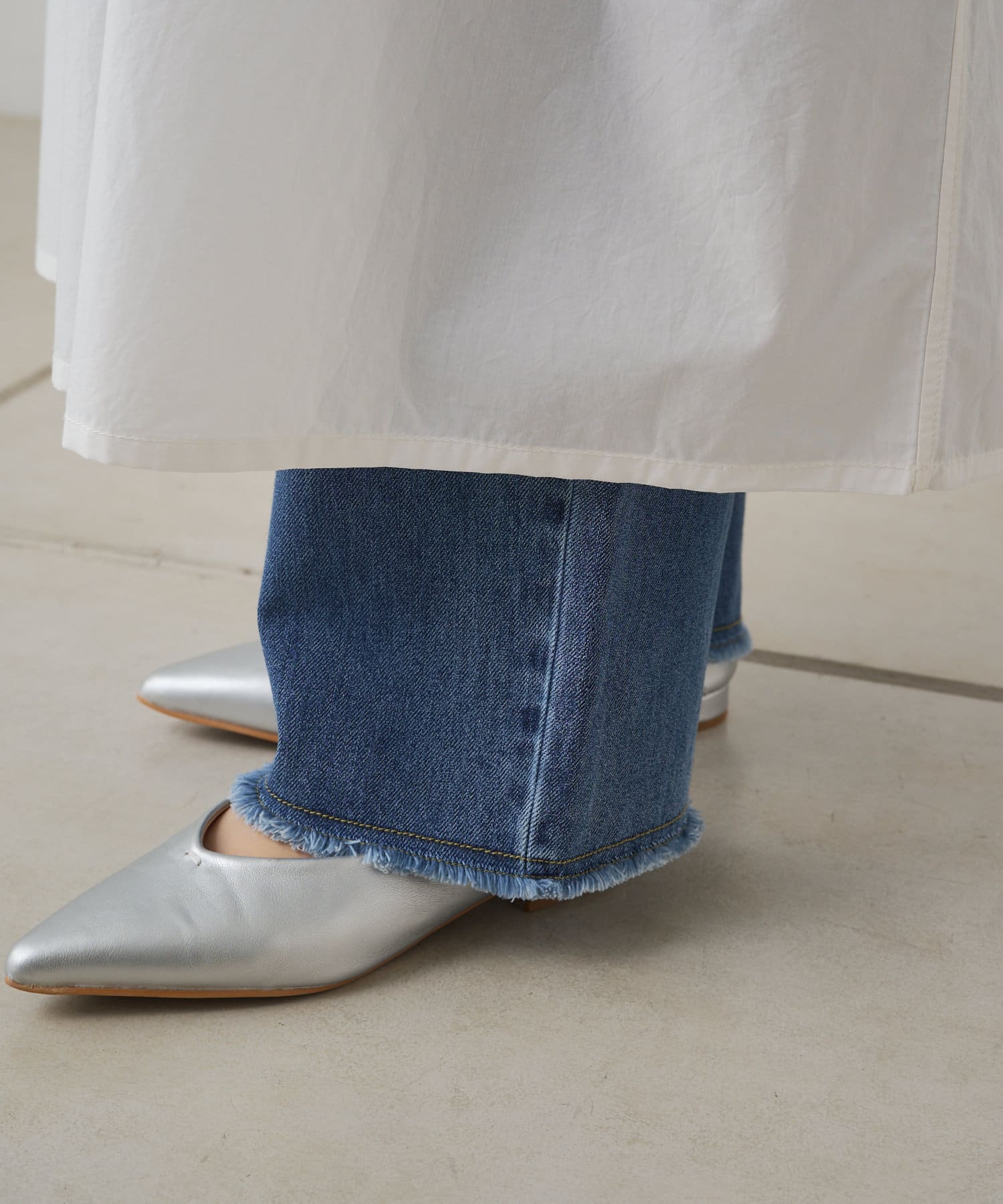 足元にはスニーカーを合わせたカジュアルなスタイルはもちろん、華奢なミュールサンダルを合わせて女性らしい雰囲気も素敵です。