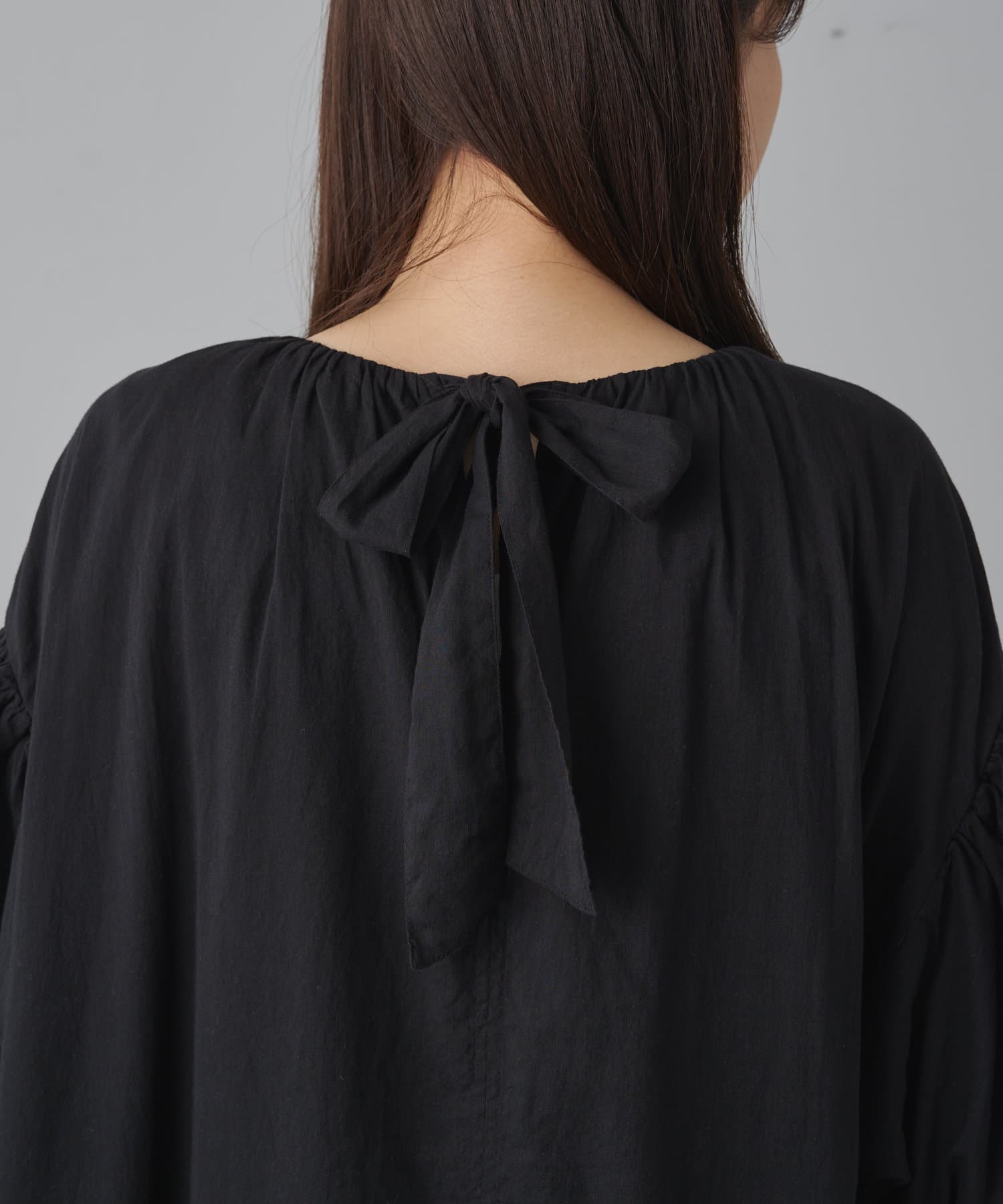大きくボリュームを出したバルーン袖が女性らしさをプラスしながら、気になる二の腕周りもしっかりカバー。