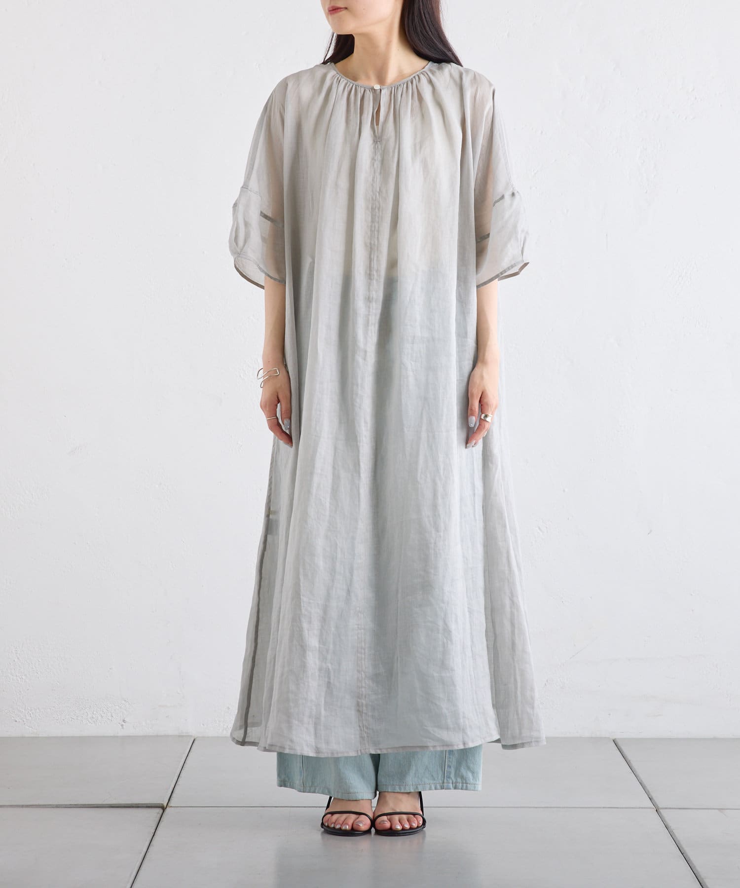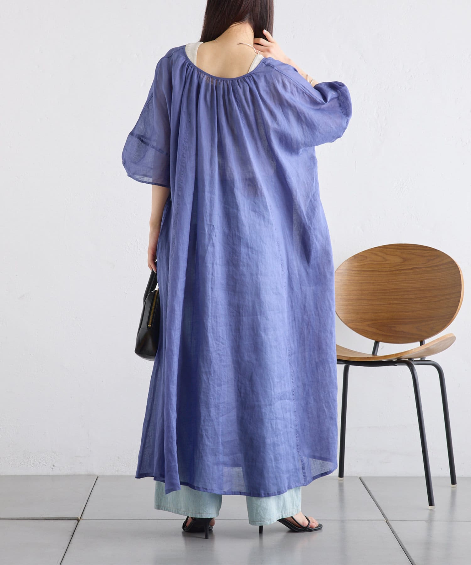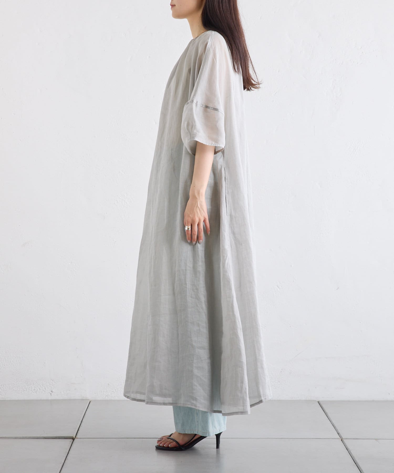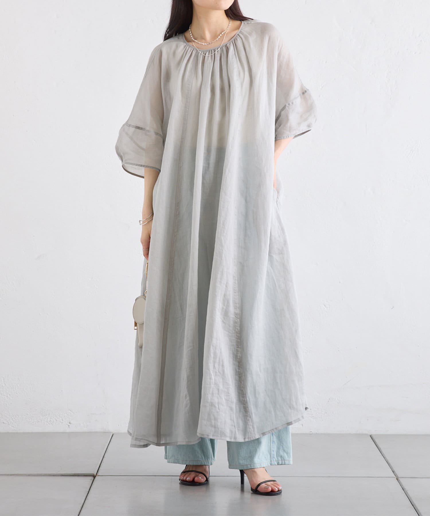 ラミーリネン独特の風合いと透け感が魅力のワンピース。
