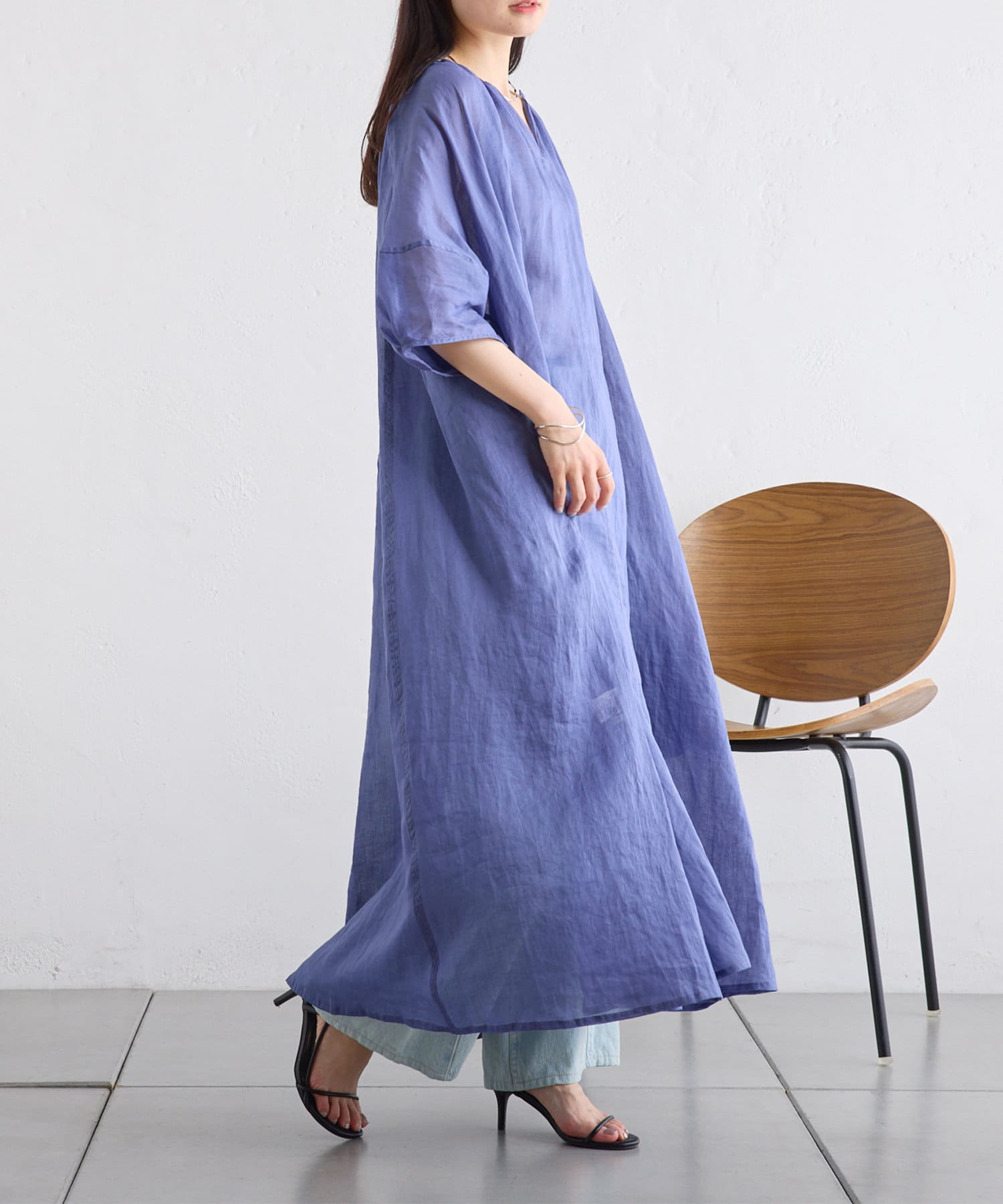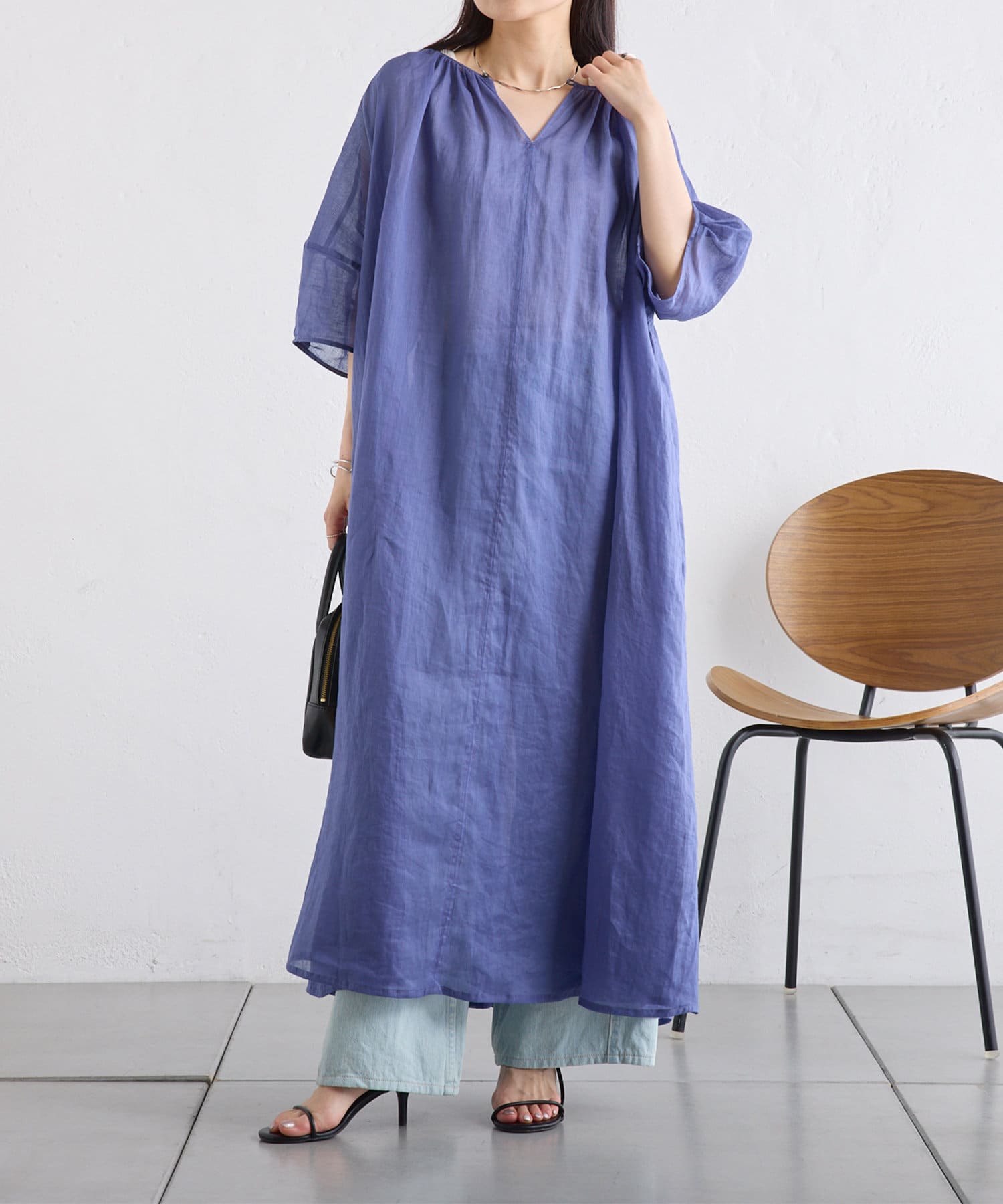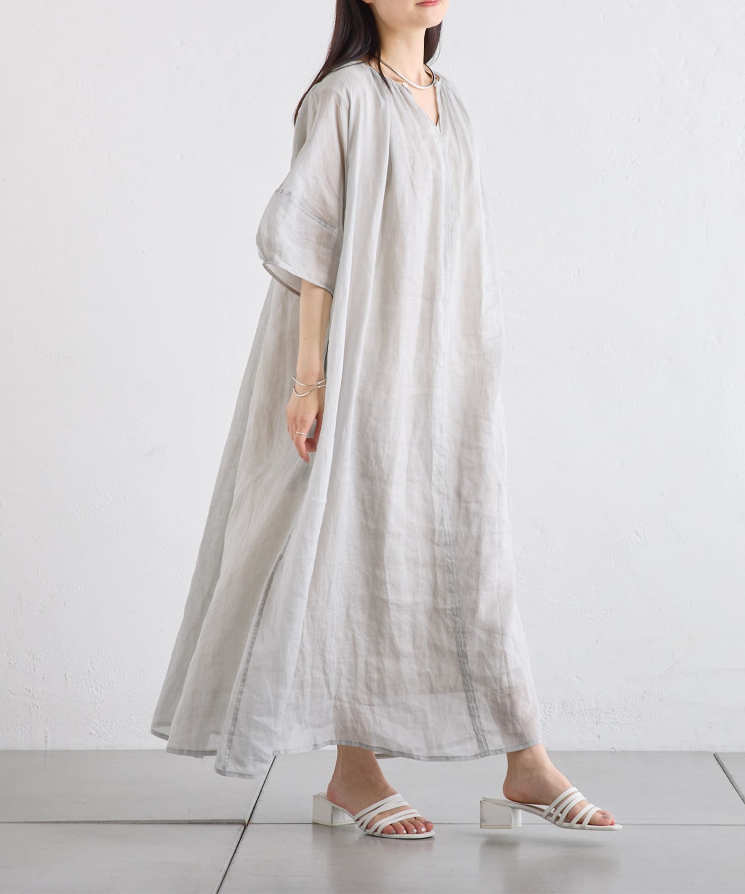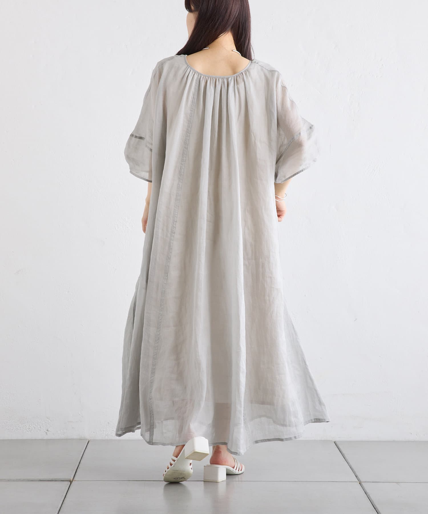 ラミーリネン独特の風合いと透け感が魅力のワンピース。