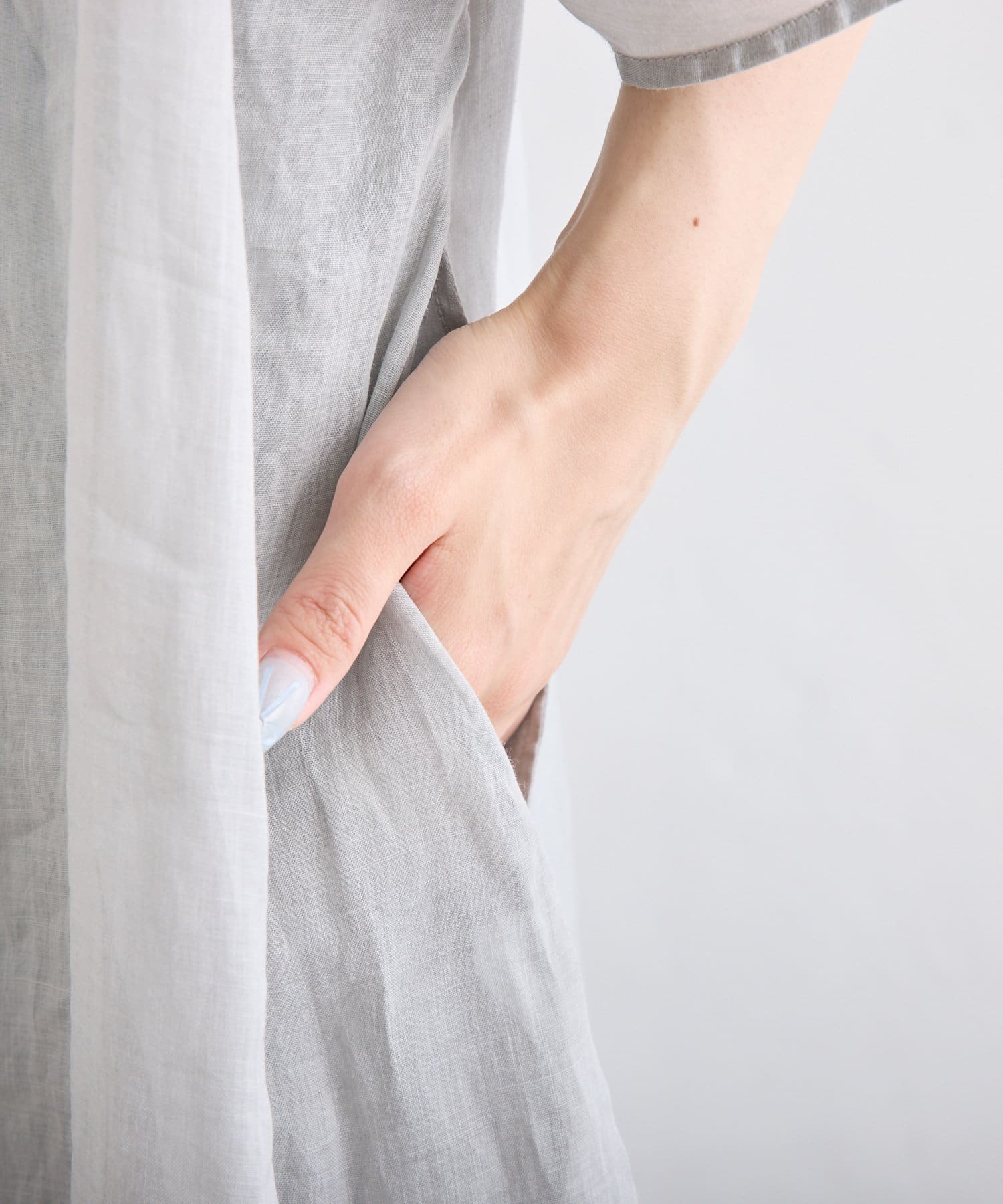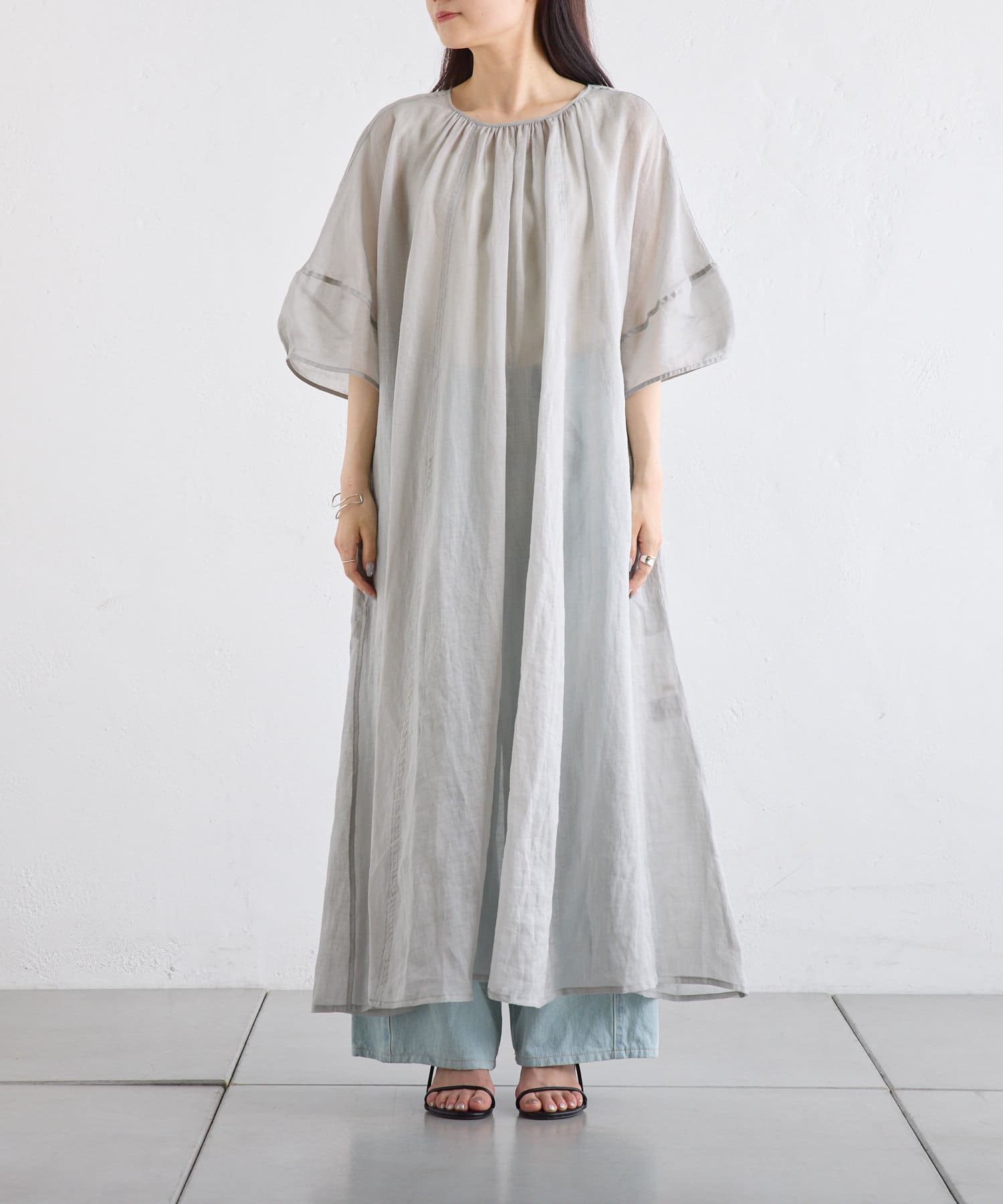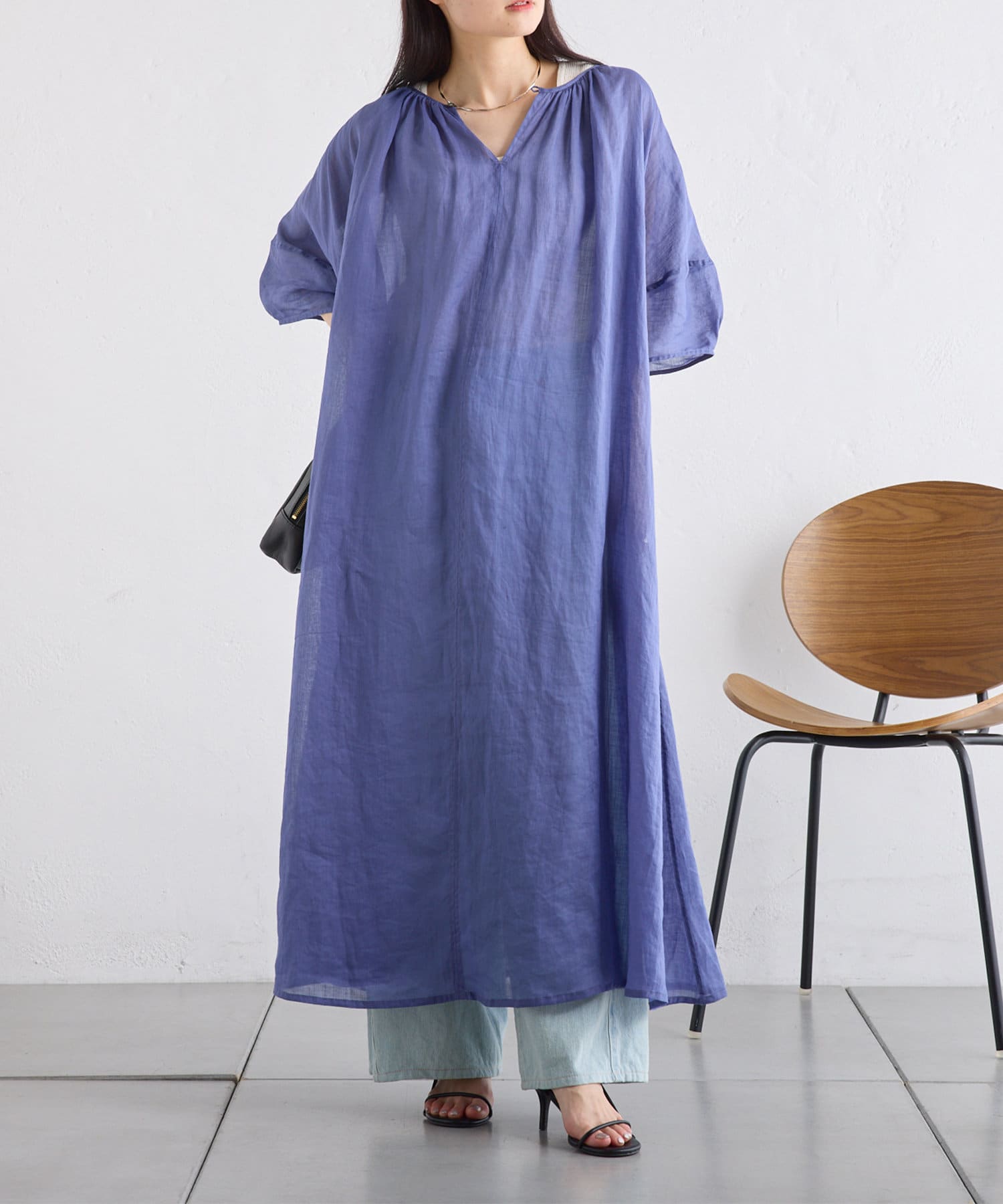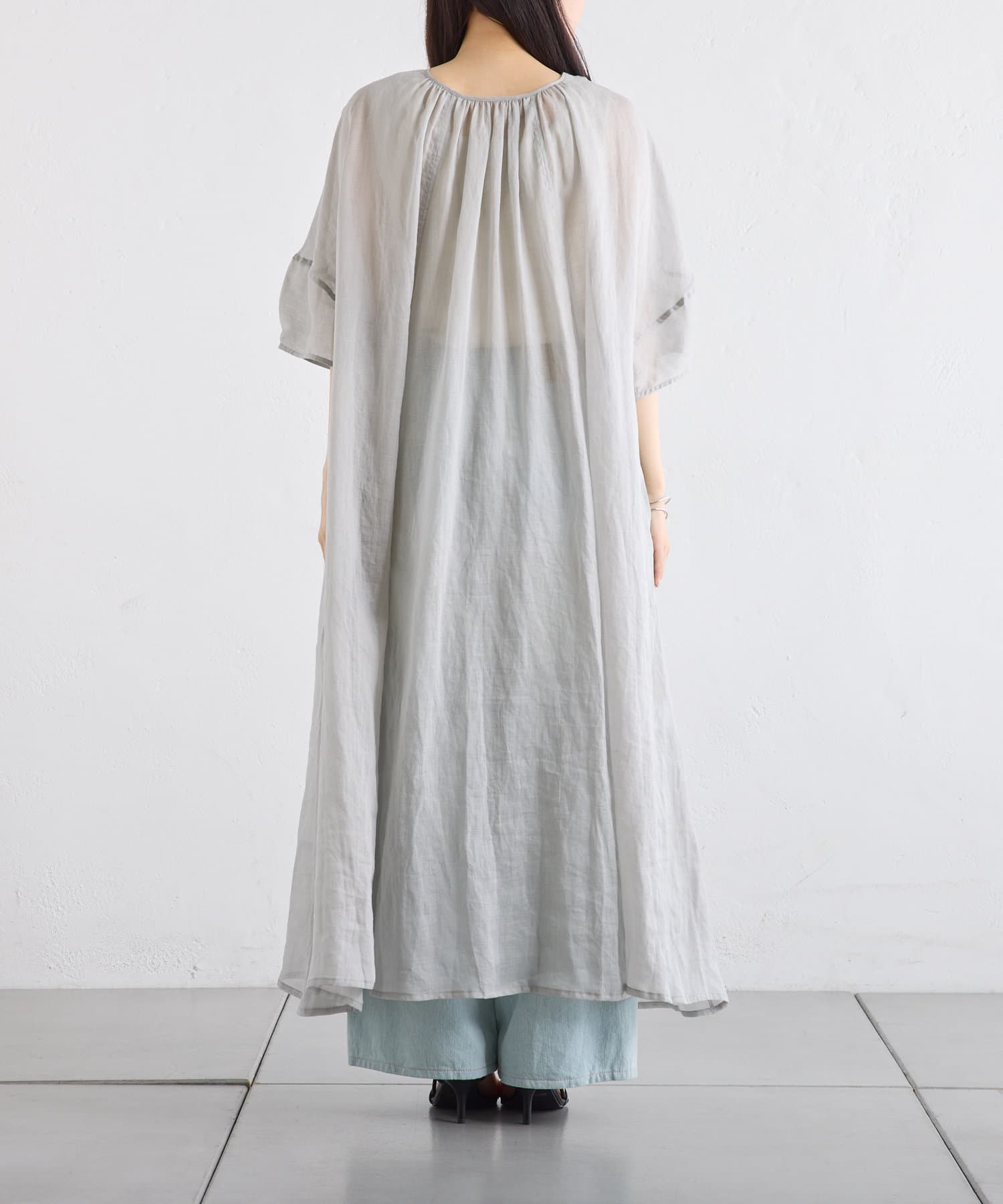 ラミーリネン独特の風合いと透け感が魅力のワンピース。