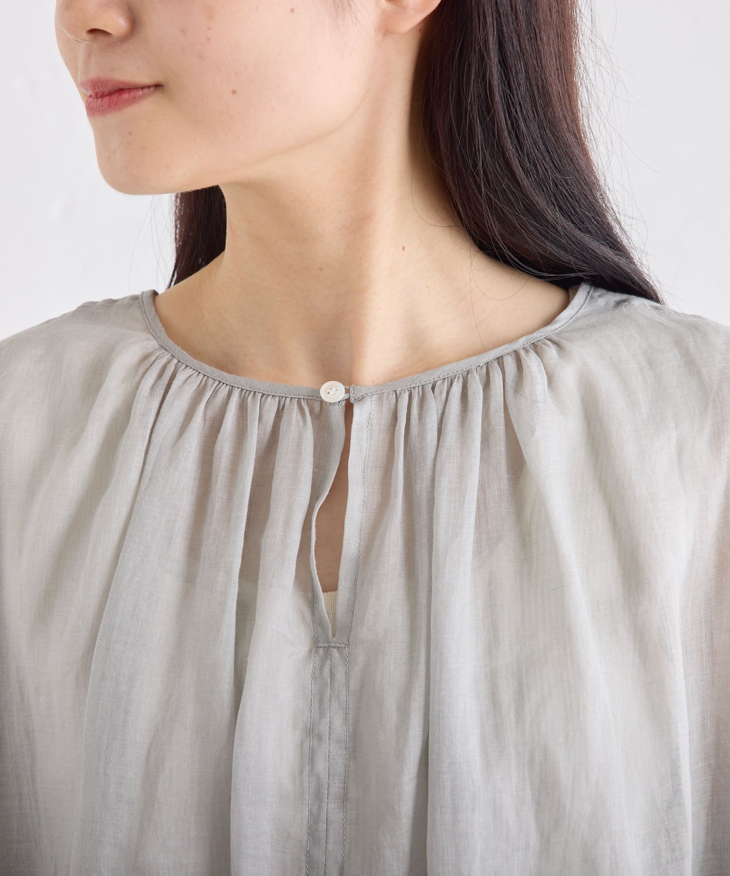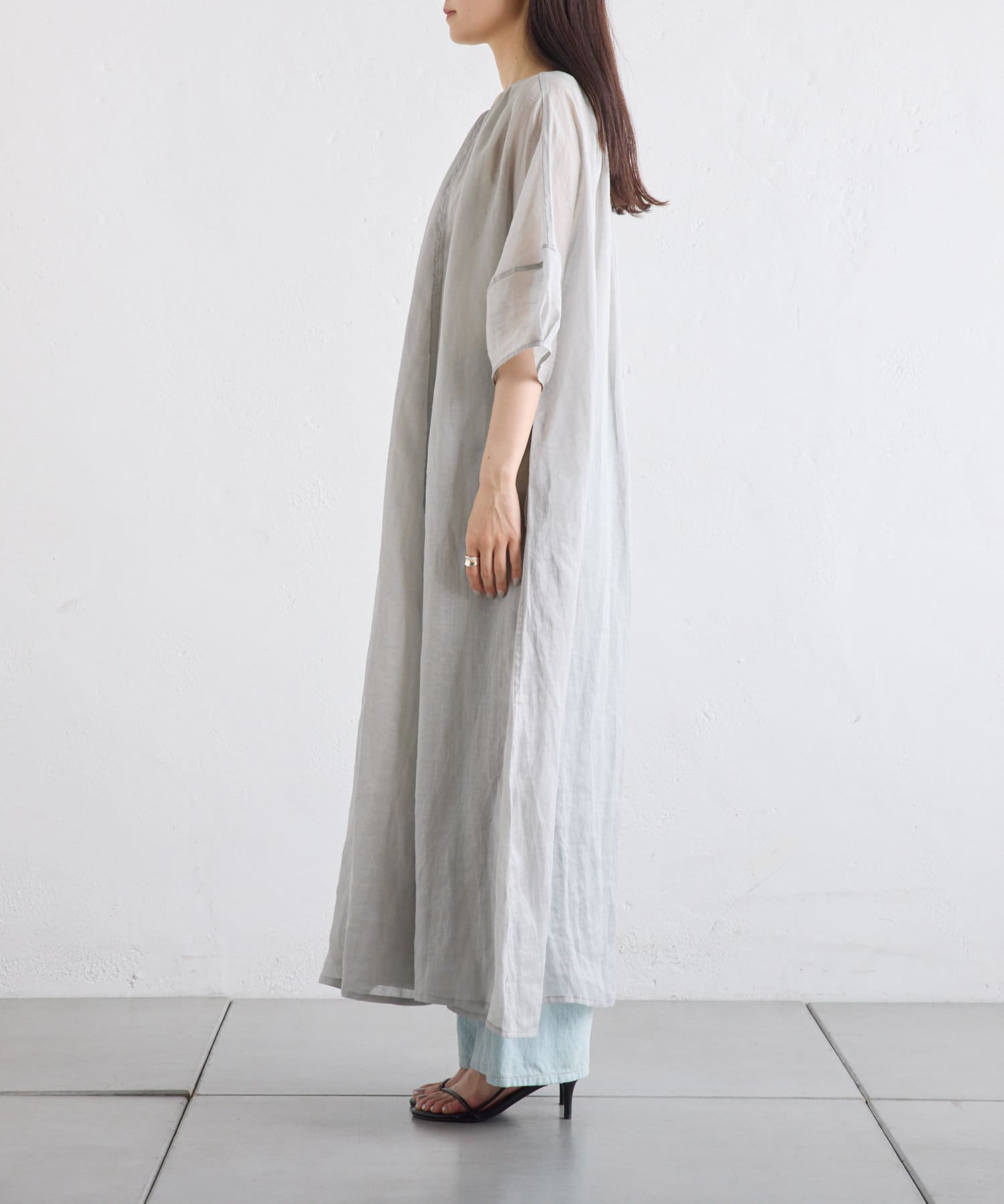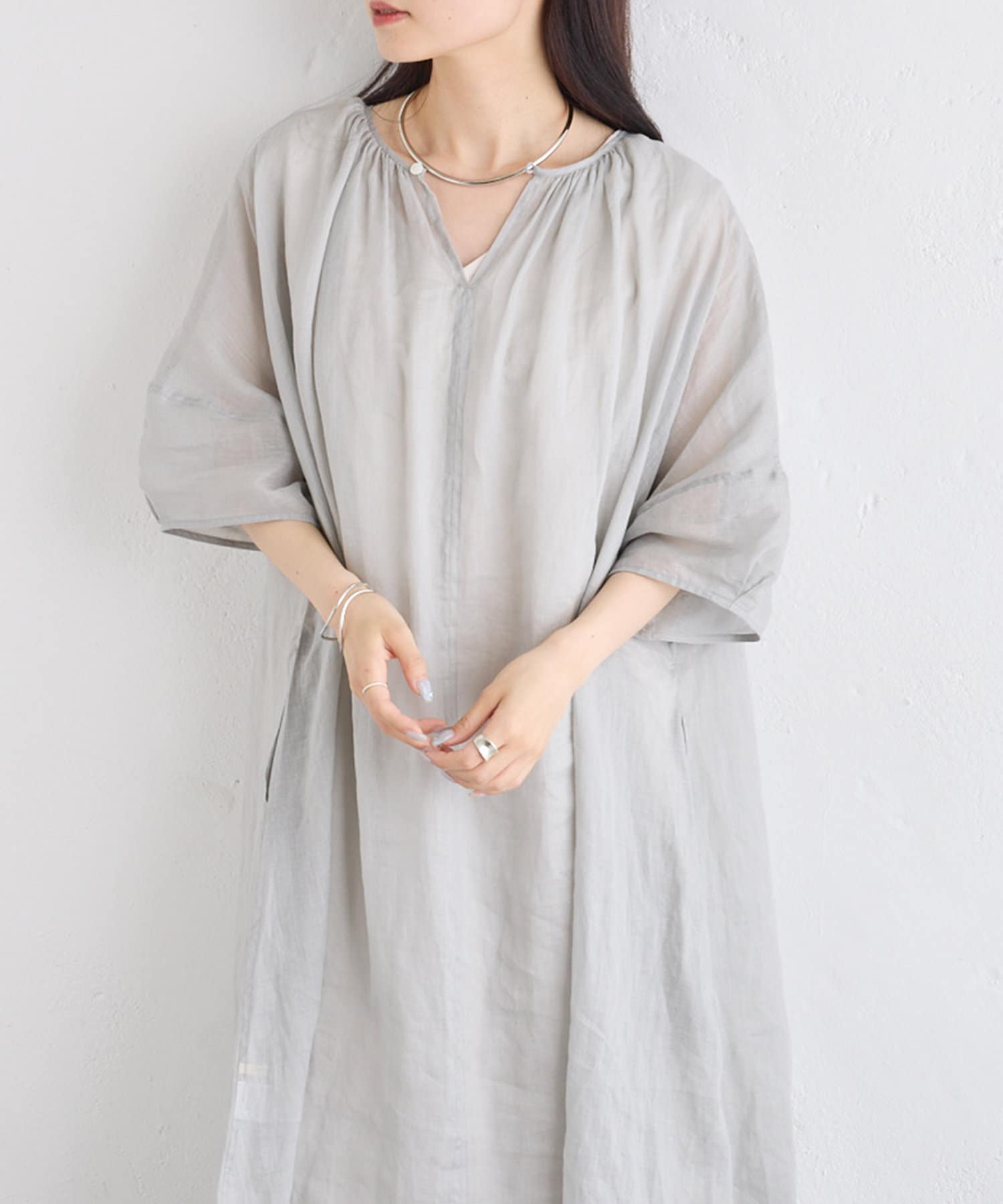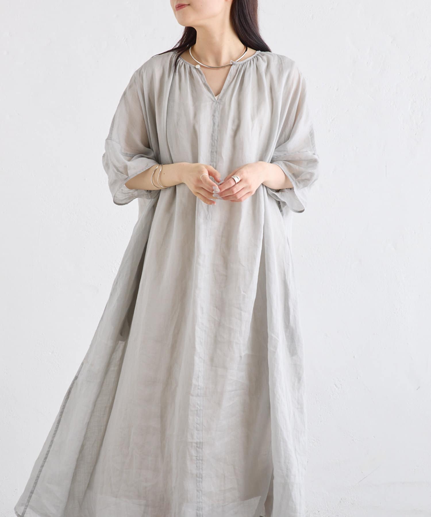 ラミーリネン独特の風合いと透け感が魅力のワンピース。