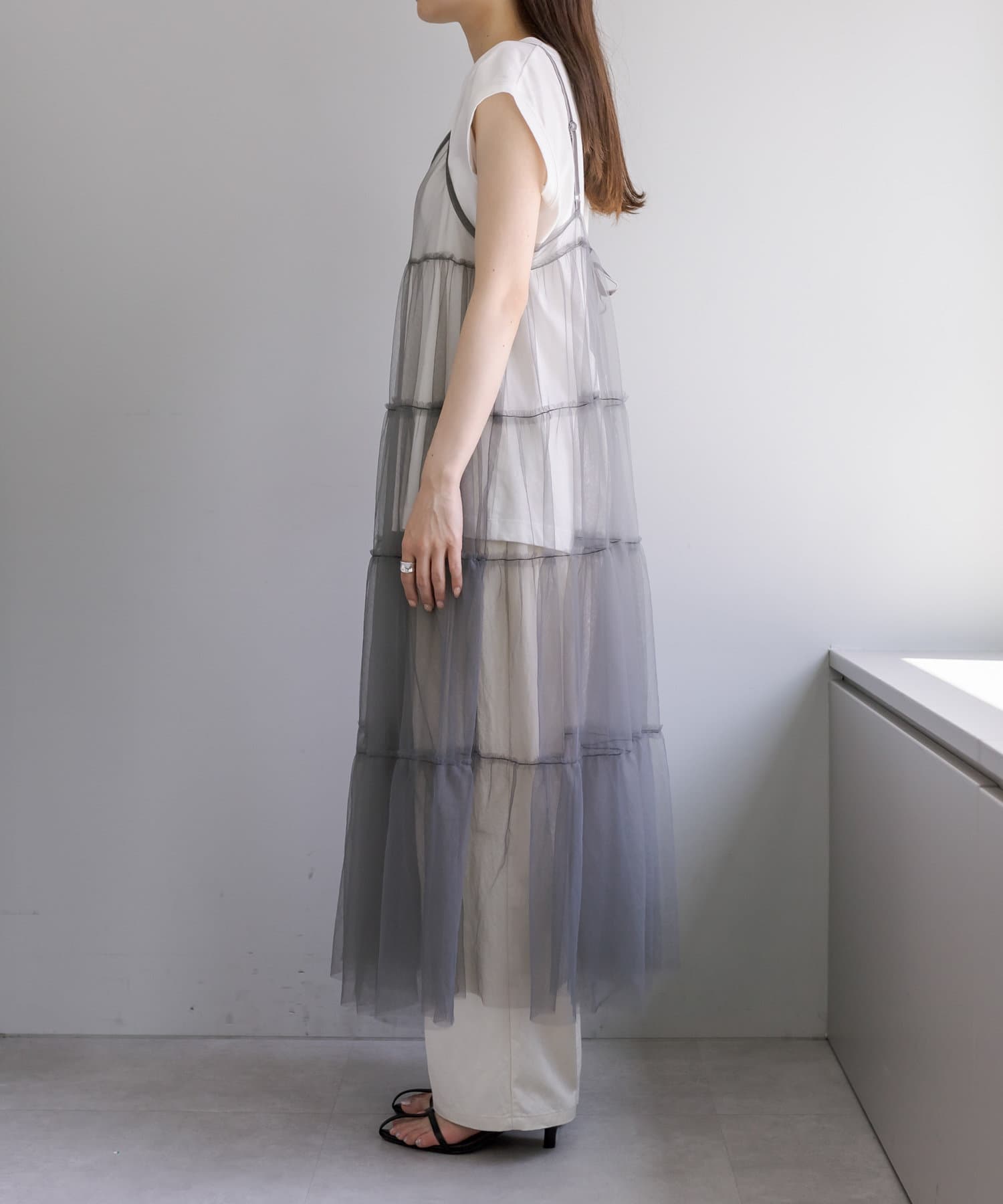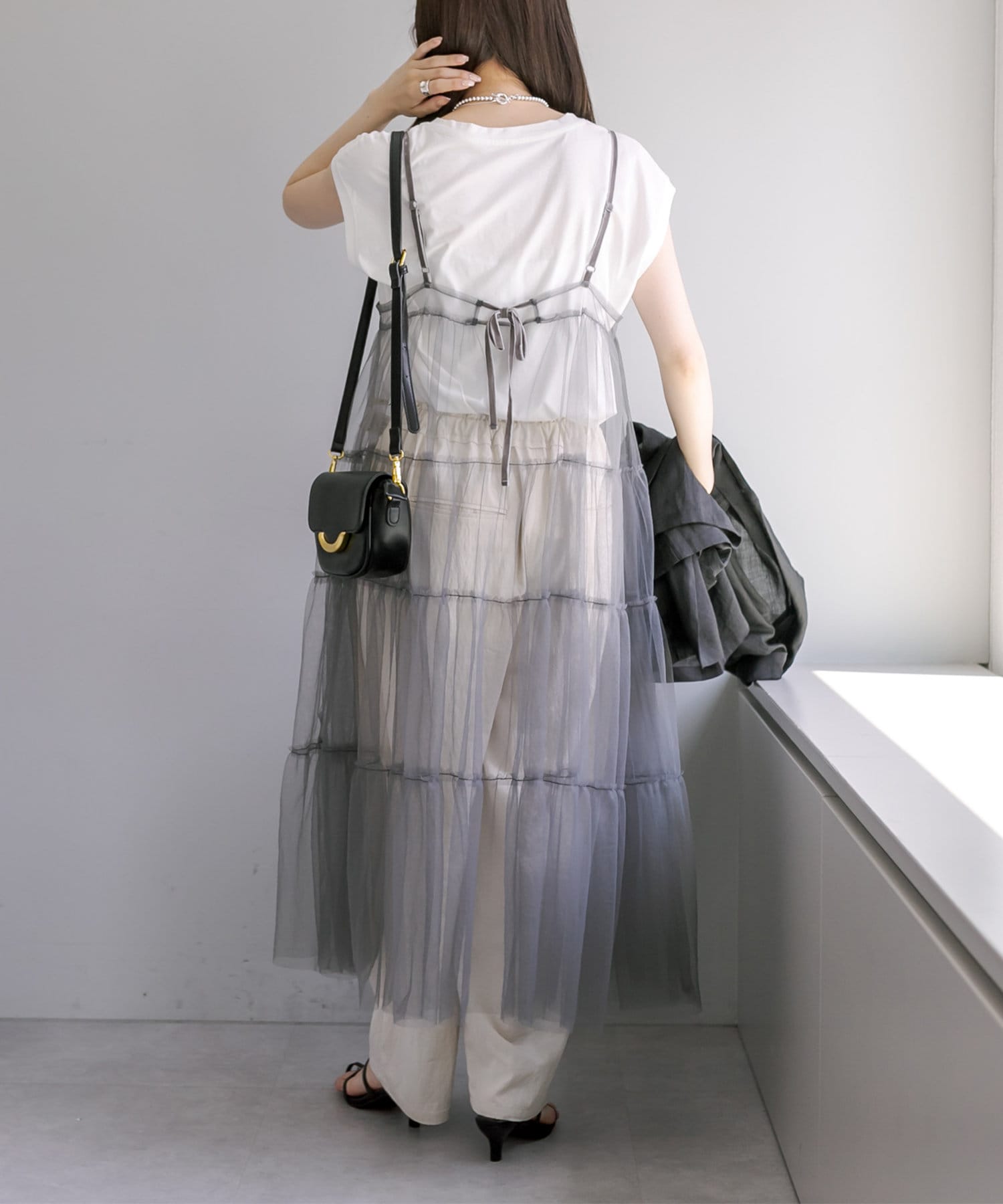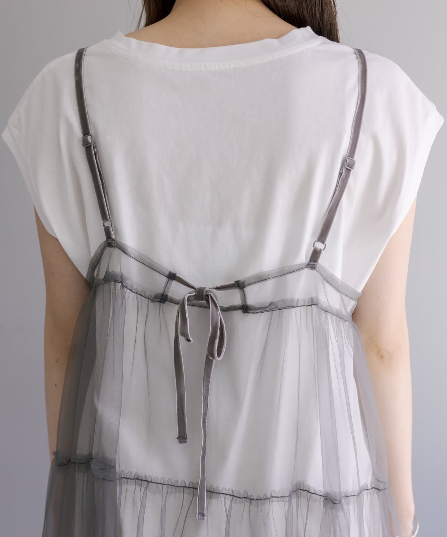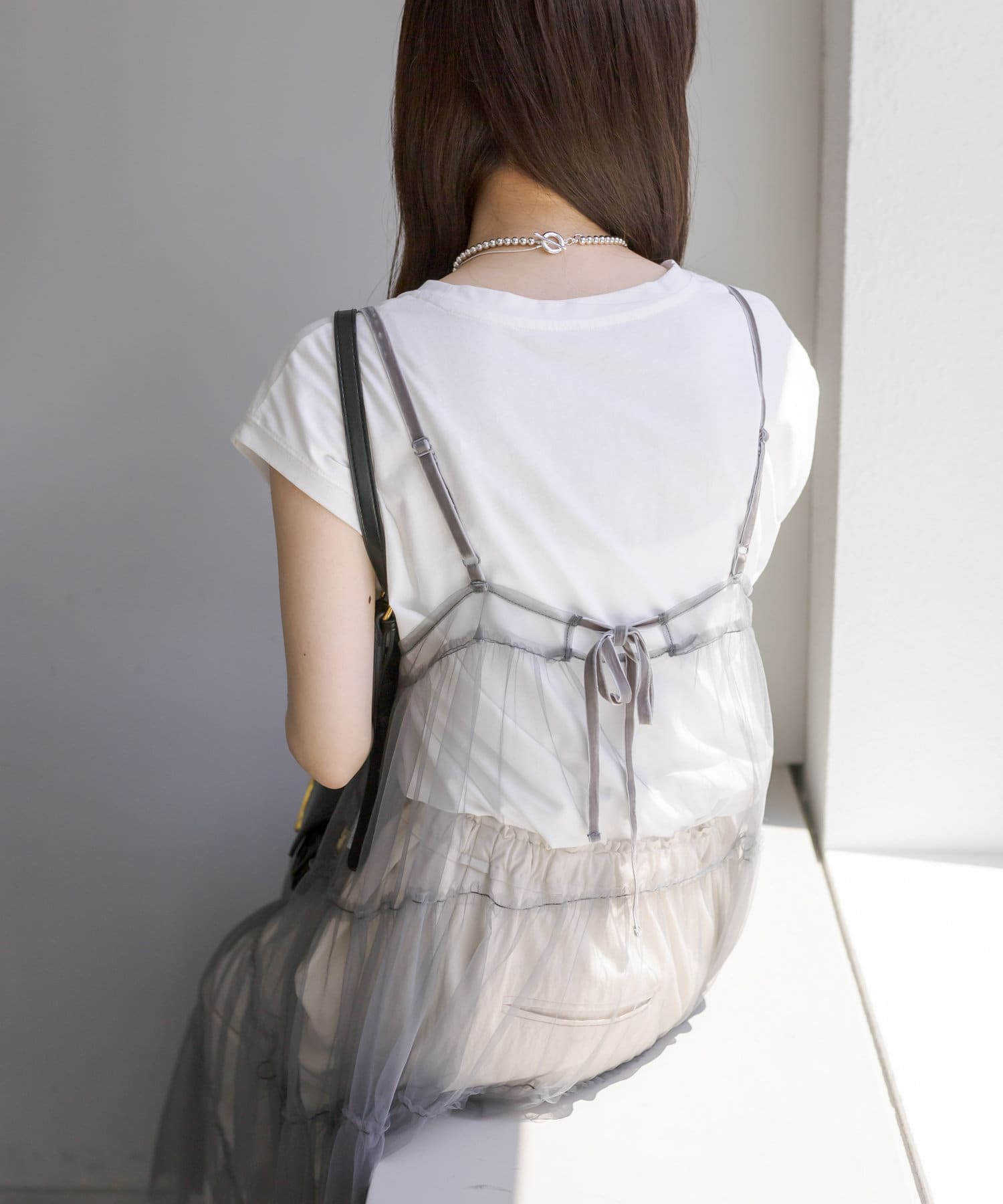 トレンド感溢れる柔らかいチュール素材のシアーキャミワンピース。