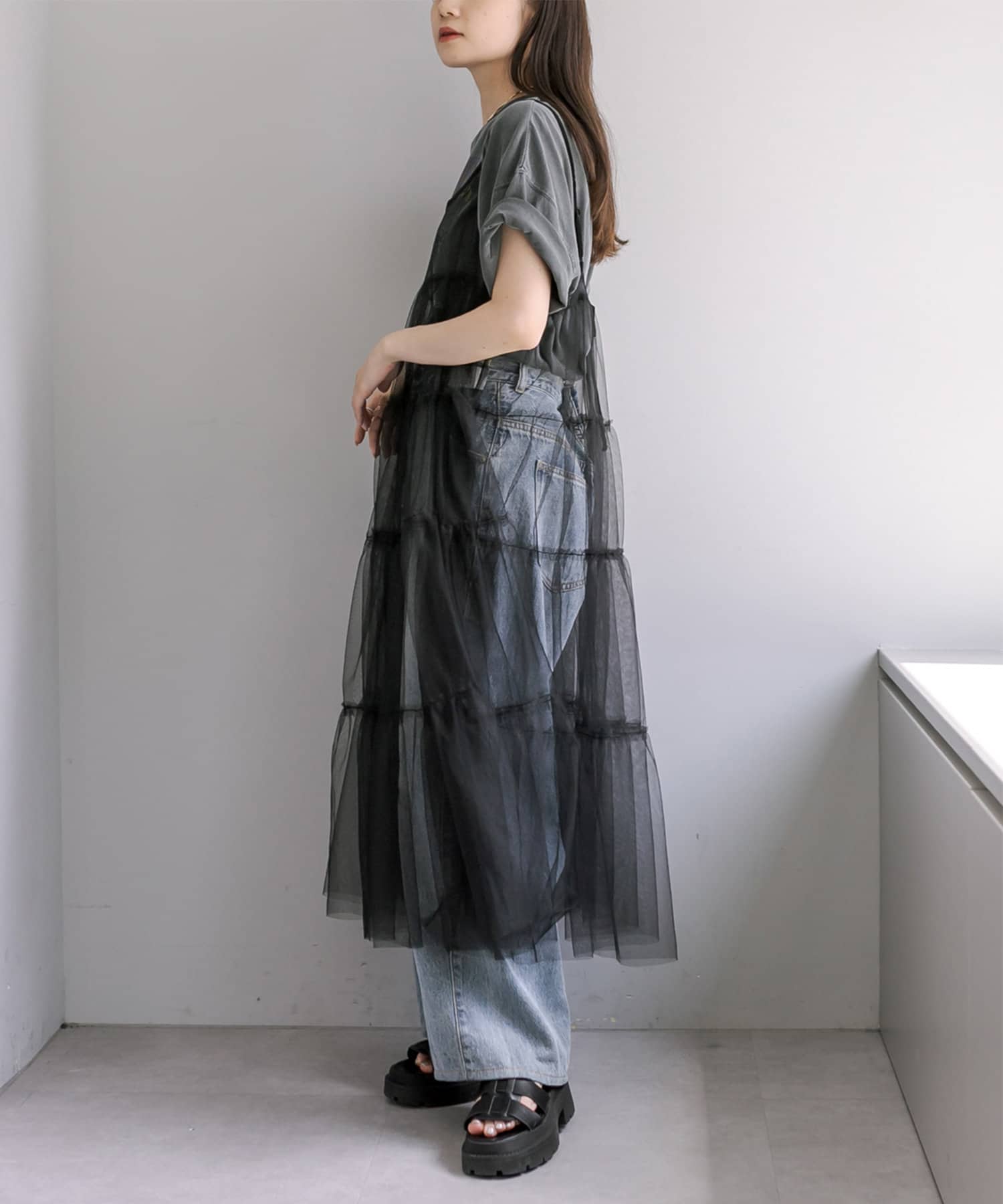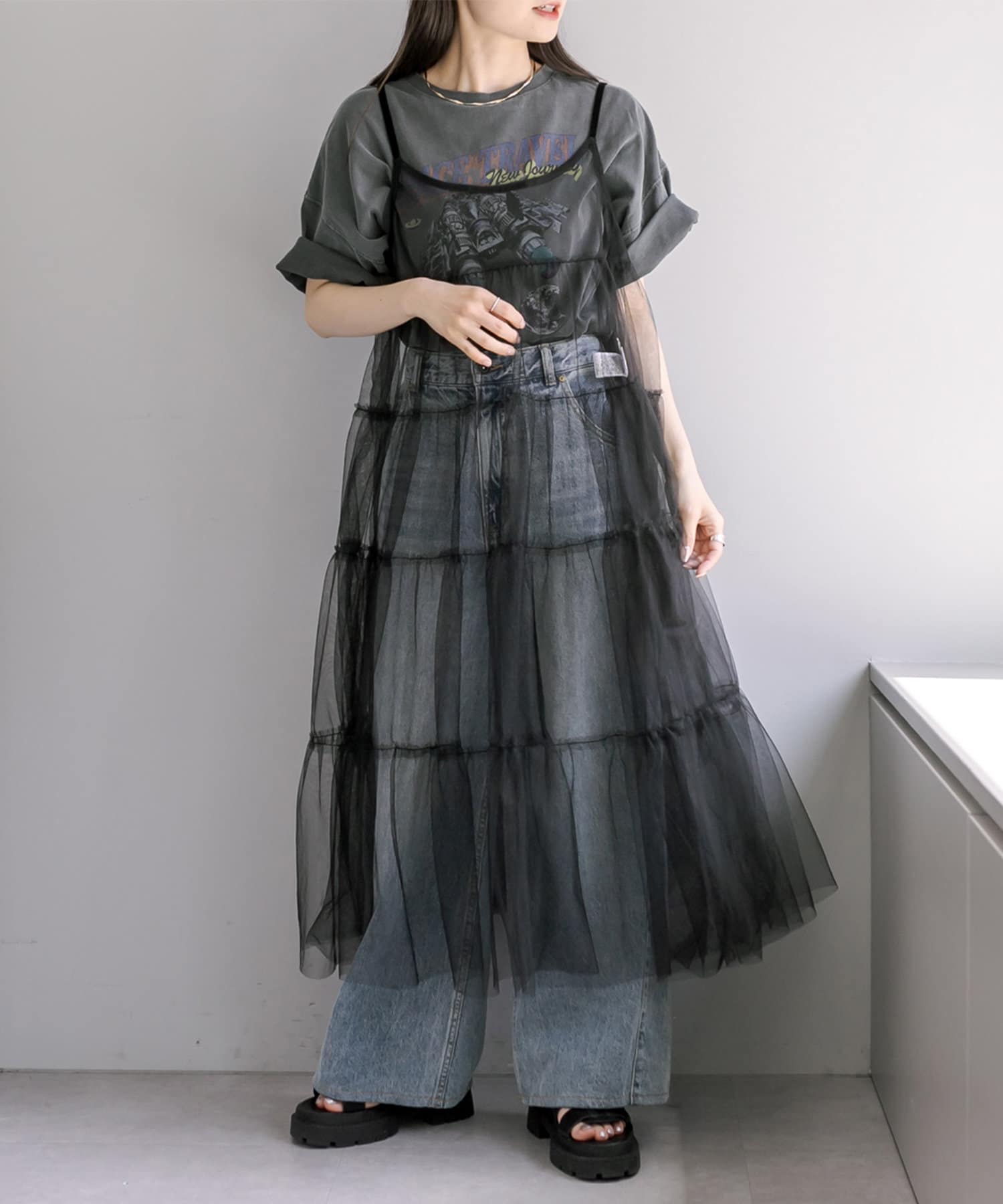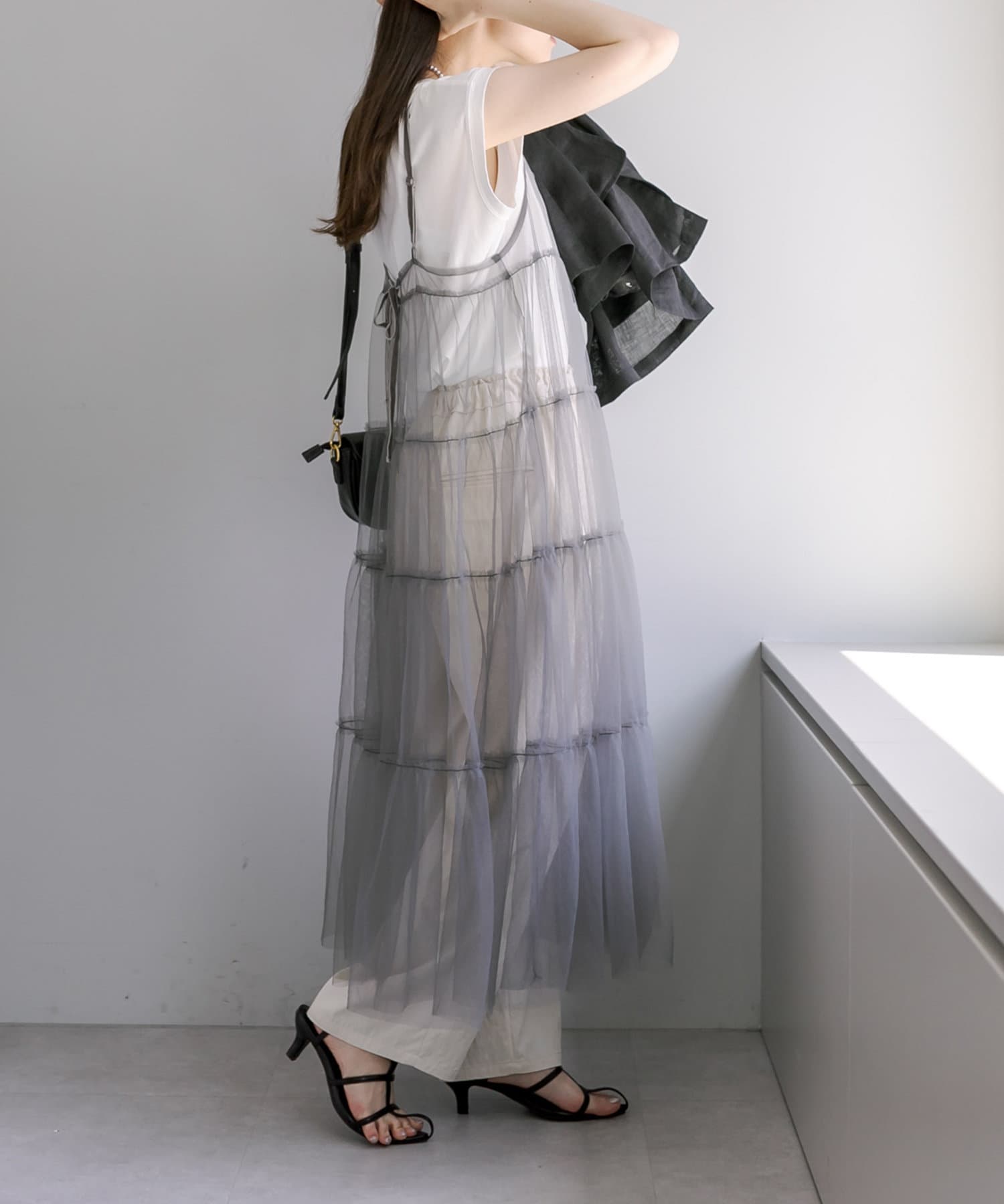 トレンド感溢れる柔らかいチュール素材のシアーキャミワンピース。