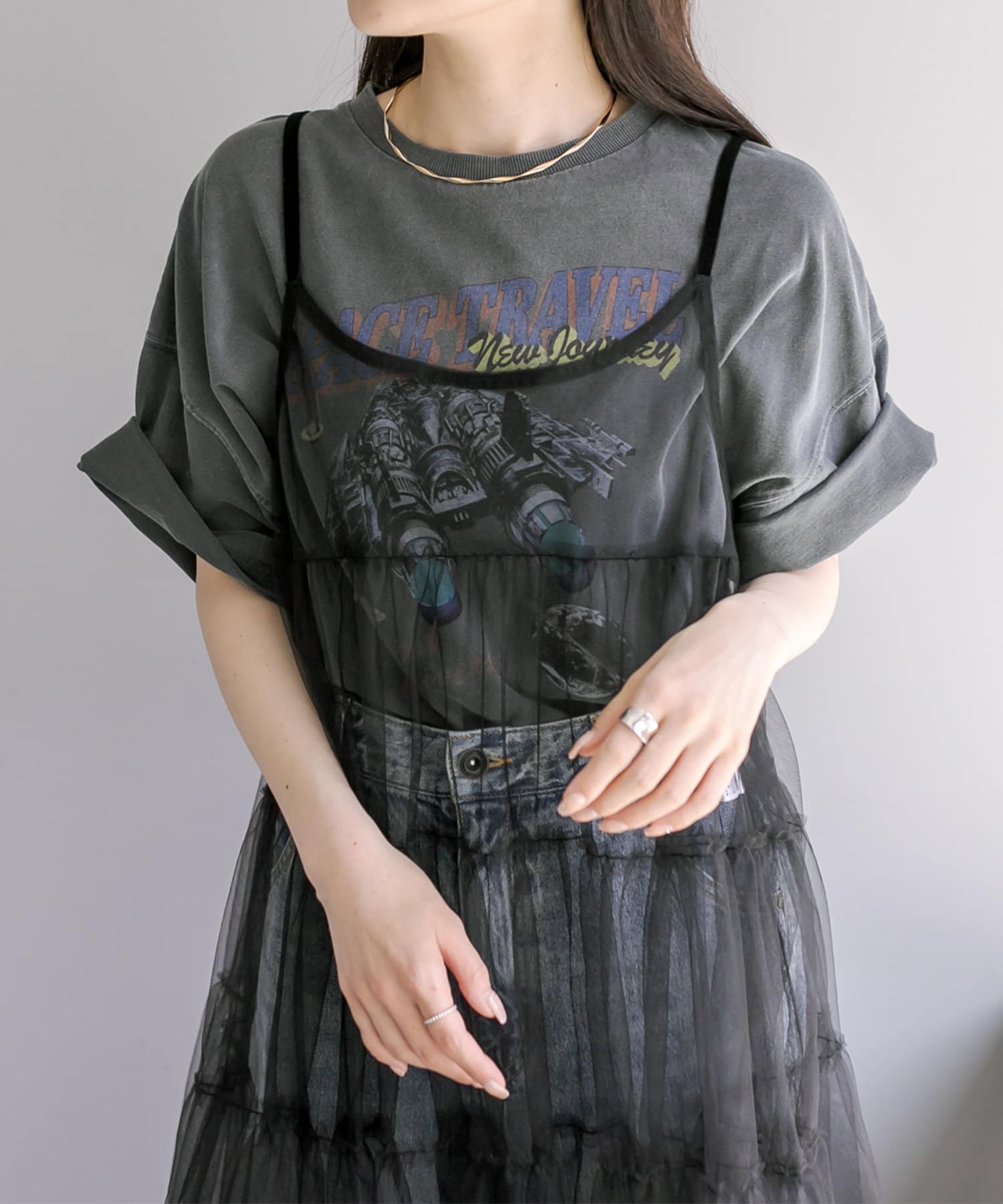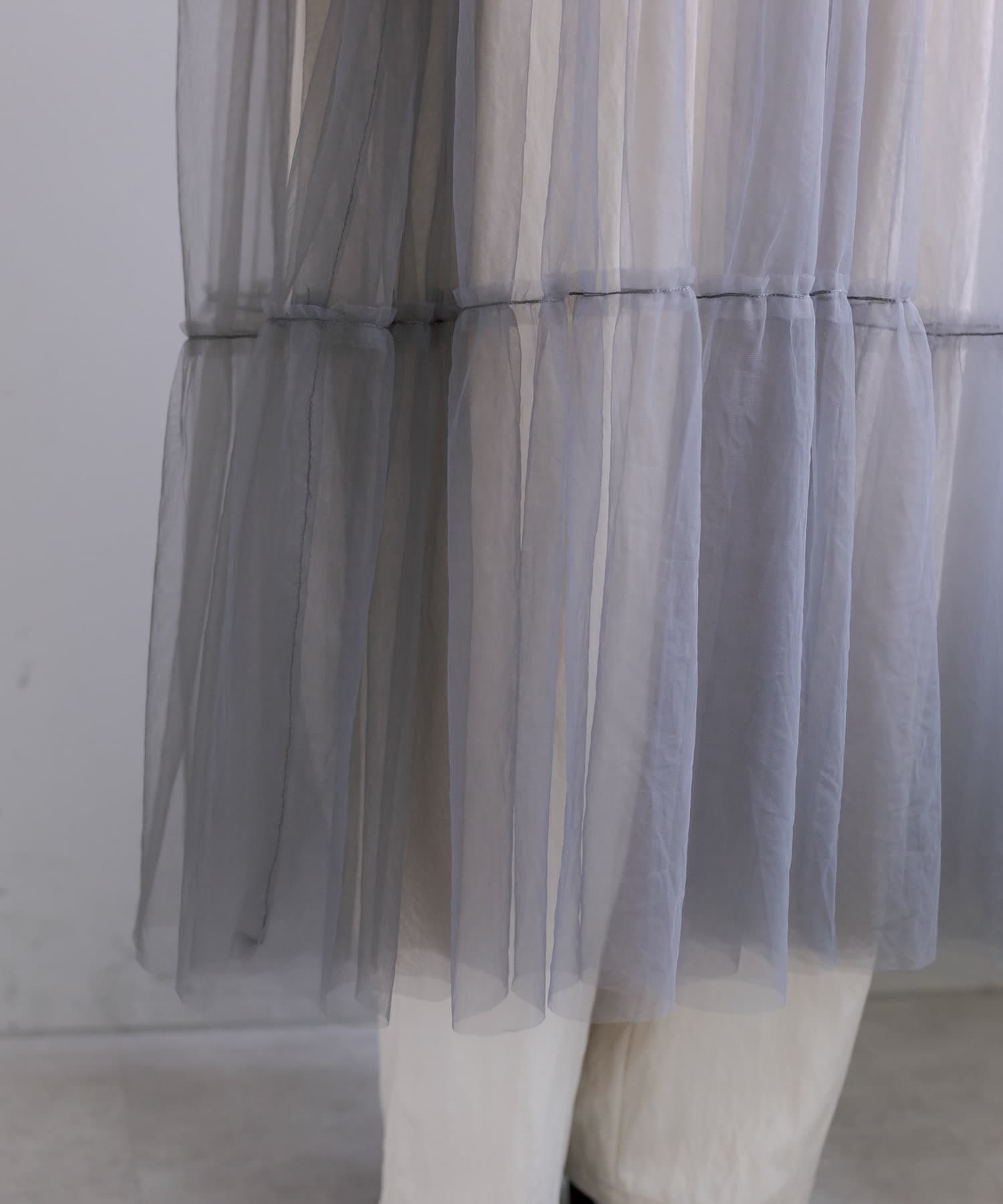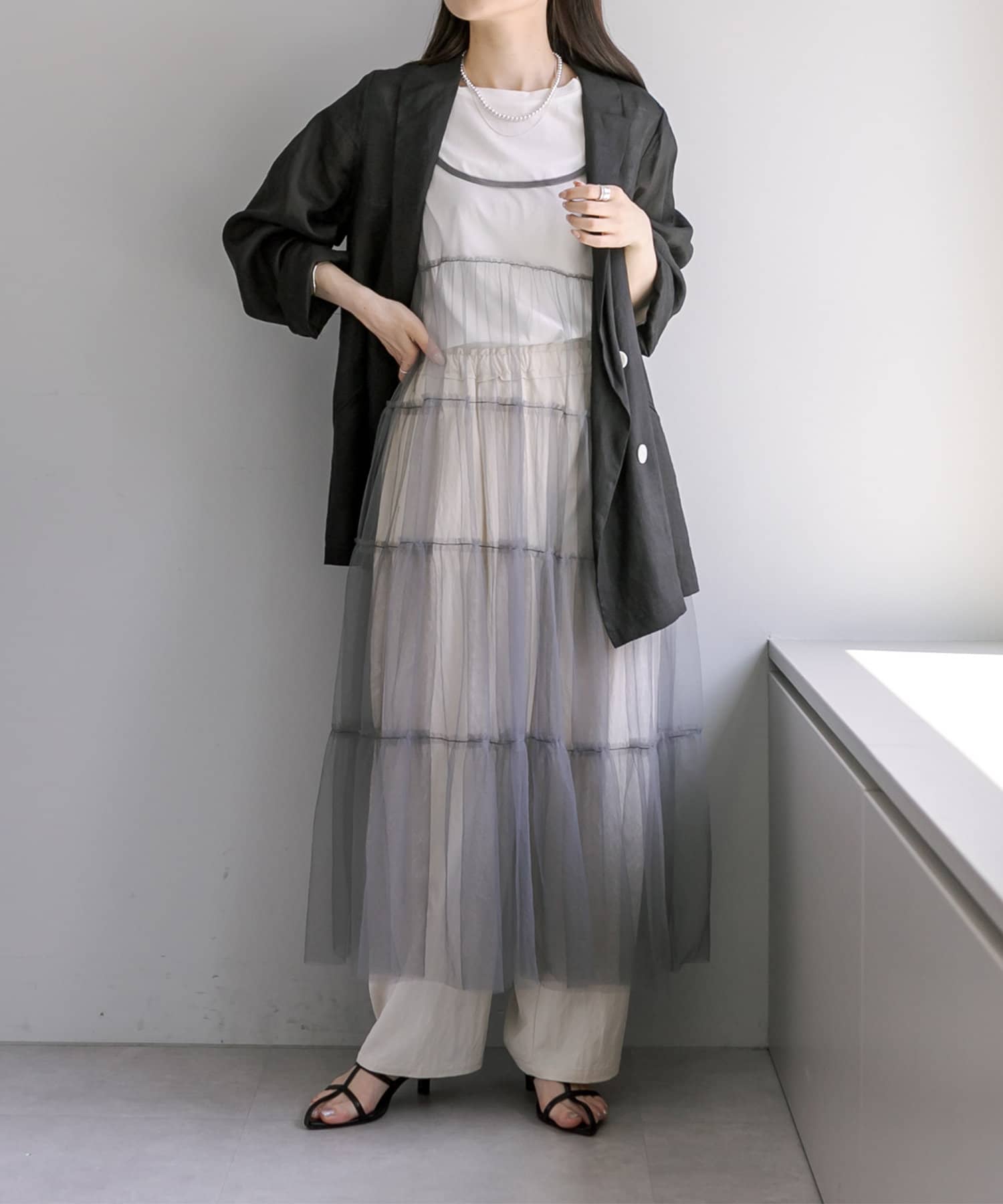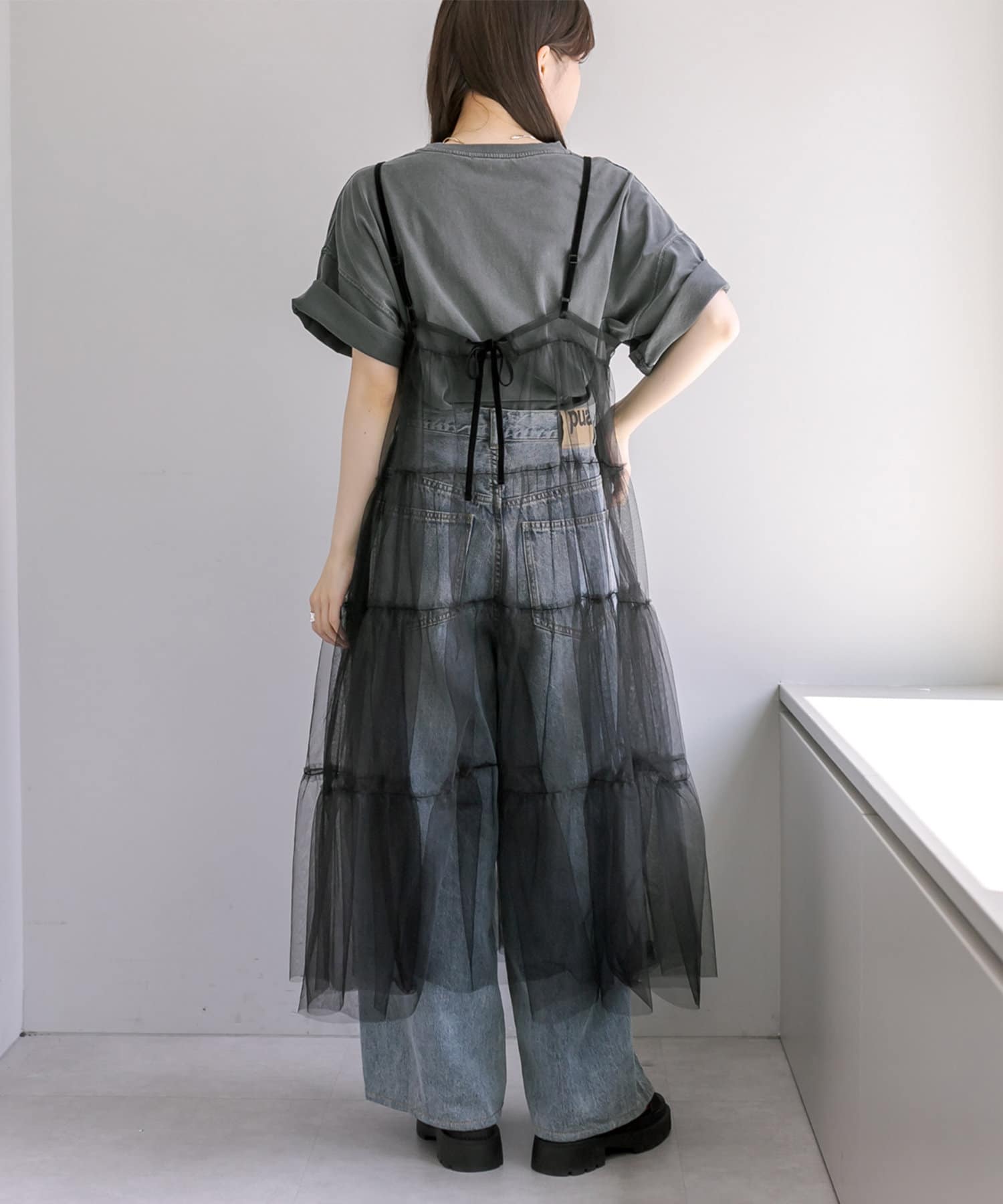 トレンド感溢れる柔らかいチュール素材のシアーキャミワンピース。