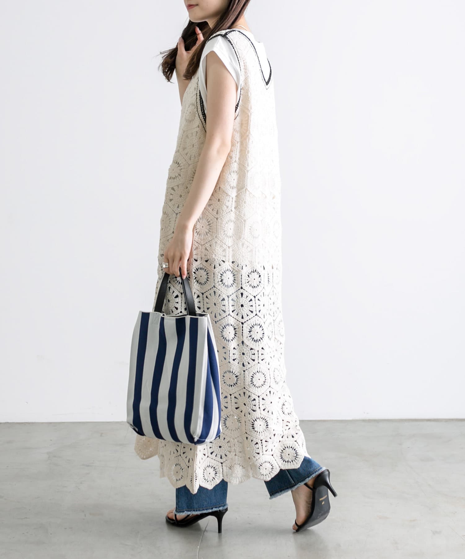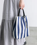 春夏にピッタリなストライプの柄が、コーディネートのポイントにおすすめなデザインバッグ。