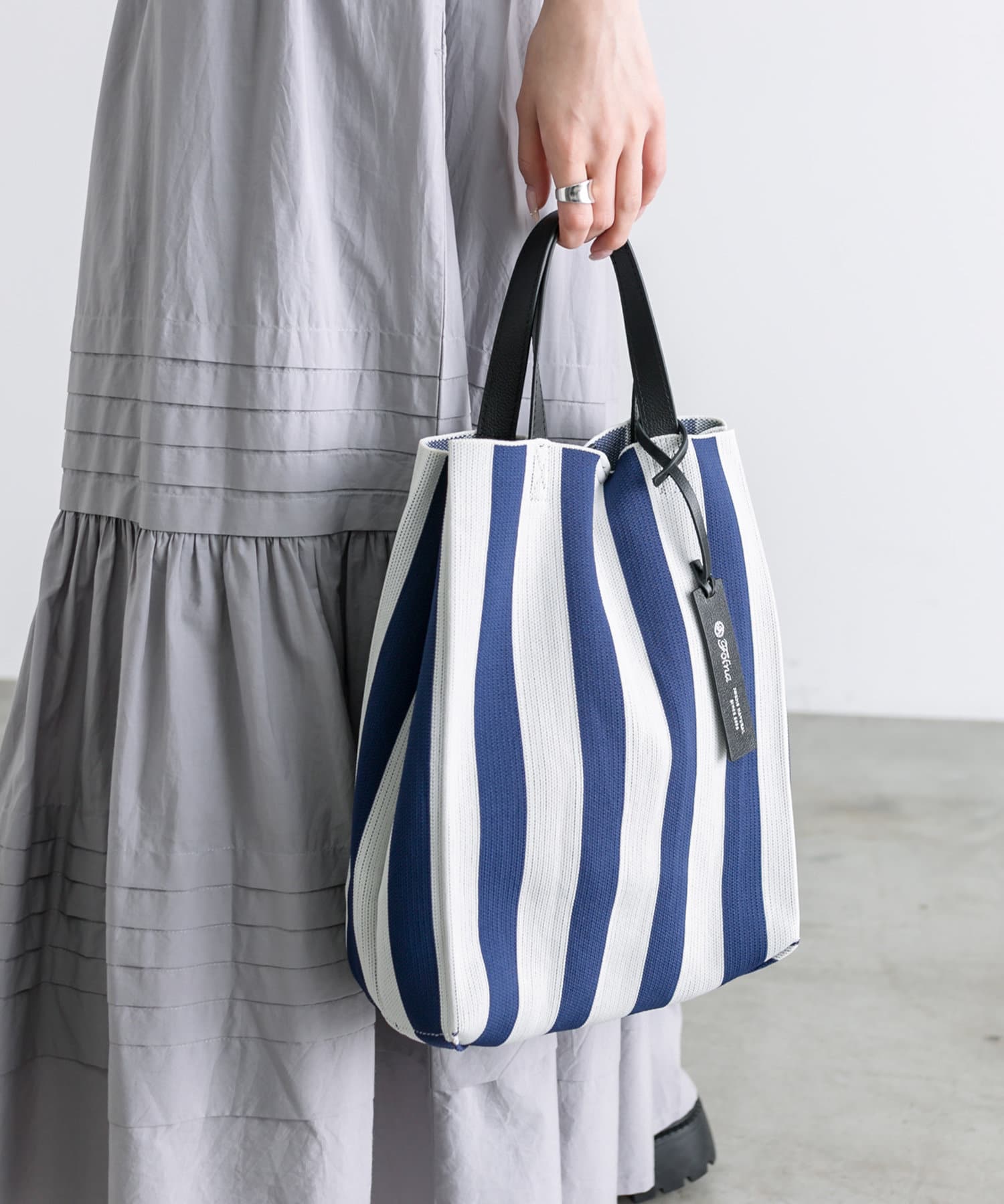 ニットのバッグは、伸縮性があり軽量で持ちやすいのが嬉しいポイント。