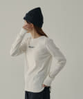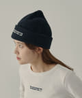ブランドのロゴ刺繍がワンポイントになったニット帽。