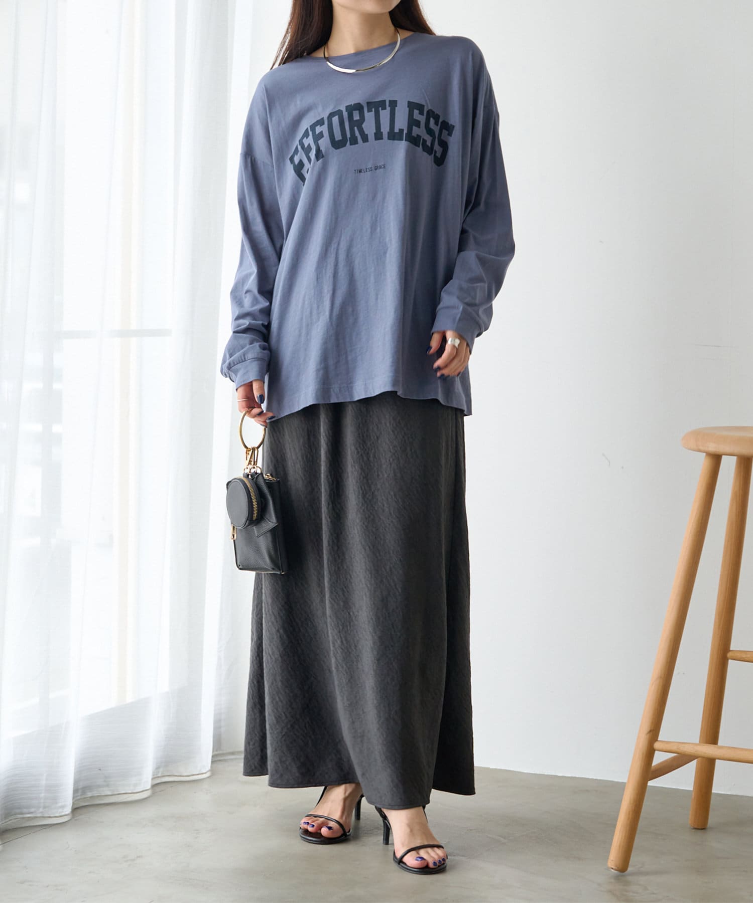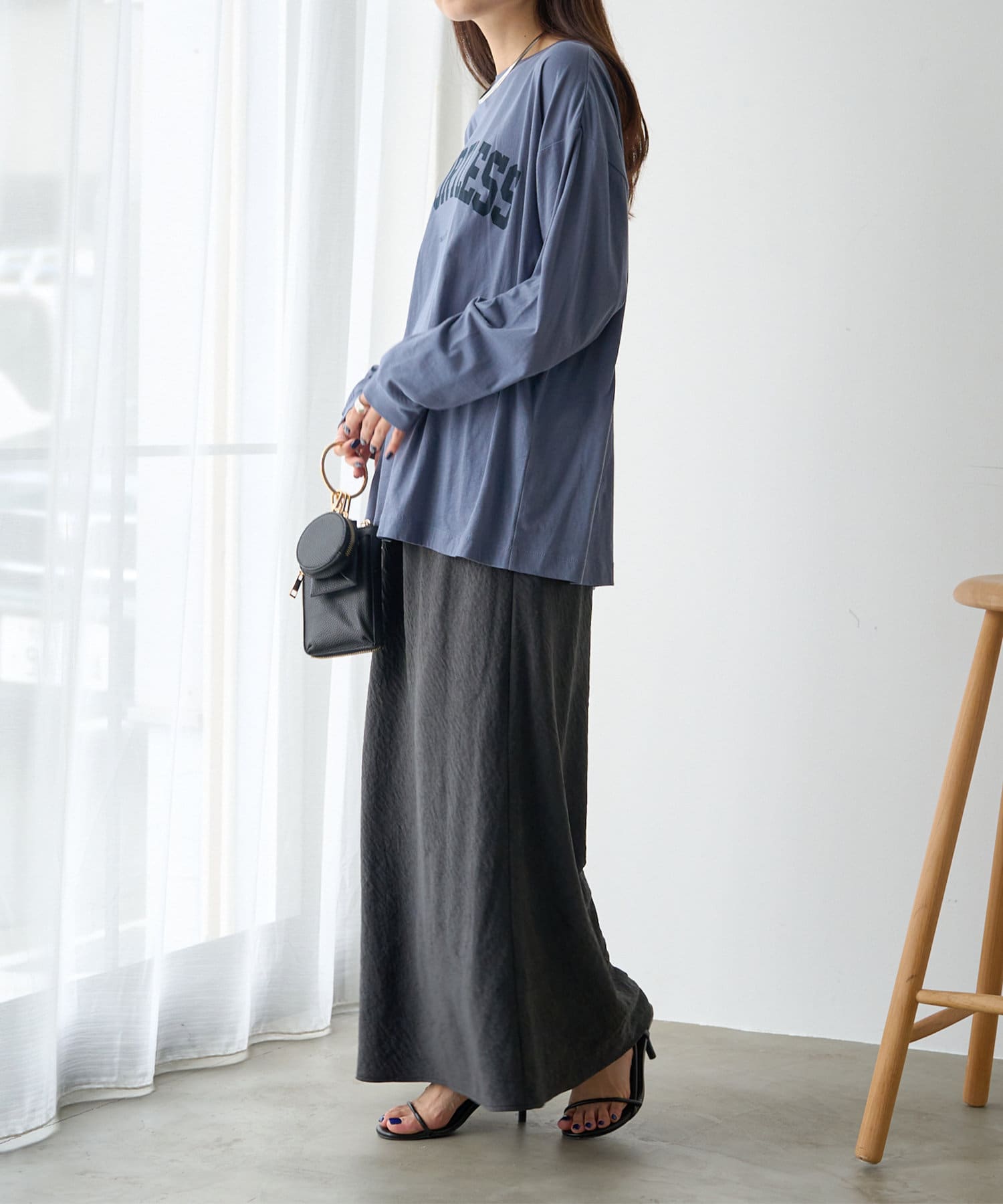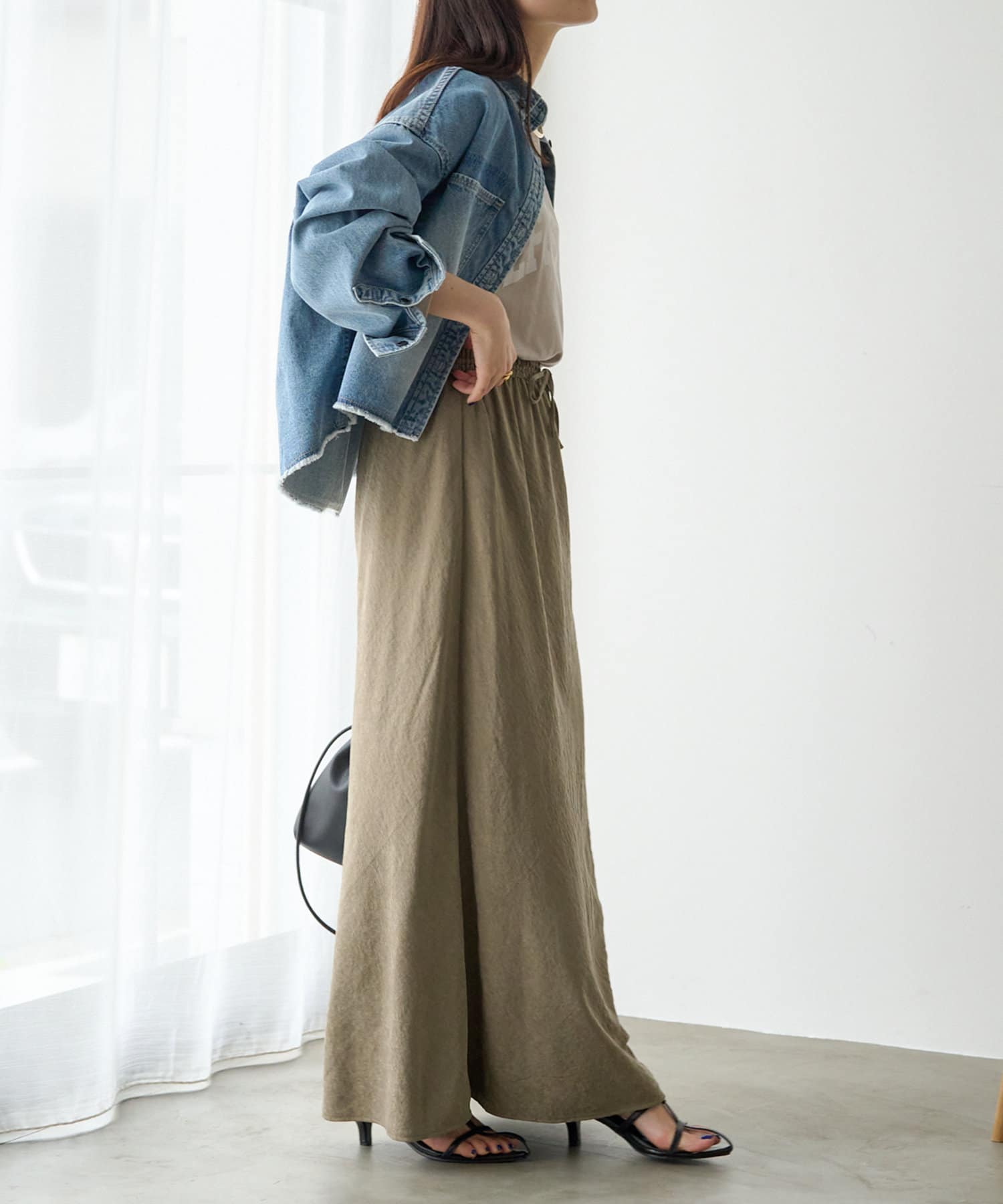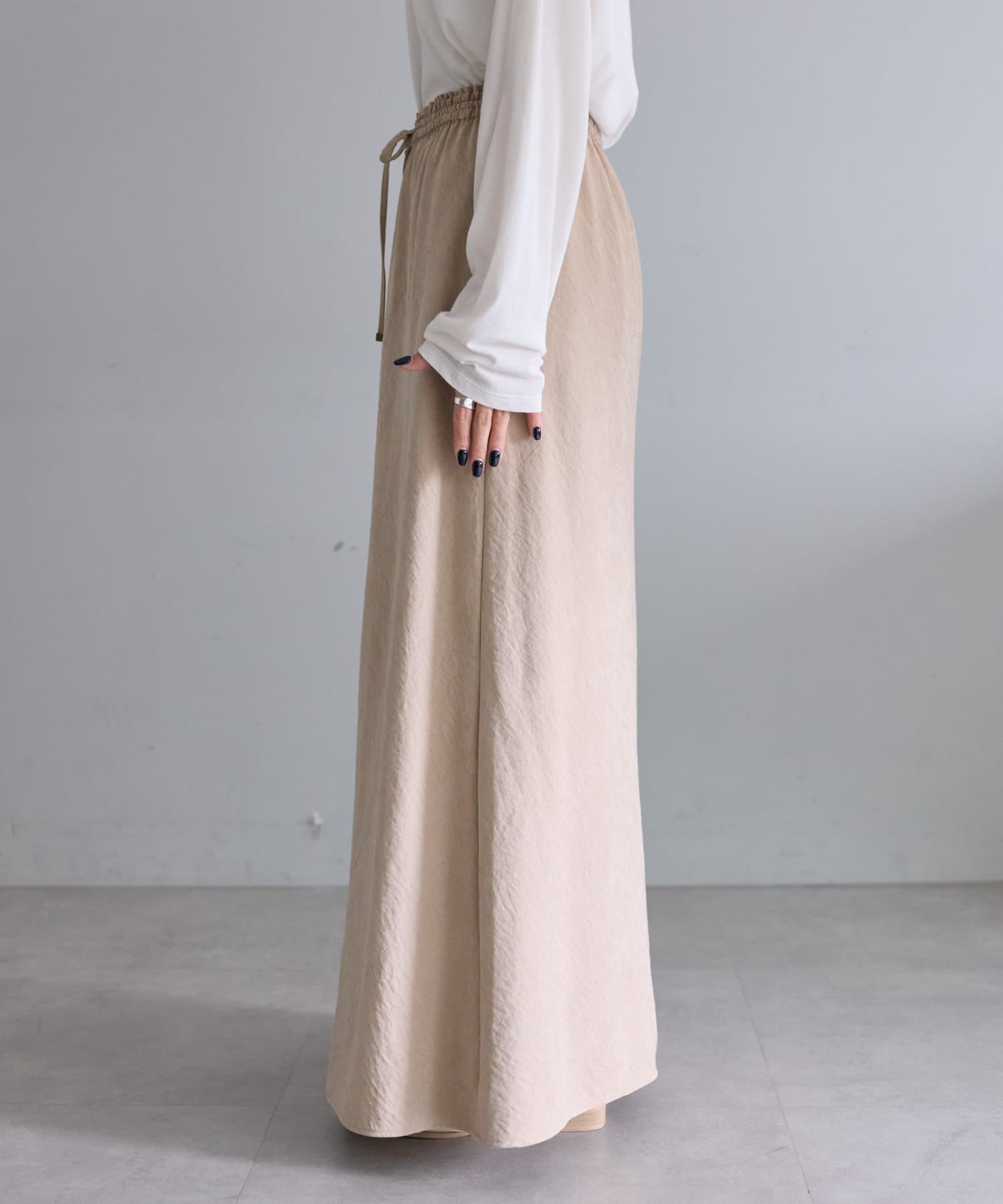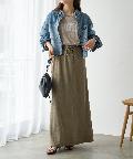 落ち感のある柔らかいパウダーサテン素材なので、きれいめコーデにもカジュアルコーデの外しにも着回せる優秀アイテムです。