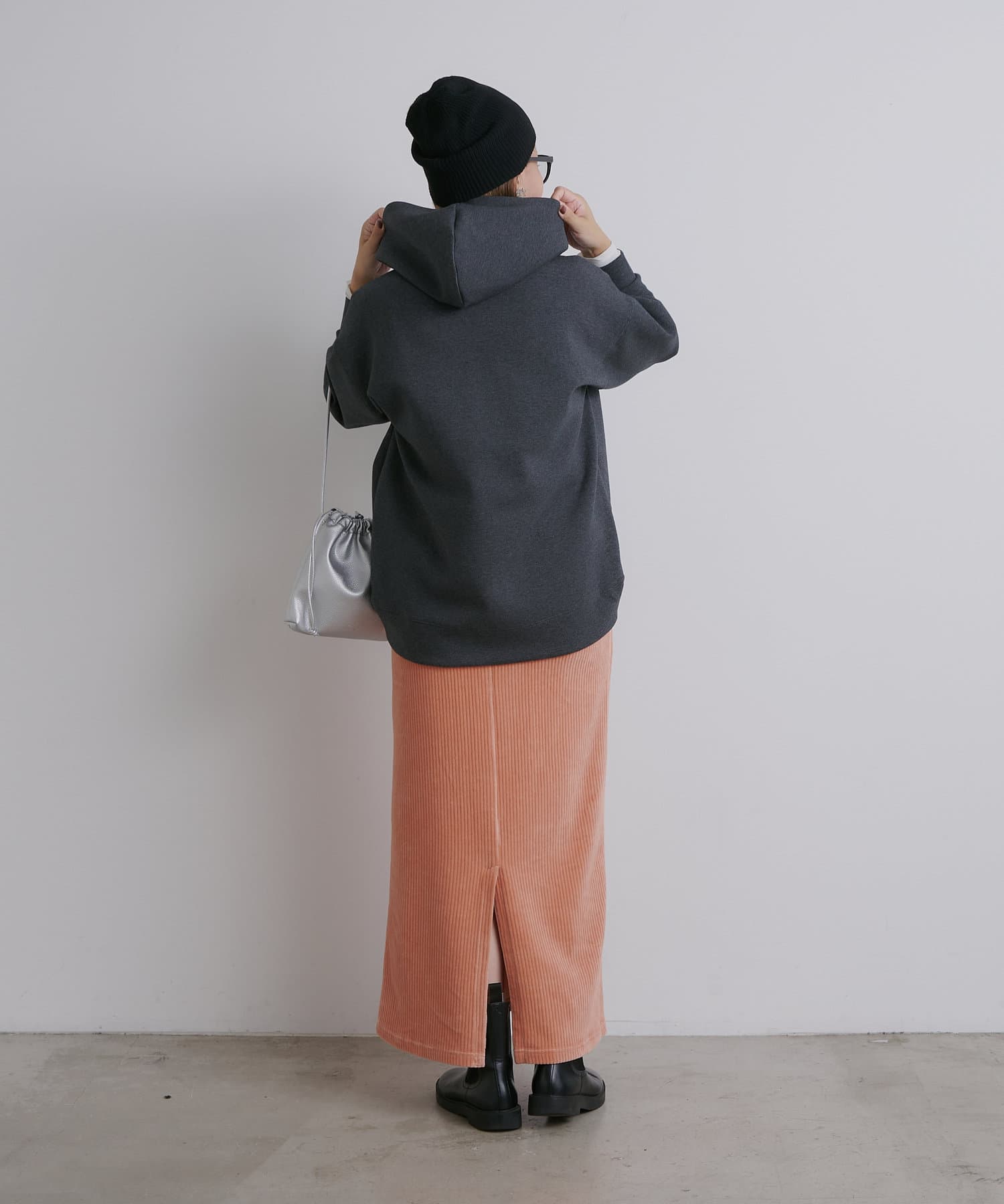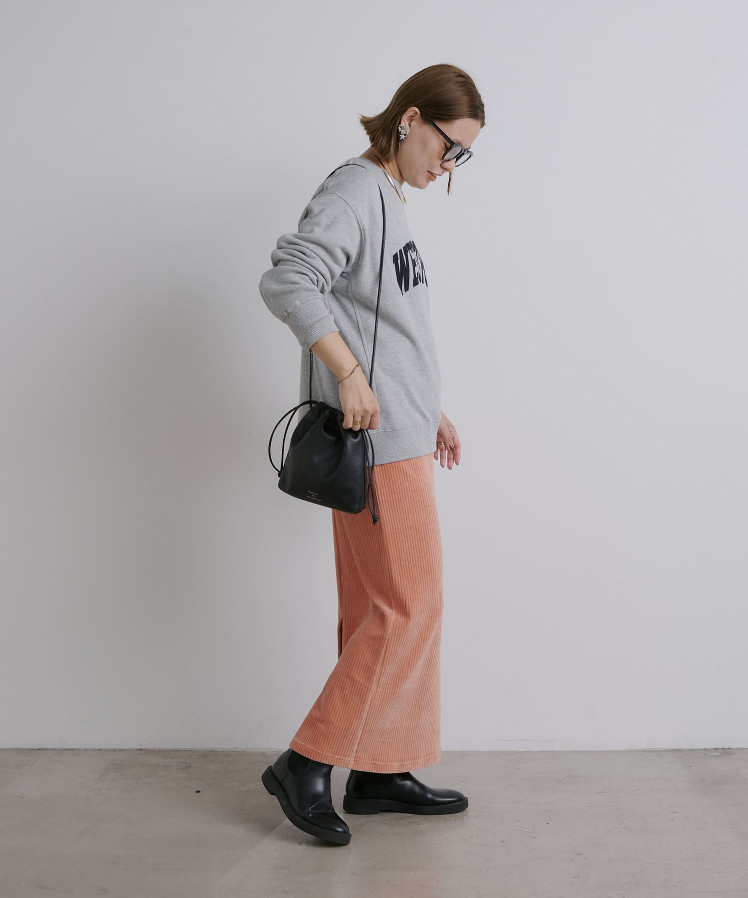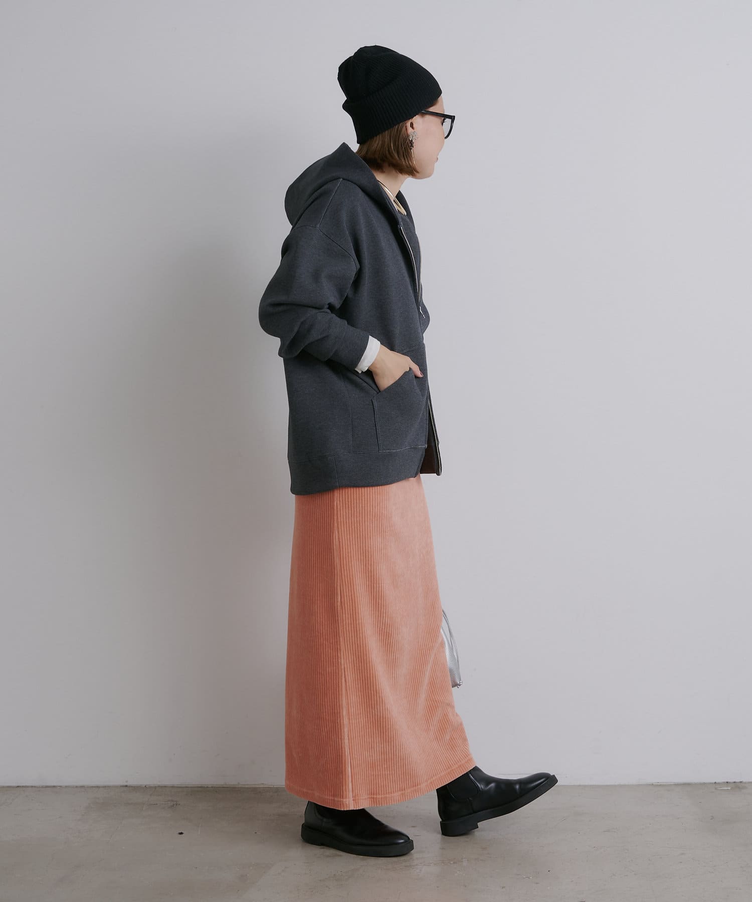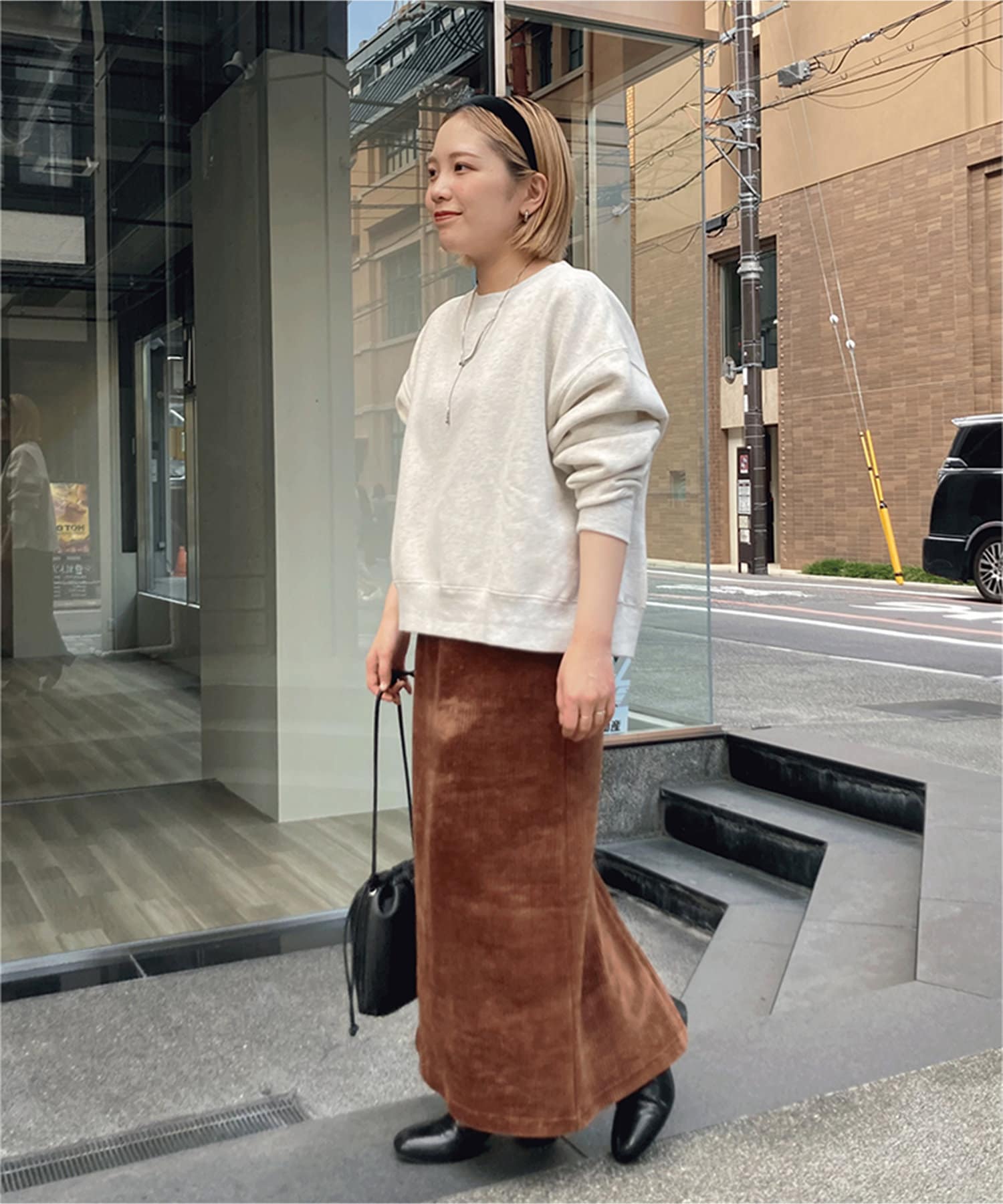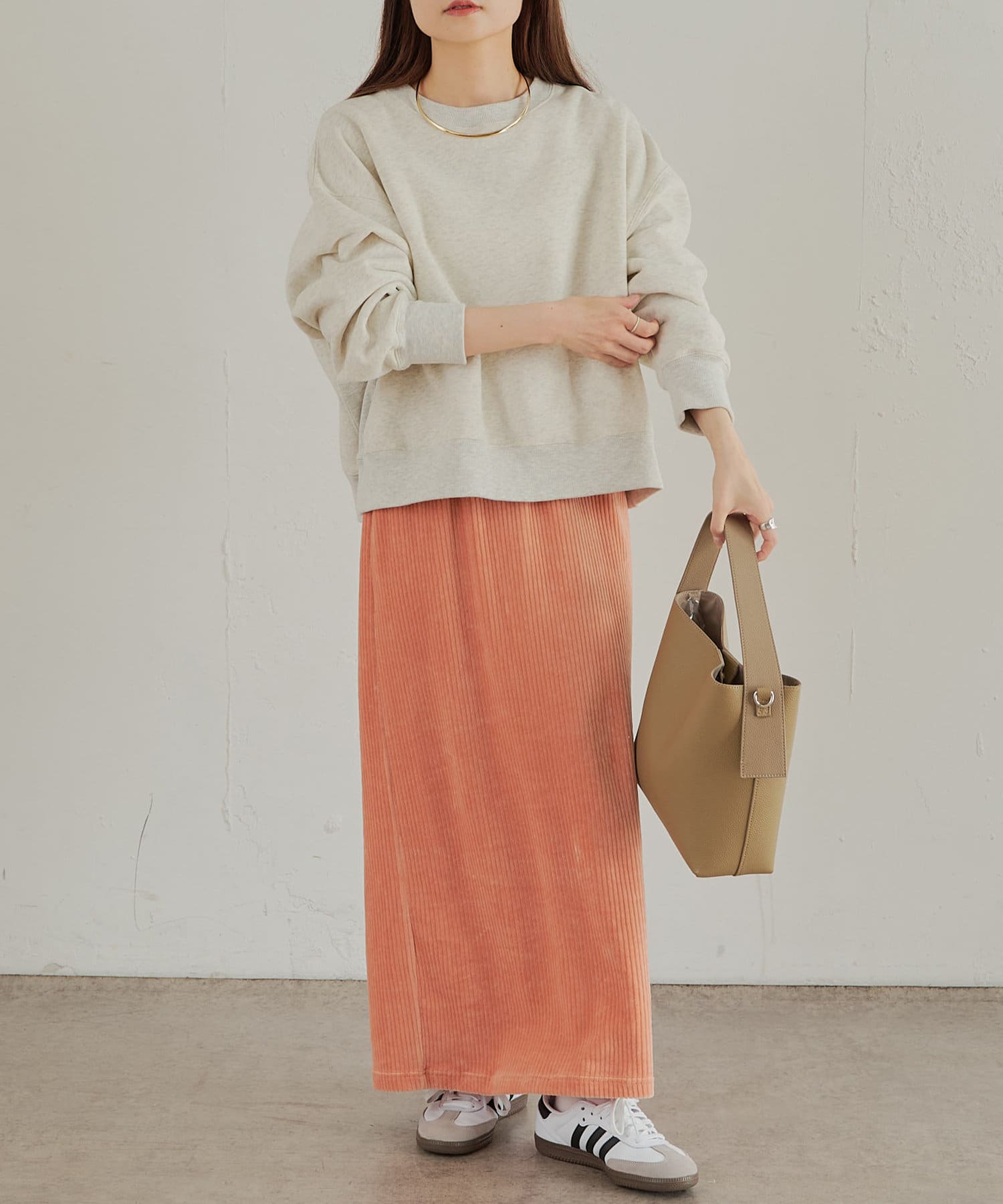 サイズ感:スニーカーやローヒールの靴でも綺麗に穿ける丈感です。とてもストレッチ性が高く、柔らかいコールテン素材です。